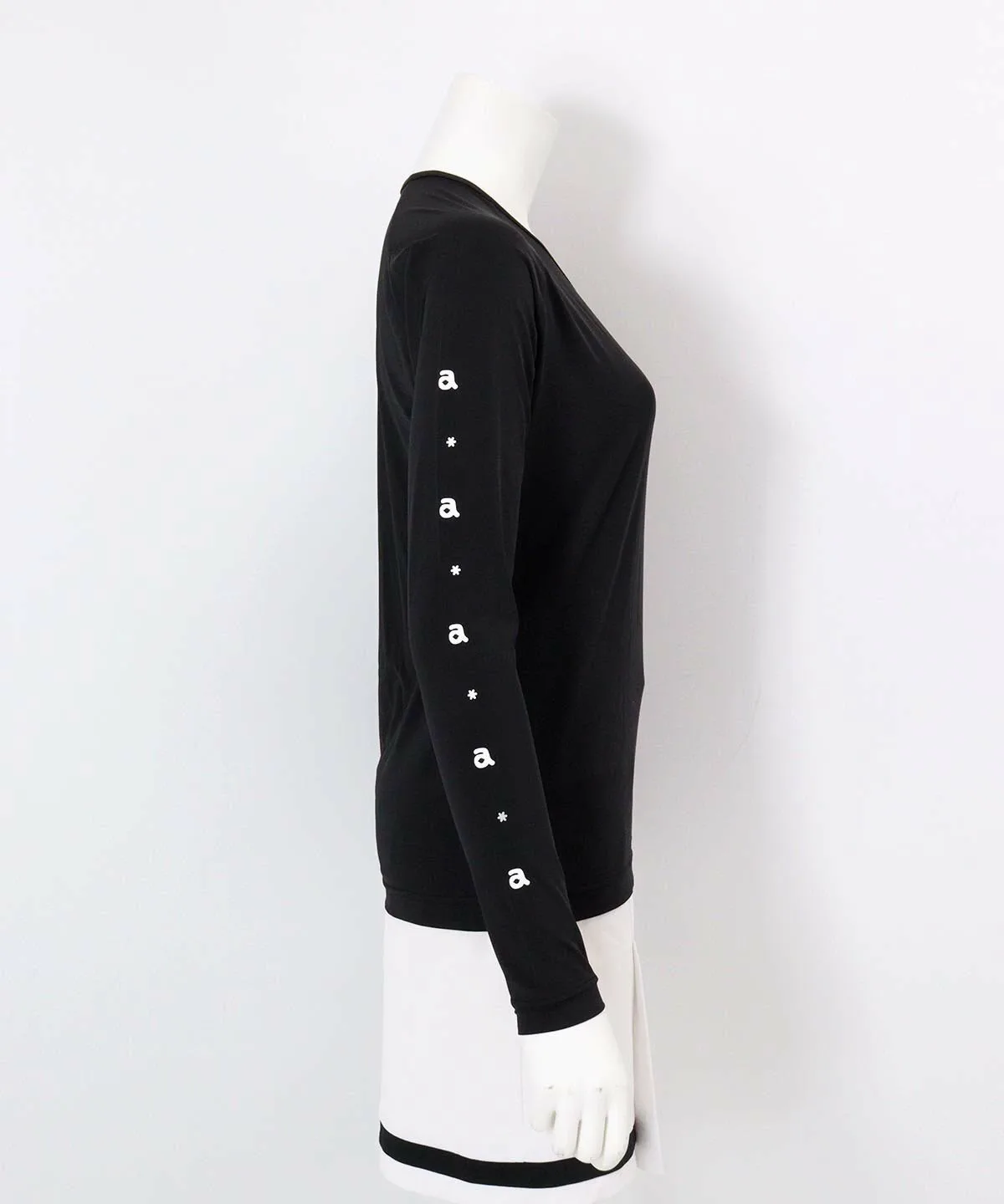 - Линейный принт на правом рукаве выглядит мило, если смотреть на него сквозь топы без рукавов или с коротким рукавом