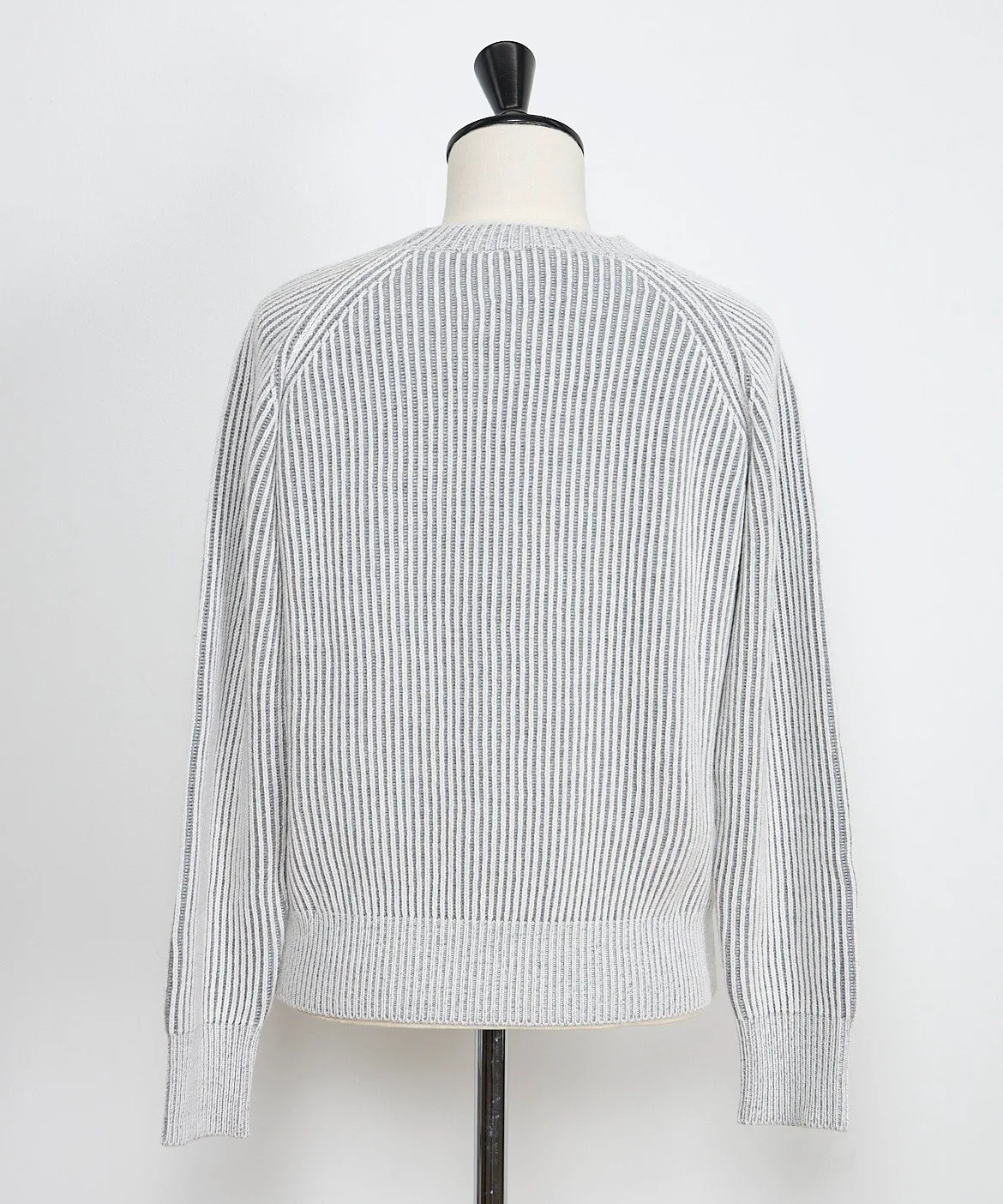 Это изделие отличается контрастной цветовой гаммой в ребристой вязке. Использование разноцветных нитей придает дизайну глубину и трехмерность. Несмотря на простой дизайн, его можно сочетать с любым стилем. 15% содержания кашемира делает его комфортным в носке, а умеренная толщина предотвращает подчеркивание линий тела.