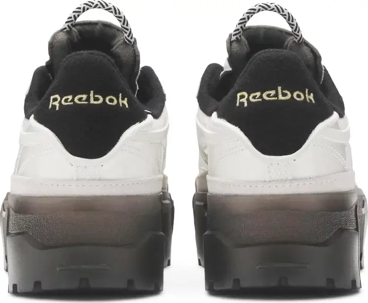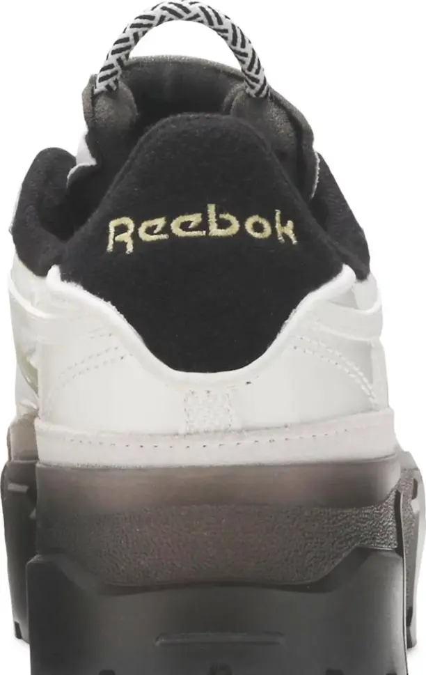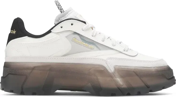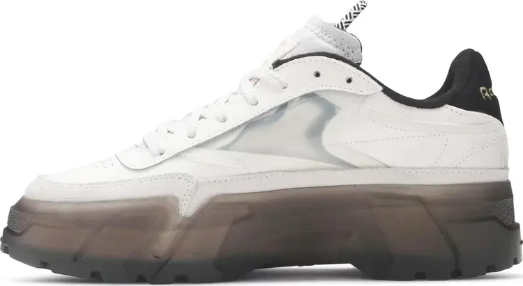 Женские кроссовки Cardi B x Reebok Club C «Chalk», созданные в сотрудничестве с рэпером из Бронкса, отличаются роскошной эстетикой, вдохновленной высокой модой и уличной одеждой. Лакированная кожа белого цвета используется в верхней части, с плетеным язычком на язычке и прозрачными окнами из ТПУ на боковых панелях. Замшевые накладки в тон уступают место дымчатой полупрозрачной резиновой подошве cupsole, блочная структура которой компенсирует гладкие линии верха.