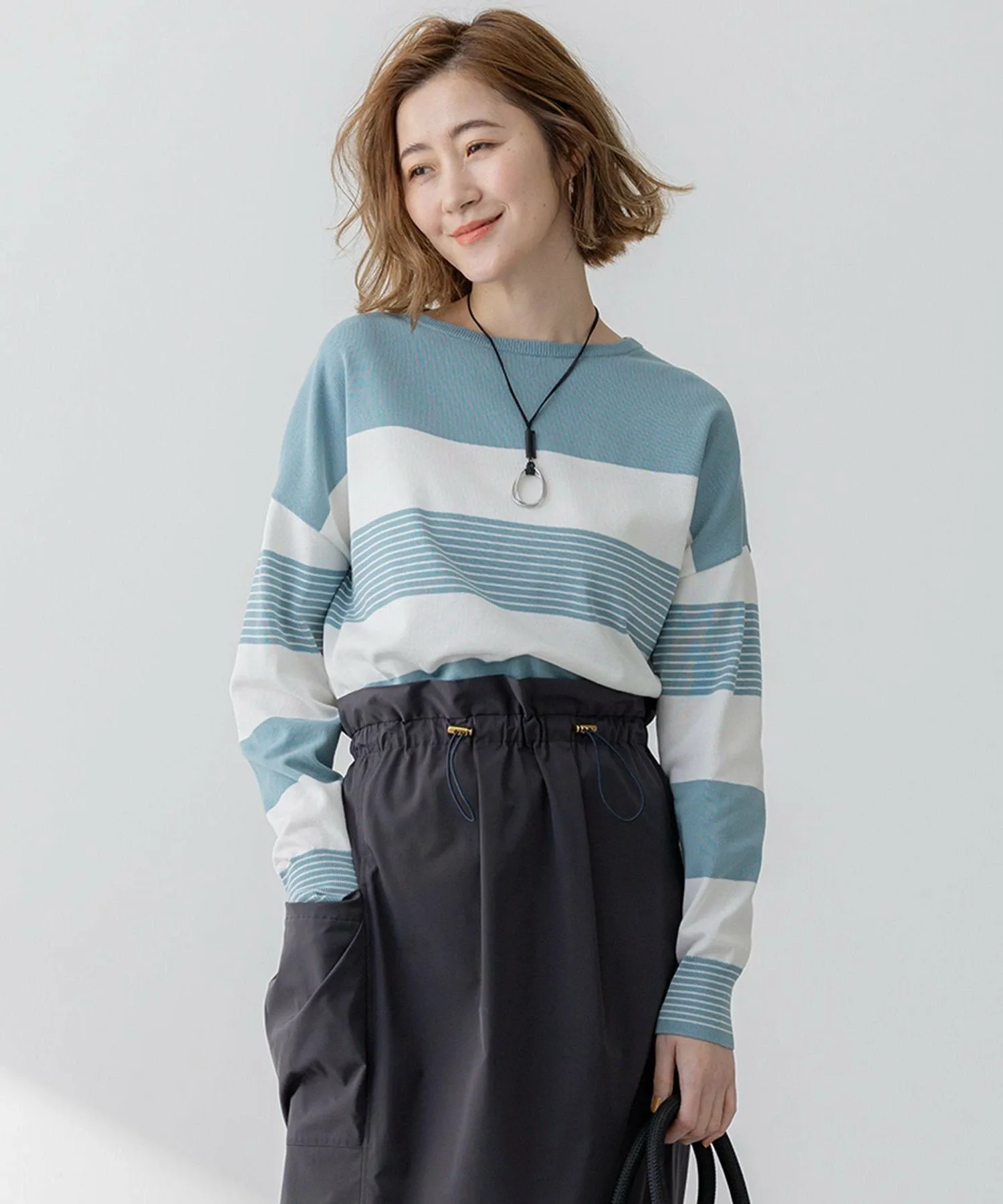 Трикотаж с длинными рукавами и короткой длиной, выполненный из трикотажа. Основная часть кардигана имеет свободный силуэт. Воротник-лодочка позволяет носить его с блузкой или сшитым на заказ топом в прохладное время года, или отдельно ранней весной, что делает его универсальным предметом гардероба на все сезоны. Сочетайте его с широкими брюками для создания расслабленного образа или с облегающими брюками или юбкой для более изысканного образа. Доступны только полосатые расцветки в трех цветах: мягкий бежевый x кремовый (#133), шикарный шалфейный x кремовый (#162) и элегантный темно-синий x кремовый (#175).