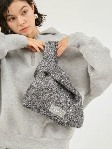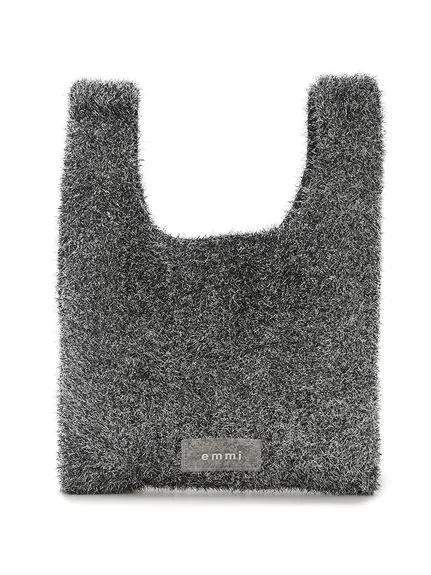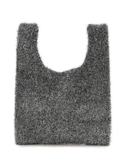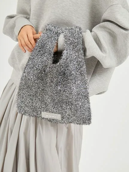 Вязаная сумка, связанная из пряжи с блестками, изготовленной из длинноворсовой пряжи.