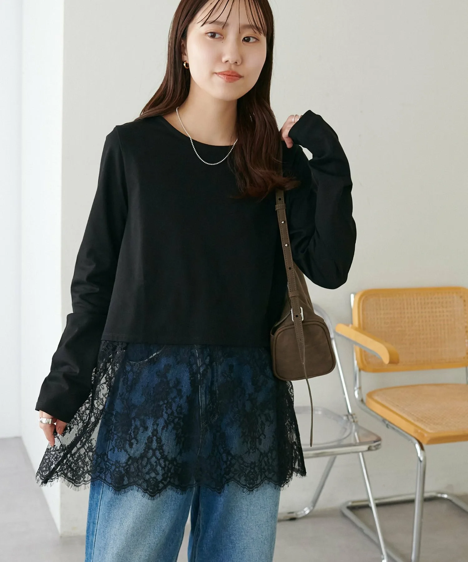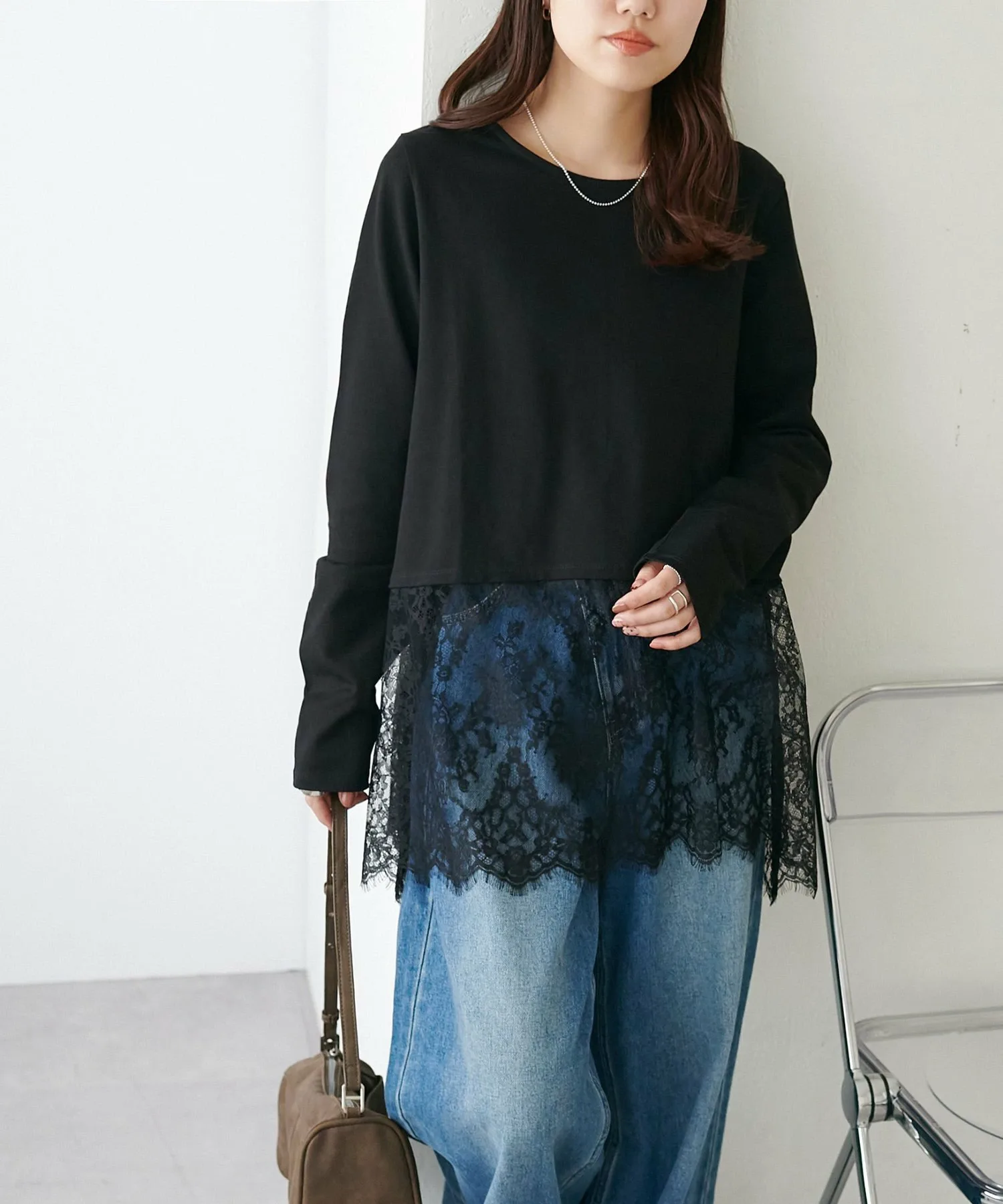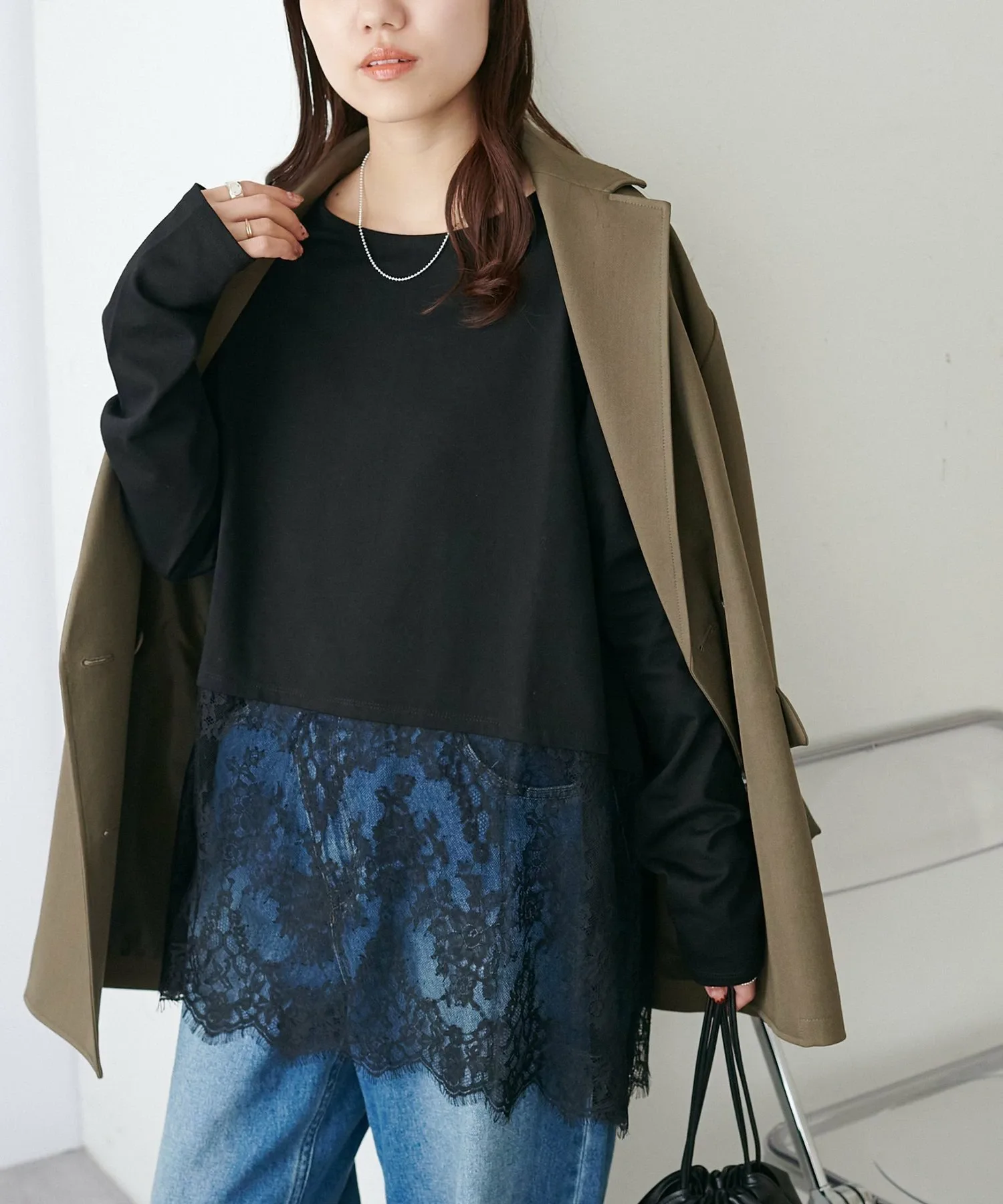 - Носите её как внутренний слой под компактный кардиган или худи, чтобы добавить акцент кружева с подола.