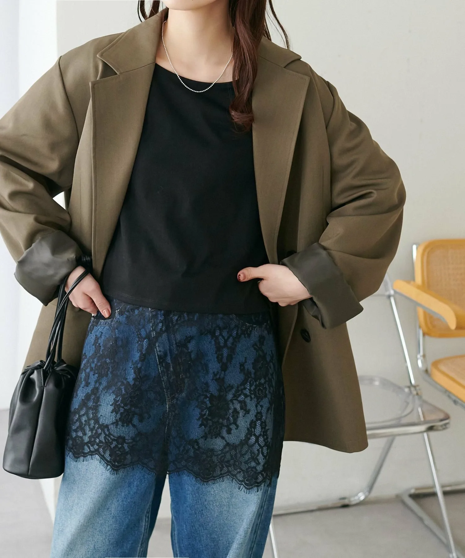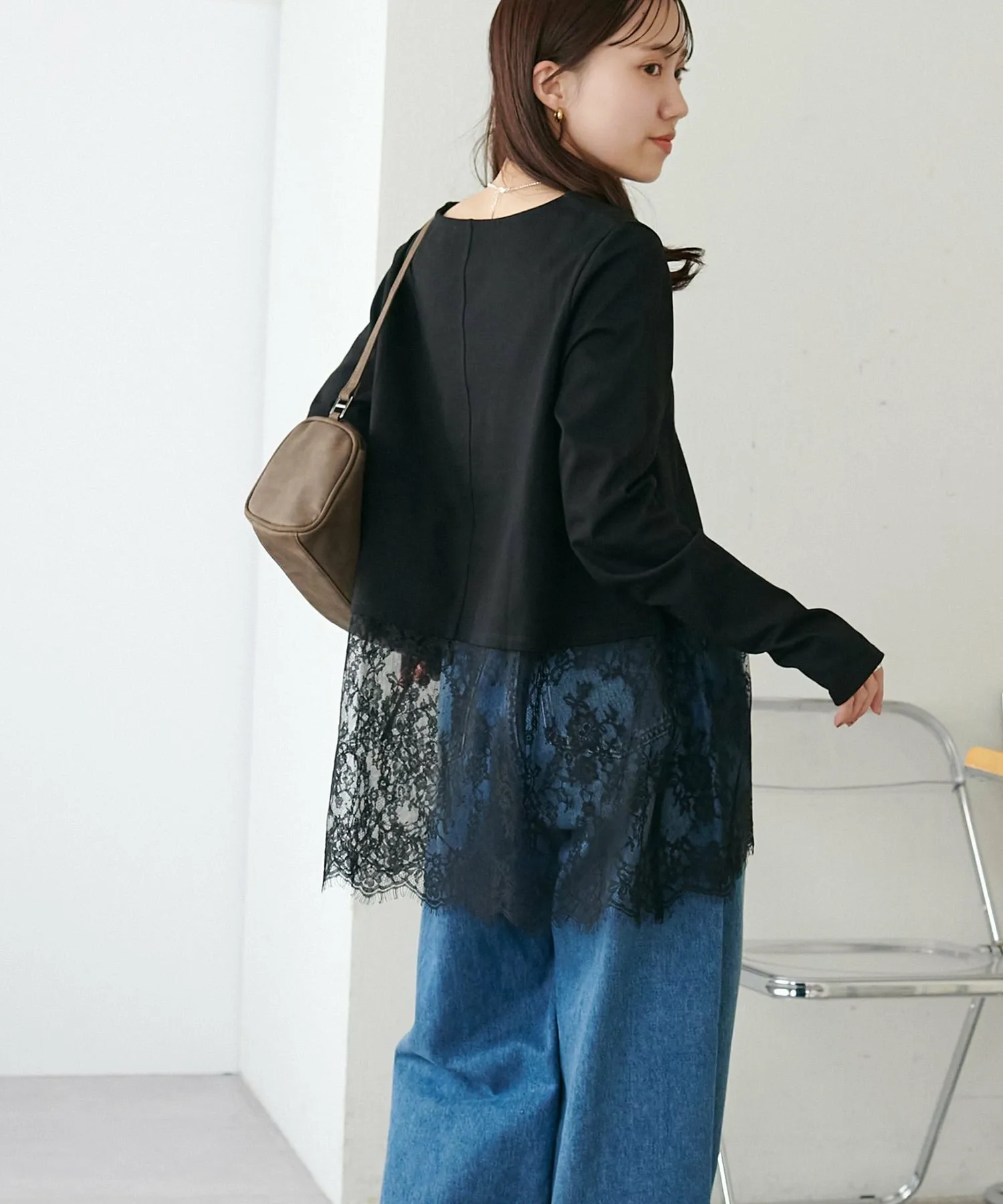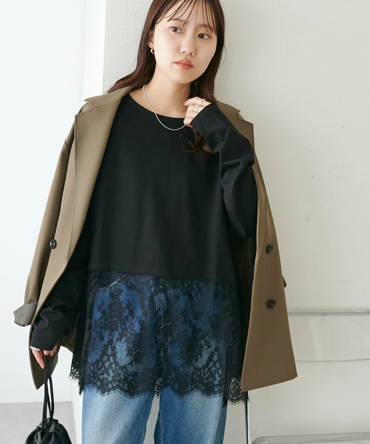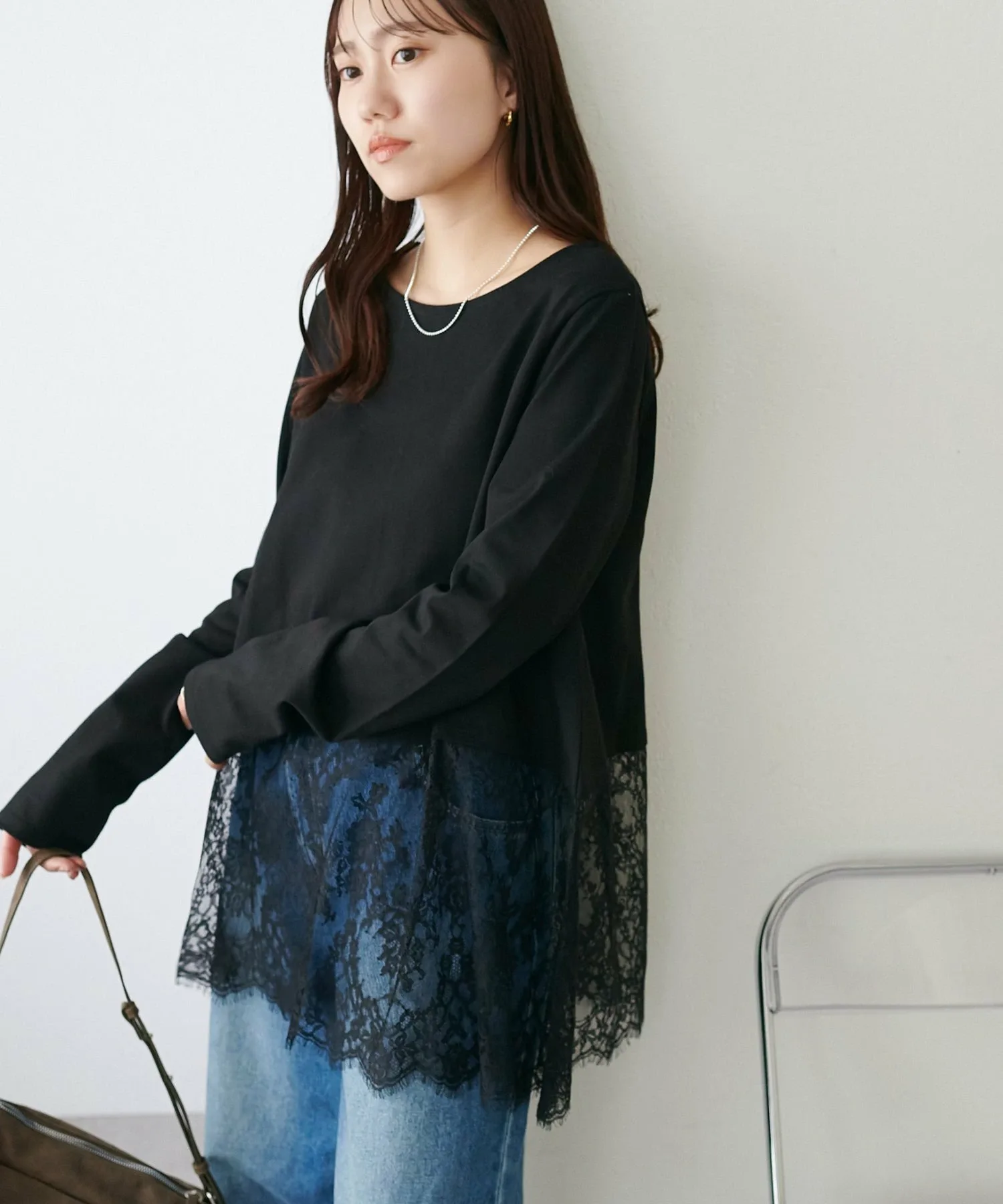 - Носите её как внутренний слой под компактный кардиган или худи, чтобы добавить акцент кружева с подола.