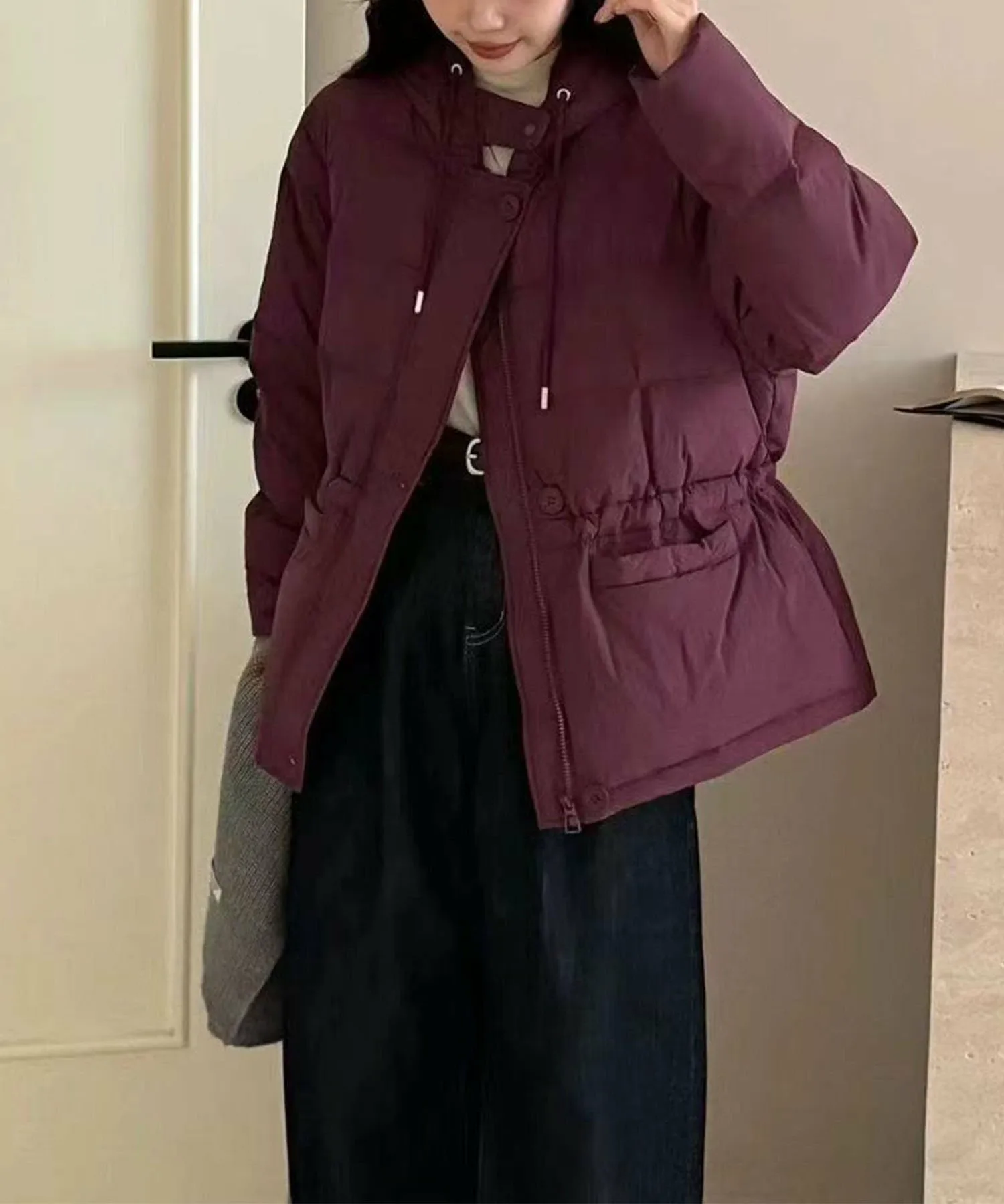 Эта пуховая куртка с капюшоном имеет привлекательный дизайн, позволяющий подчеркнуть талию.