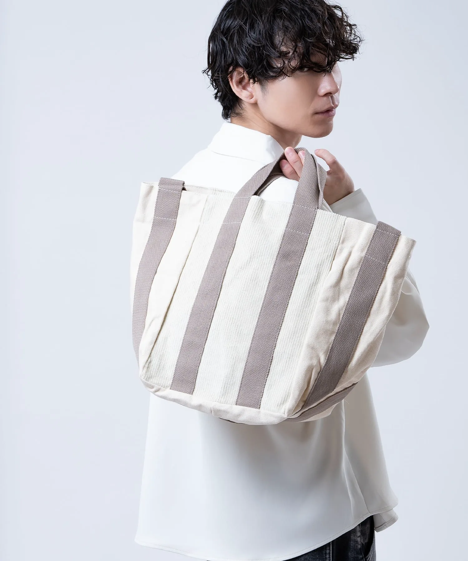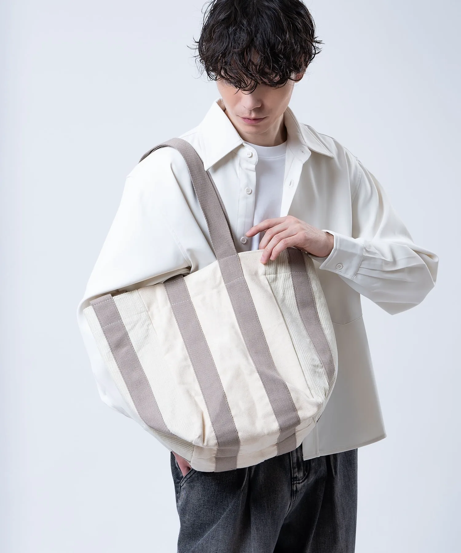 ●Выразительный дизайн, сочетающий вельвет и холст.