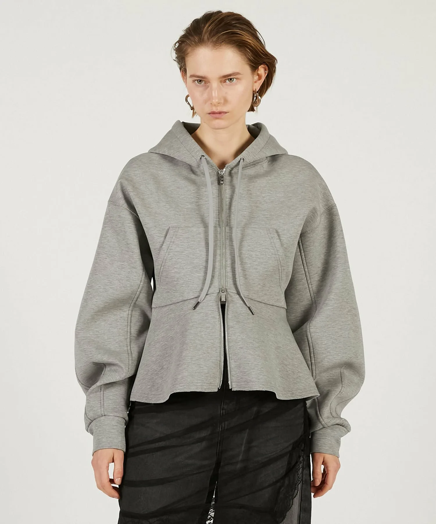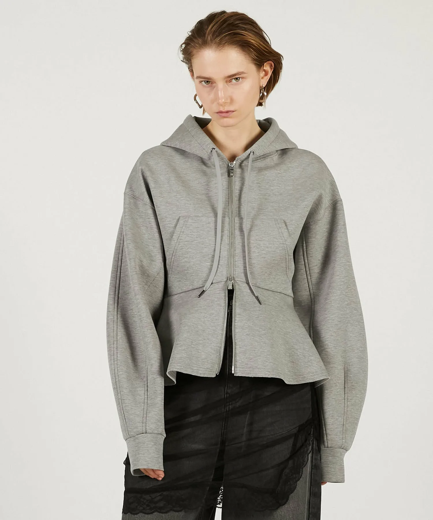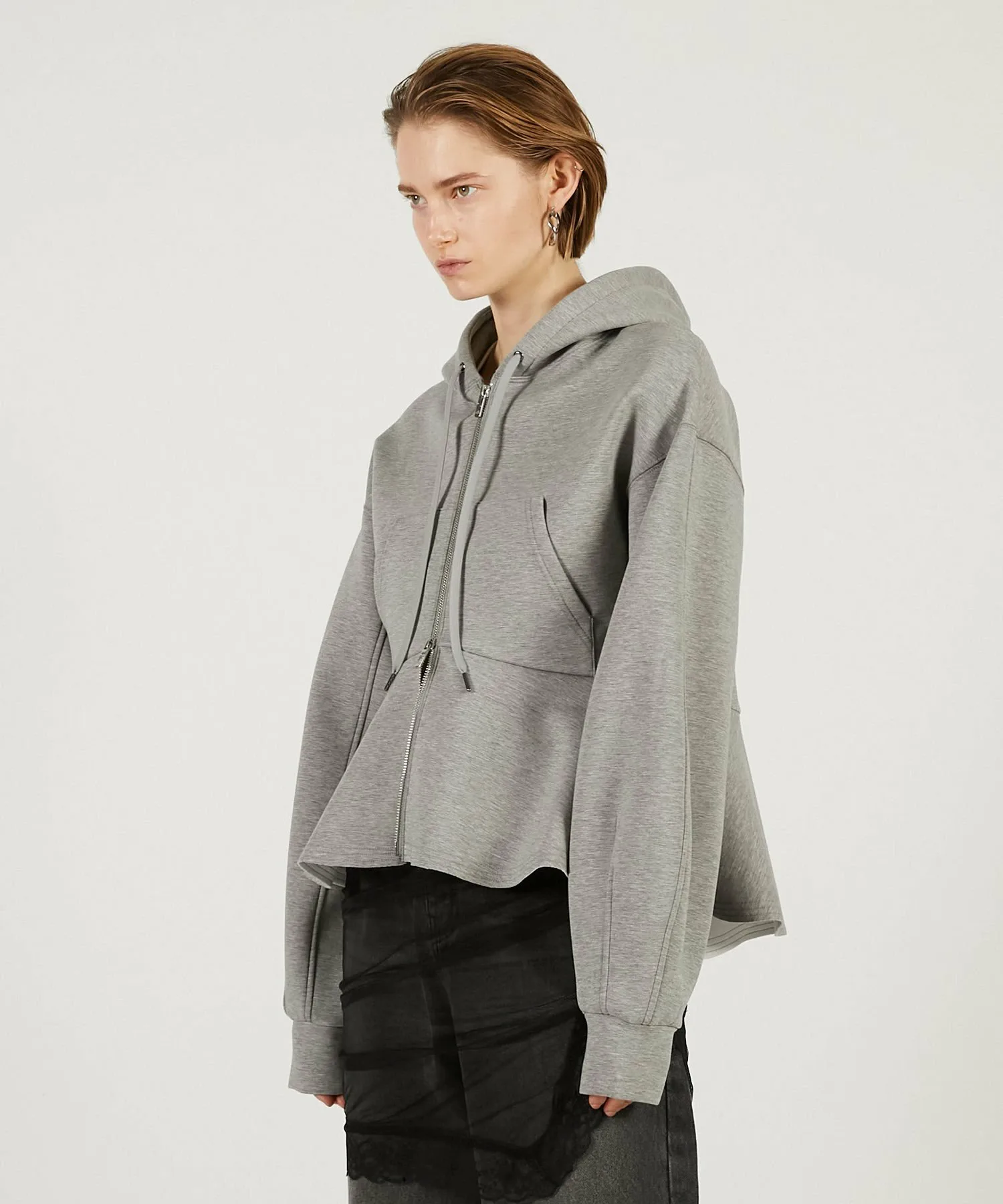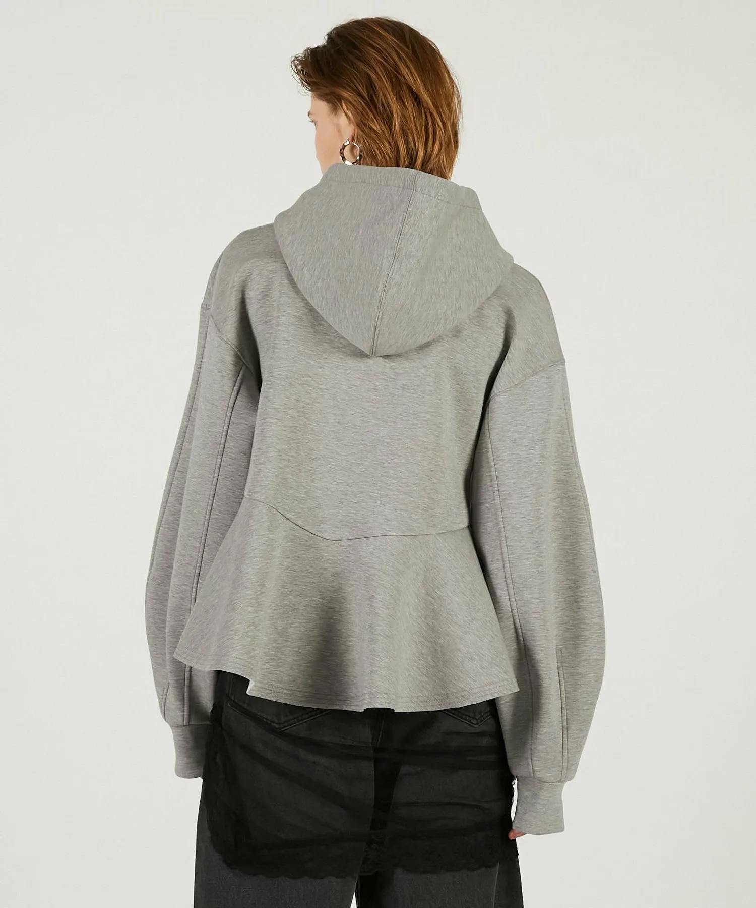 Худи с баской и объемным силуэтом. Баска естественным образом подчеркивает талию, добавляя женственности этой повседневной толстовке. Необработанный край придает ей необходимую непринужденность.