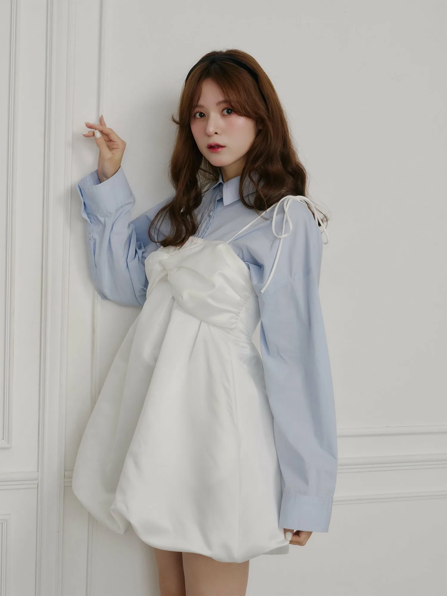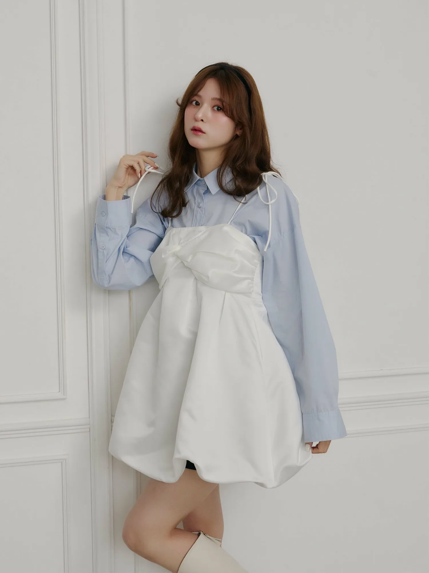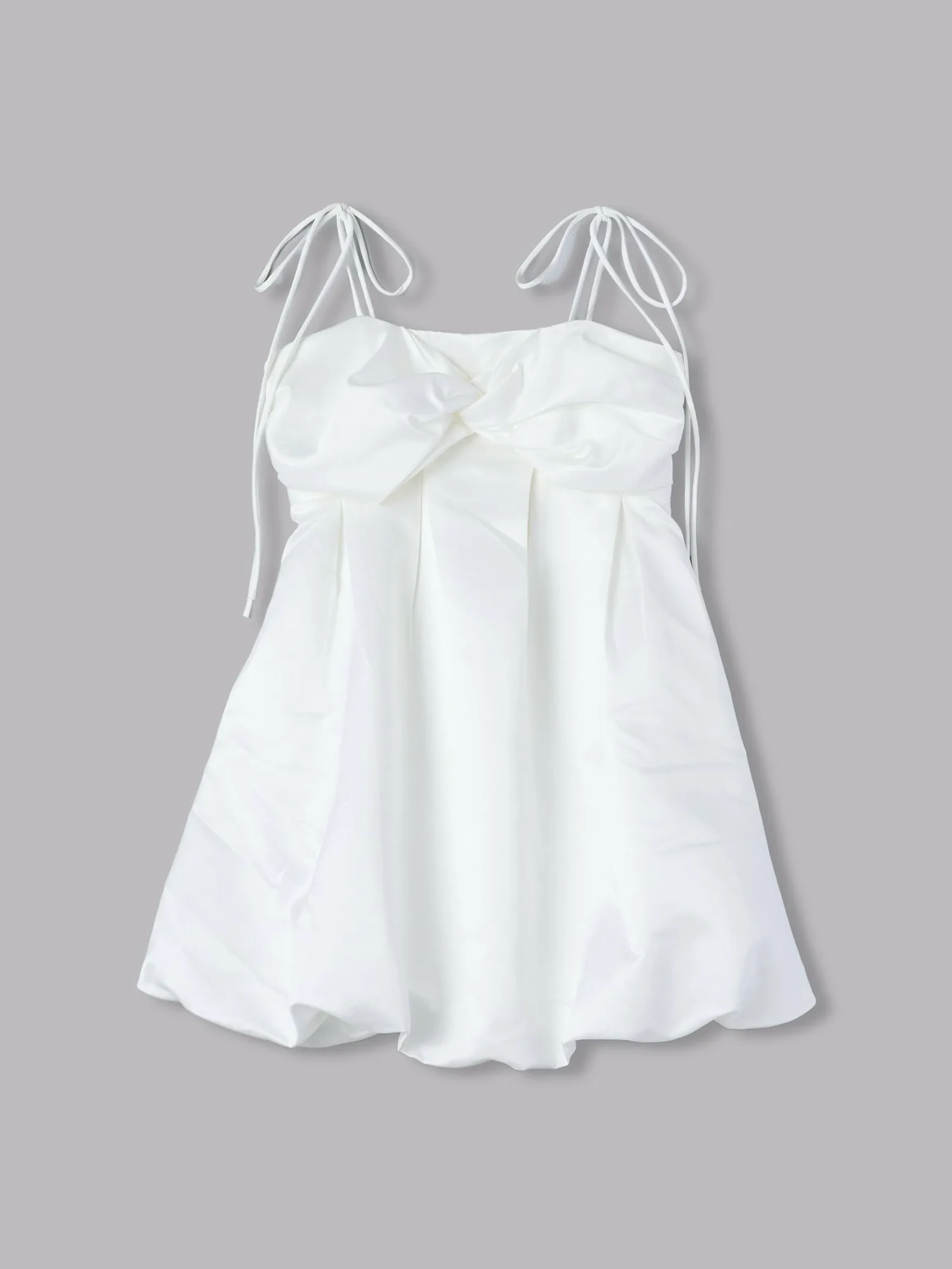 Это платье отличается элегантным блеском атласа и мягким, округлым силуэтом-баллоном.