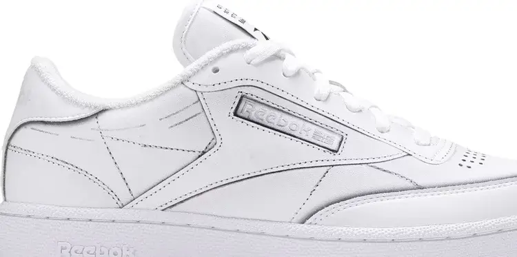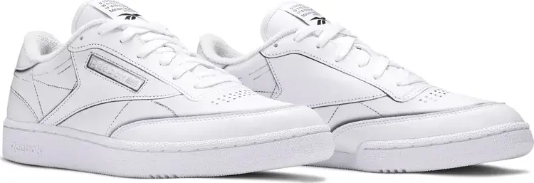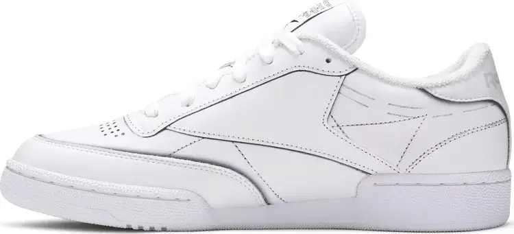 Дизайн Maison Margiela x Reebok Club C ‘White’ черпает вдохновение в тромп-л’оэйль, представленных в коллекции прет-а-порте весны/лета 1996 французского дома моды. Кроссовки в стиле 80-х имеют однотонный белый верх, изготовленный из цельного куска плоской кожи, на внешней поверхности напечатано отсканированное изображение OG Club C. Подкладка из махровой ткани и резиновая подошва cupsole сохраняют оригинальный дизайн кроссовок, а фирменные детали Margiela принять форму сшитых деталей на язычке пятки и сетке из цифр на ярлычке язычка.