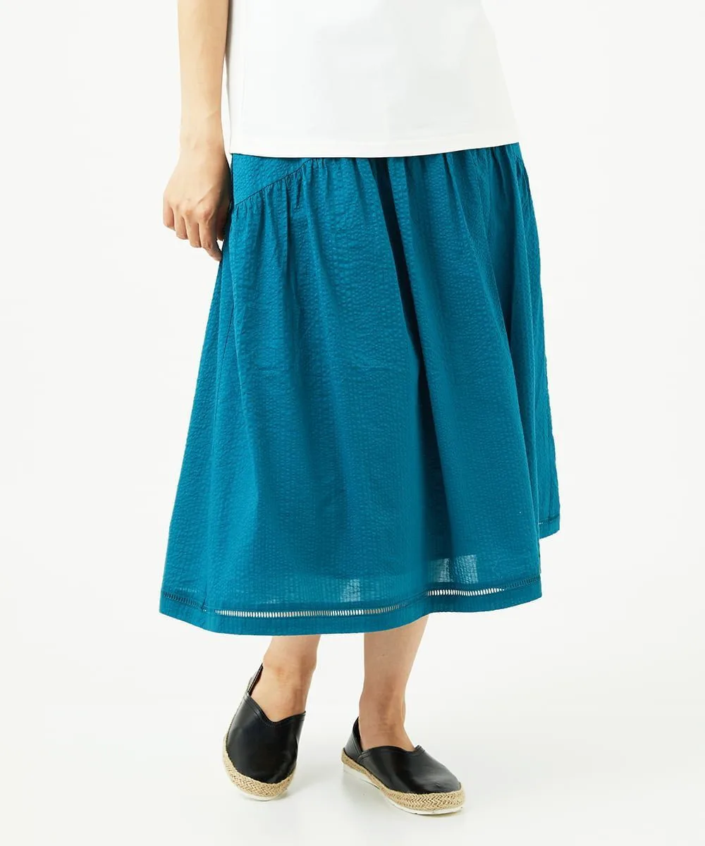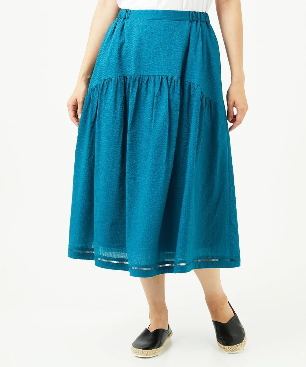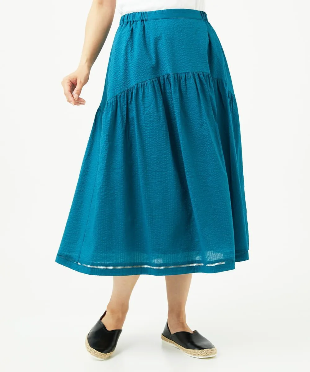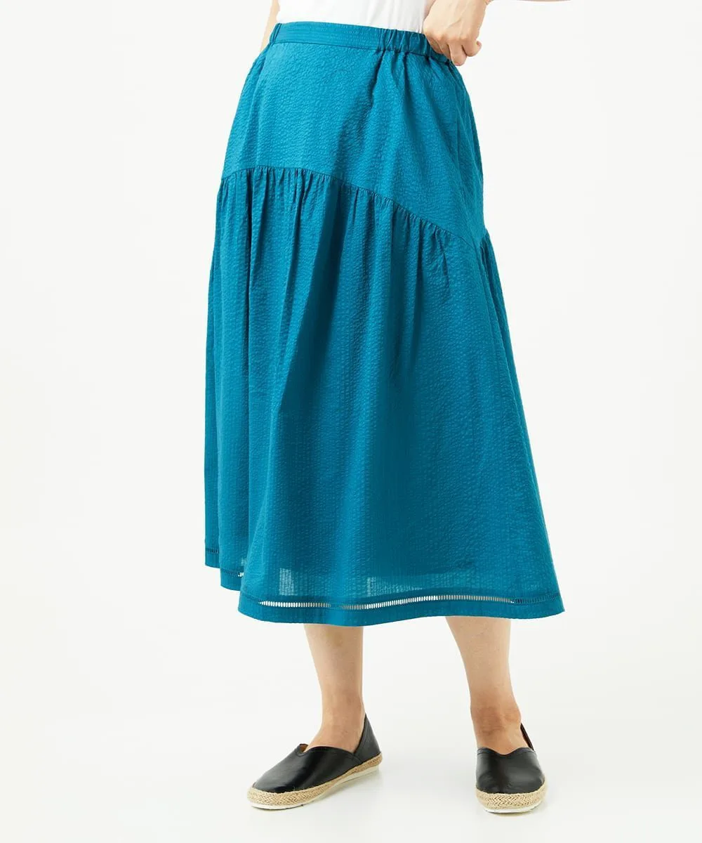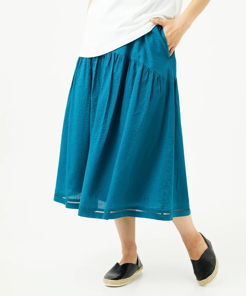 Даже в сочетании с простым топом она создает освежающий, элегантный и изысканный образ. Мы также рекомендуем сочетать его с блузкой для более элегантного образа. У нас также есть блузка с застежкой спереди [NGBJB01330] и платье-туника [NGEJB01360], изготовленные из того же материала. Эту юбку можно носить как комплект.