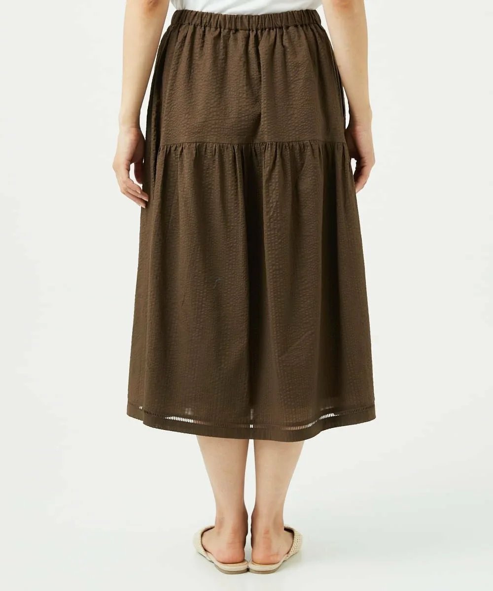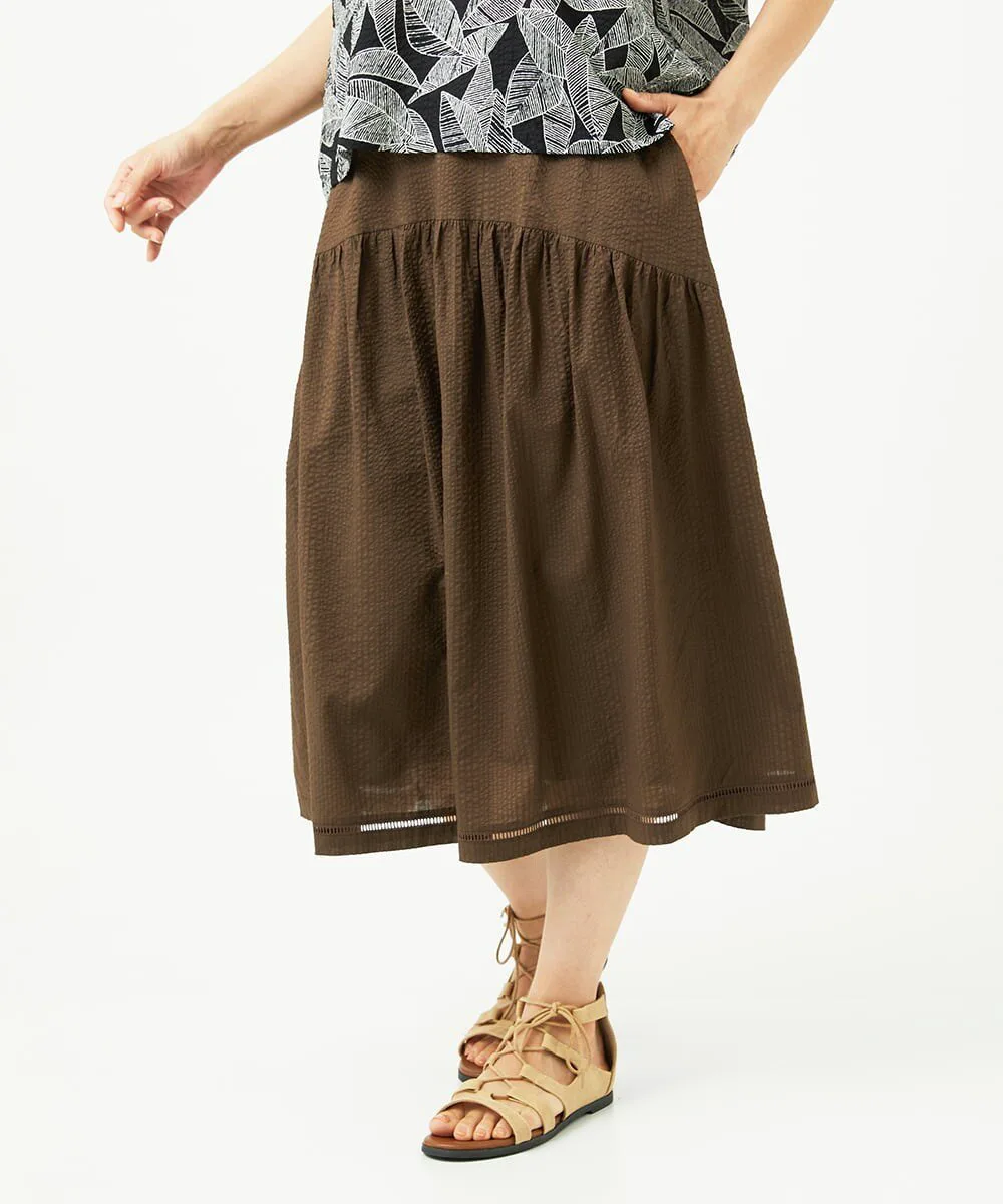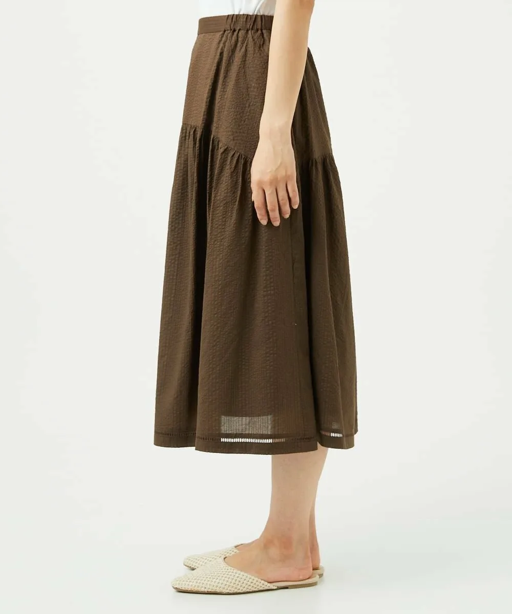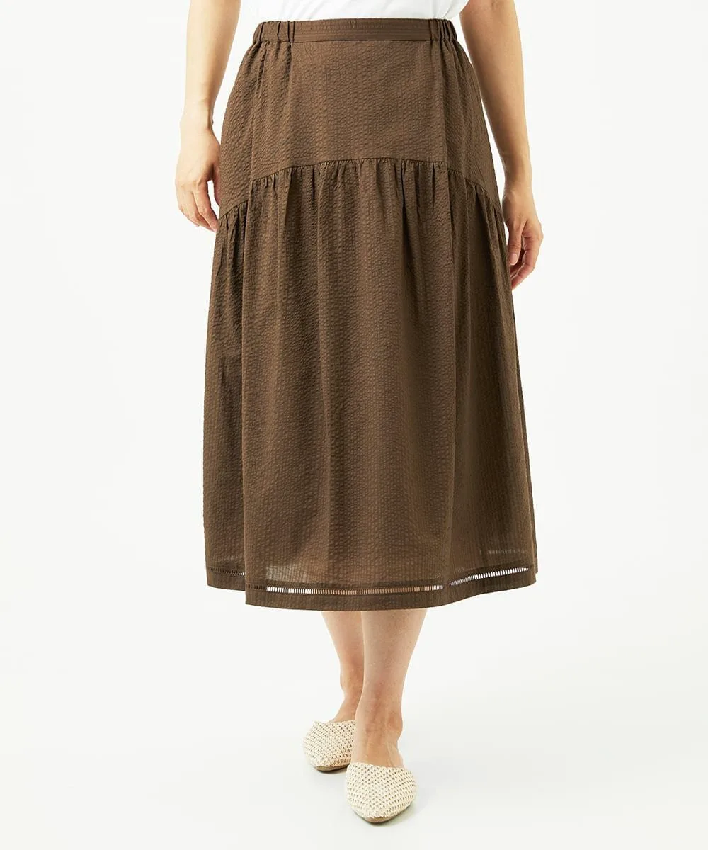 Даже в сочетании с простым топом она создает освежающий, элегантный и изысканный образ. Мы также рекомендуем сочетать его с блузкой для более элегантного образа. У нас также есть блузка с застежкой спереди [NGBJB01330] и платье-туника [NGEJB01360], изготовленные из того же материала. Эту юбку можно носить как комплект.