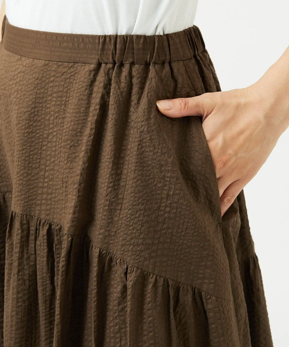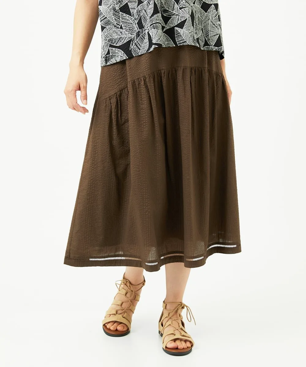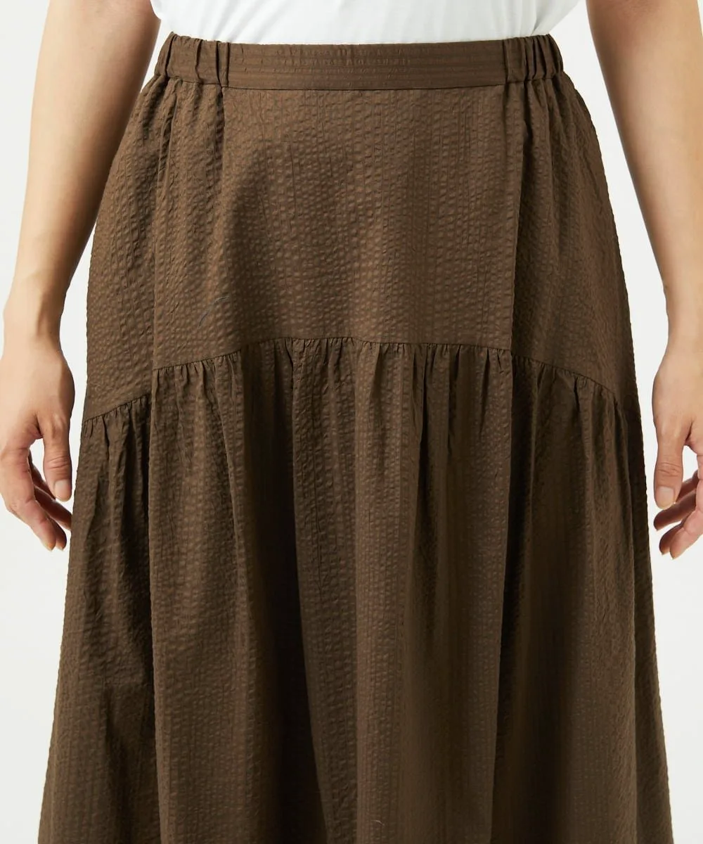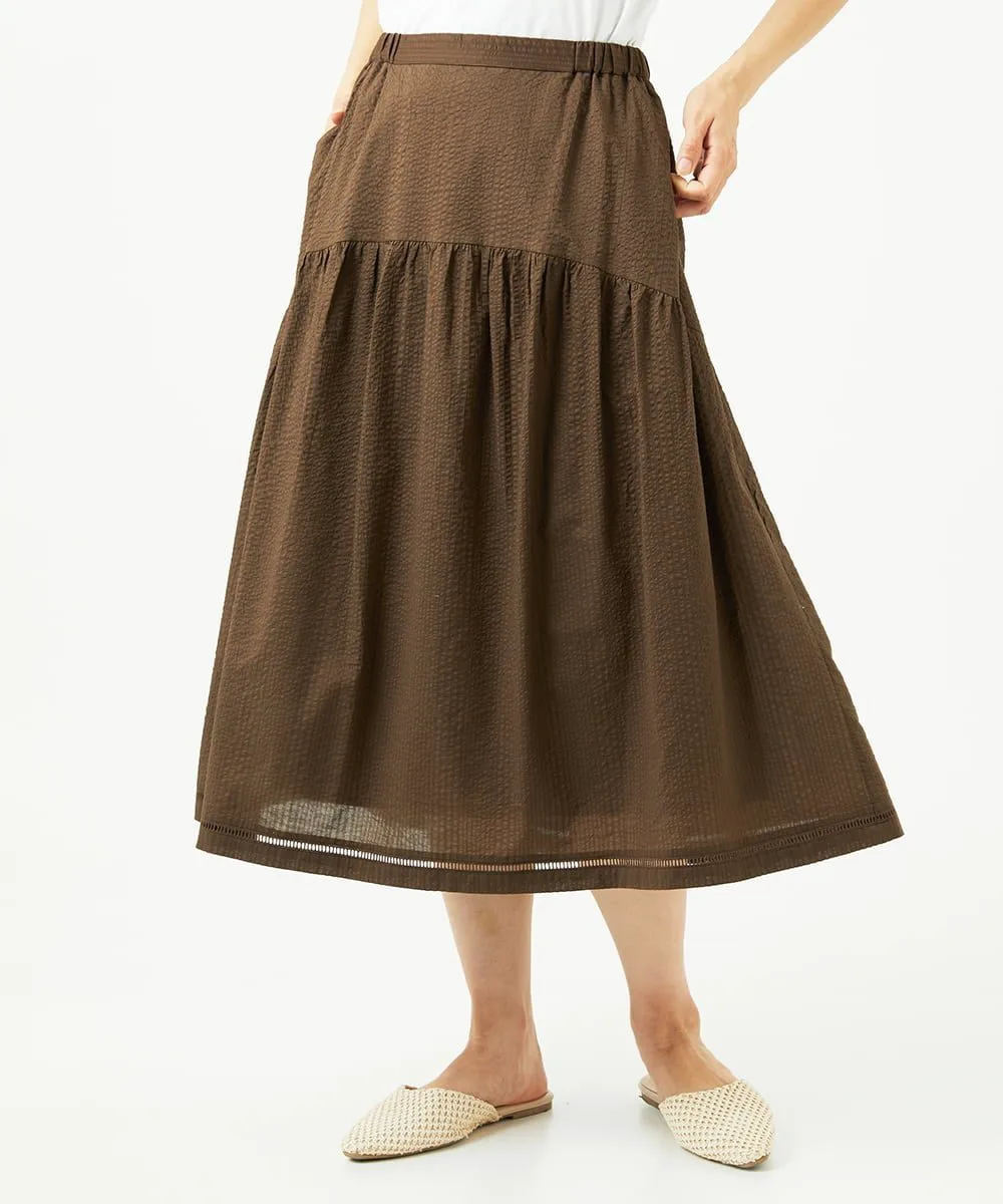 Даже в сочетании с простым топом она создает освежающий, элегантный и изысканный образ. Мы также рекомендуем сочетать его с блузкой для более элегантного образа. У нас также есть блузка с застежкой спереди [NGBJB01330] и платье-туника [NGEJB01360], изготовленные из того же материала. Эту юбку можно носить как комплект.