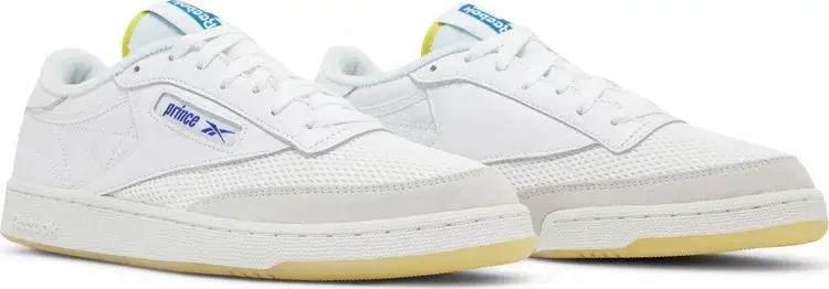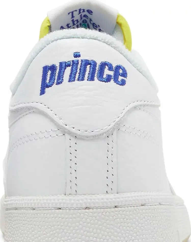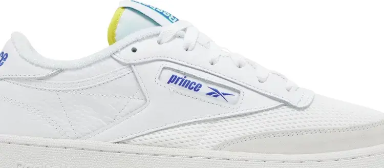 Кроссовки Prince x Reebok Club C Revenge White Bright Cobalt, разработанные в сотрудничестве с культовым теннисным брендом, отдают дань уважения корням ретро-силуэта, характерным для кортов с твердым покрытием. Верх из белой кожи украшен сетчатыми панелями в тон по всей союзке и замшевой накладкой на переднюю часть стопы светло-серого цвета. Окно с логотипом на боковой стороне отображает логотипы Prince и Reebok Vector, в то время как несоответствующие выступы на пятке отображают надпись Prince на правой обуви и брендинг Reebok на левой. Яркие желтые пятна на нейлоновом язычке и на полупрозрачной резиновой подошве кроссовок, под которой виден большой логотип Prince.