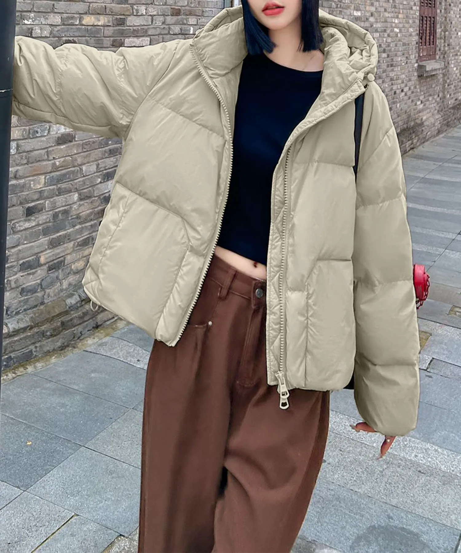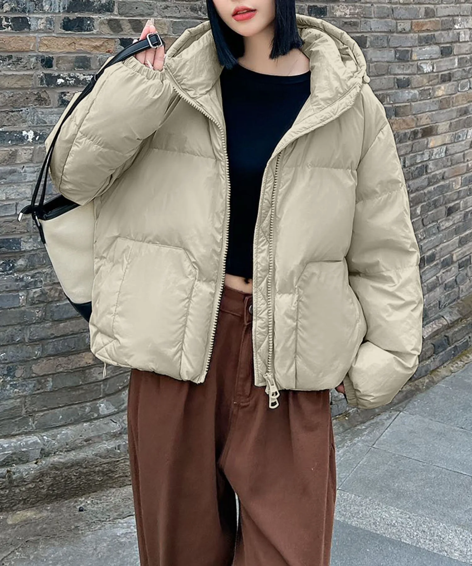 Короткая пуховая куртка, отличающаяся мягким объемом и свободной шириной.