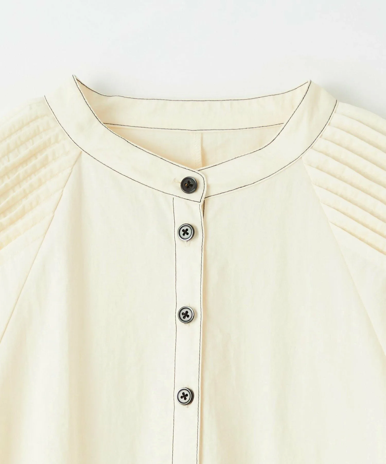 Еще один важный момент — строчка и пуговицы на груди и шее, которые подчеркивают лицо.