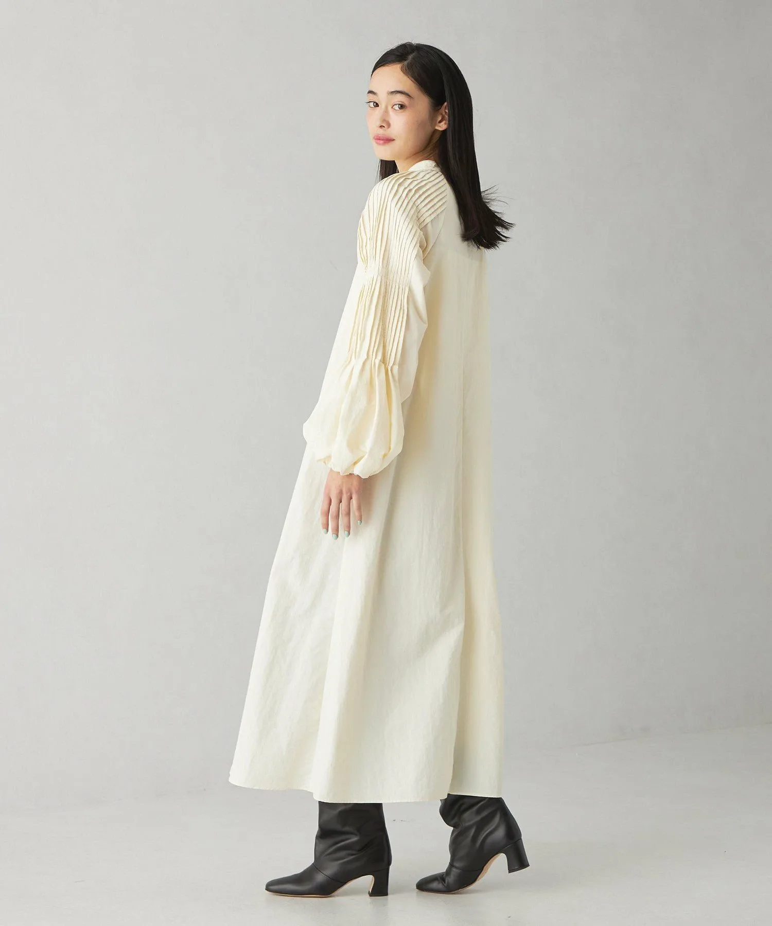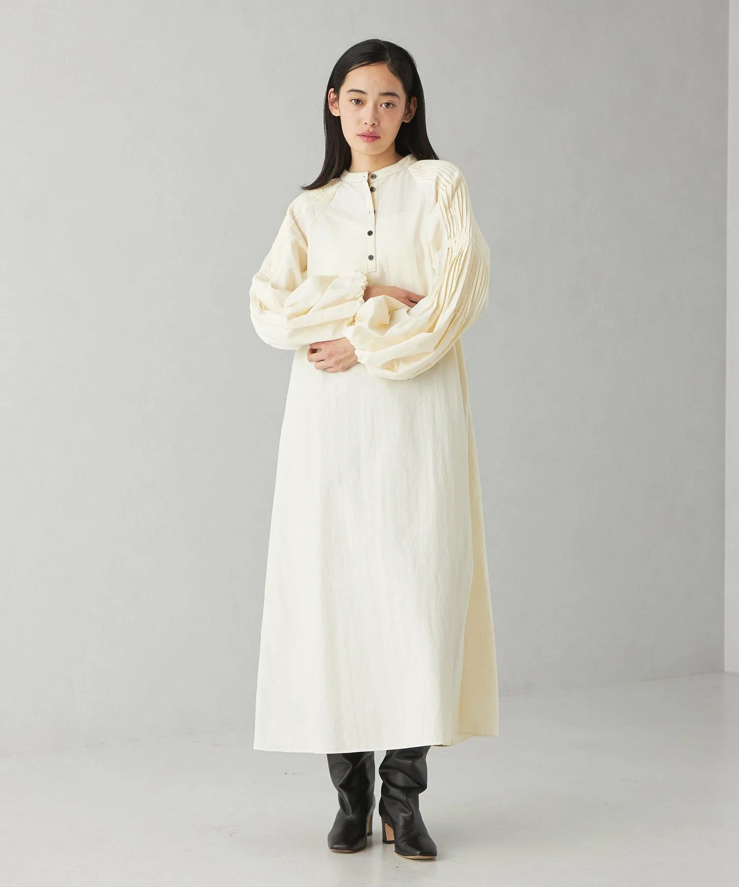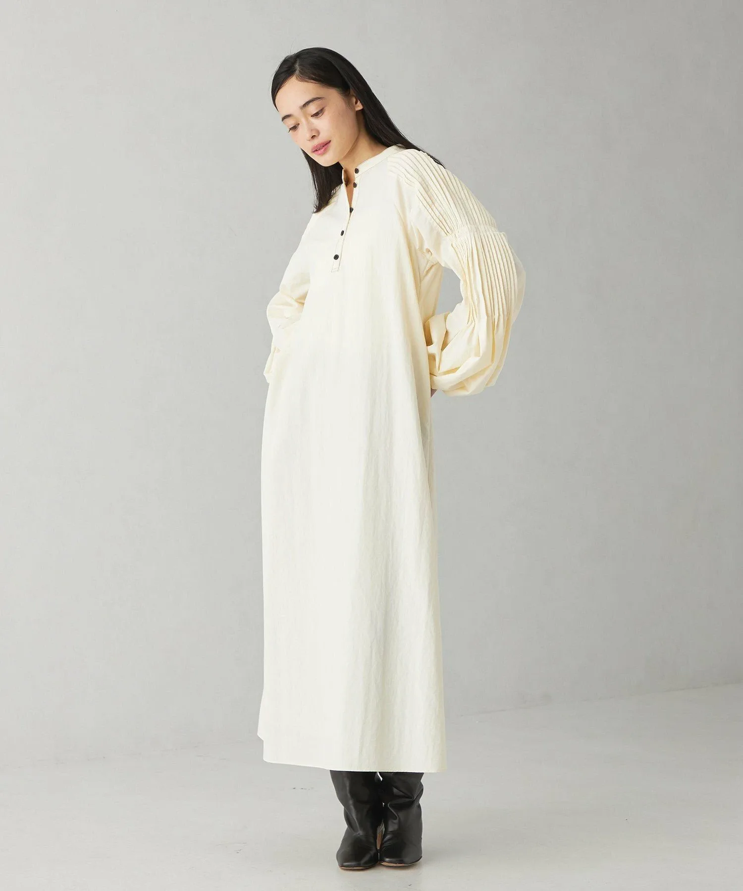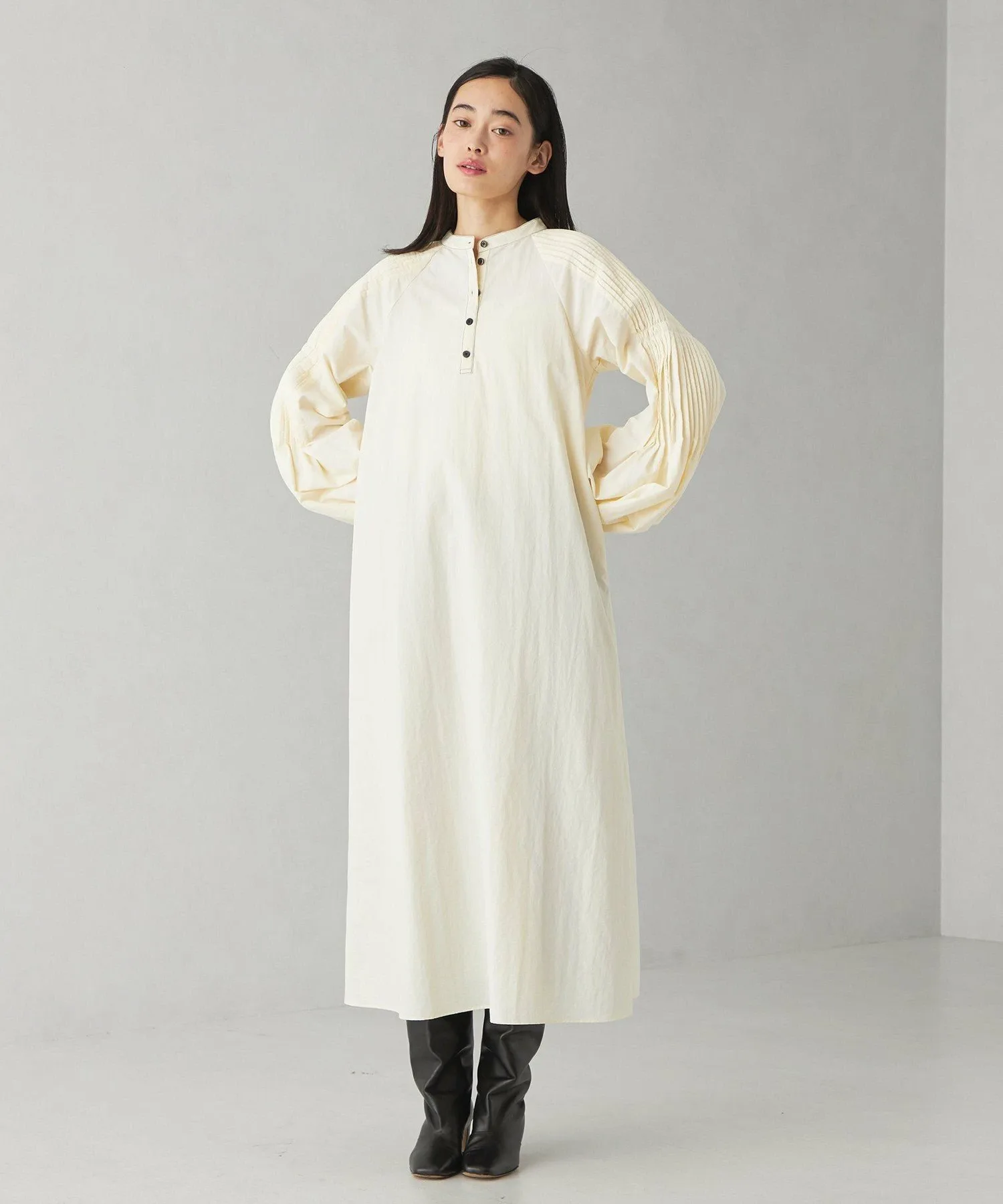 Повседневное платье со складками на рукавах