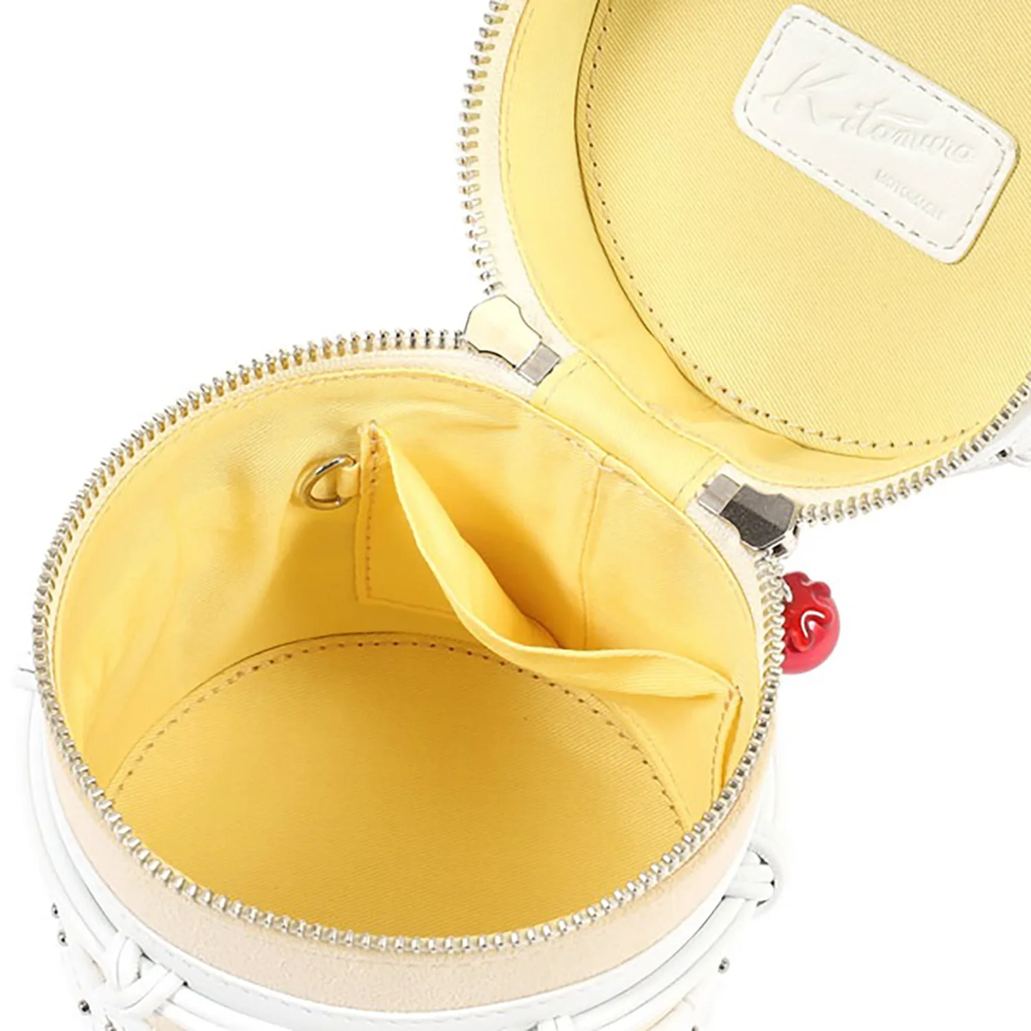 Эта сумочка в виде торта сияет неповторимой оригинальностью Китамиуры. Внимание к деталям, таким как ручка в форме вилки и замысловатая строчка, делает ее поистине очаровательным аксессуаром. Она добавит нотку взрослой игривости любому наряду для гламурного случая.