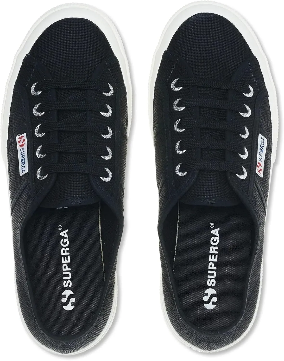 Полностью дышащий хлопок Подошва из вулканизированной резины Бирка Superga сбоку и на пятке Люксы с тиснением Superga