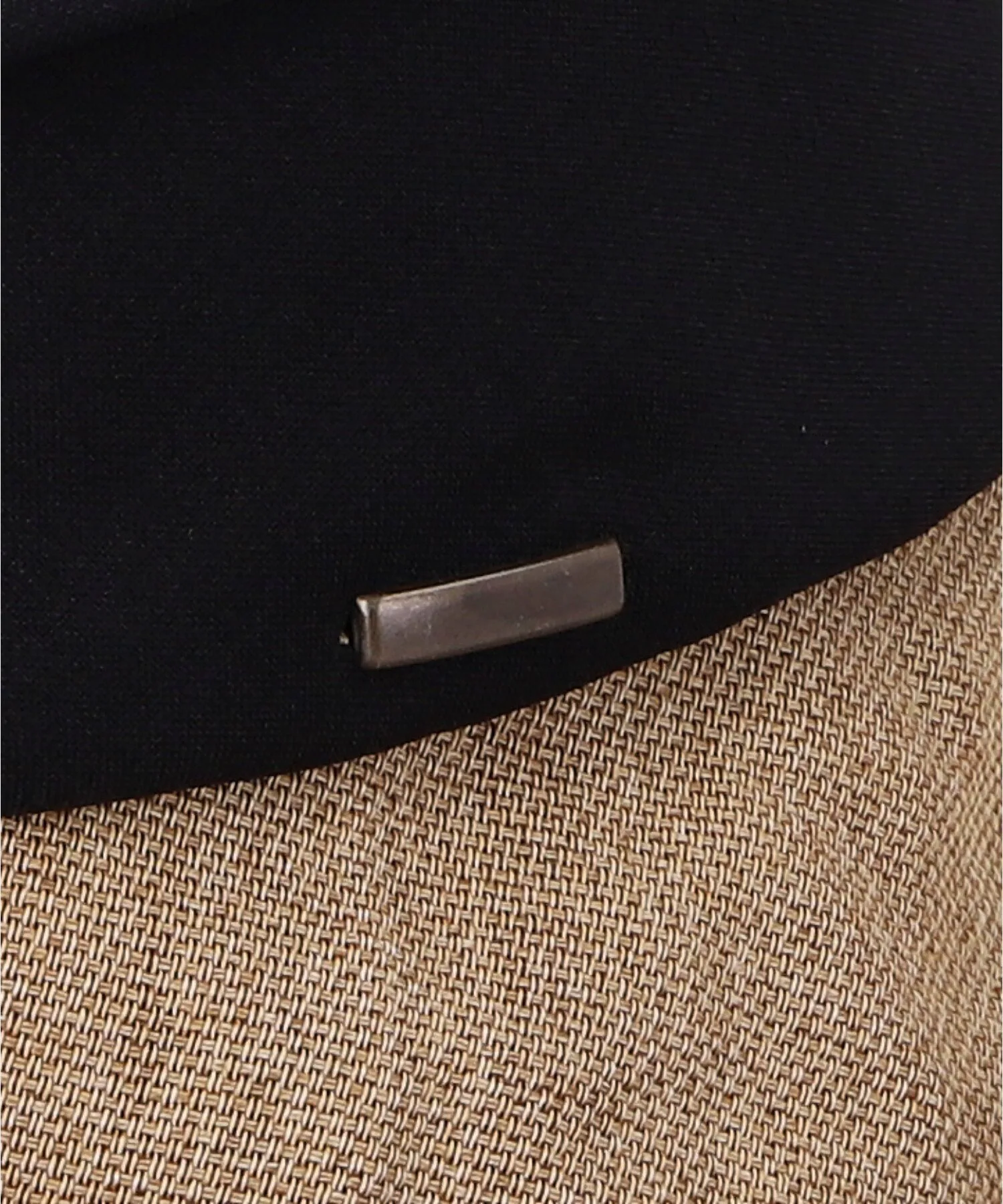 Широкие, драпированные поля закрывают тулью, создавая динамичный образ. Мелкие детали по бокам добавляют тонкий акцент.