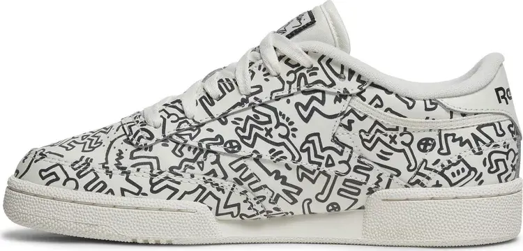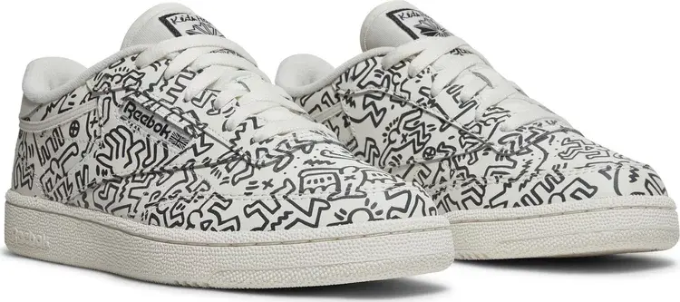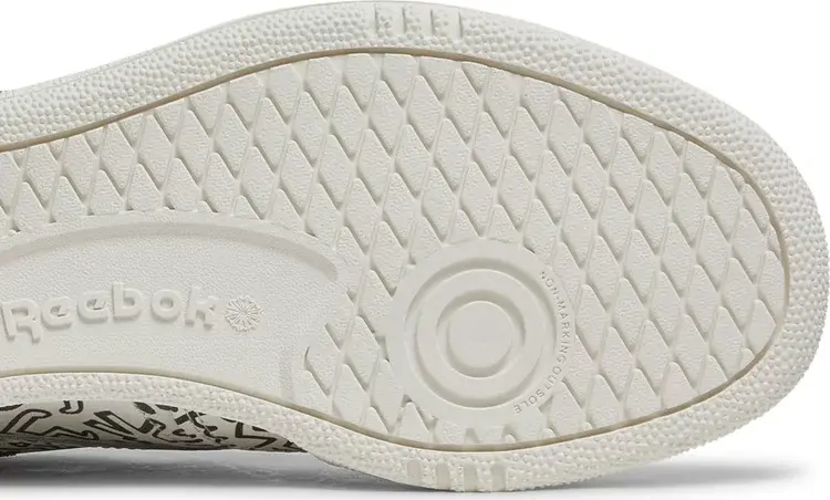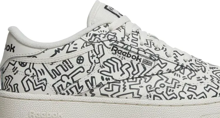 Модель Keith Haring x Reebok Club C «Dancing Figures Allover Print» взята из лимитированной капсульной коллекции, посвященной влиятельному уличному художнику. Сплошной рисунок на верхе из кожи кремового цвета вдохновлен интерьером магазина Haring’s Pop Shop, открывшего свои двери в 1986 году в Нью-Йорке. Окно с логотипом Reebok украшает боковую панель, а подпись художника украшает тканую бирку на язычке и стельку. Низкий верх держится на резиновой подошве cupsole с клиновидной амортизацией из EVA.
