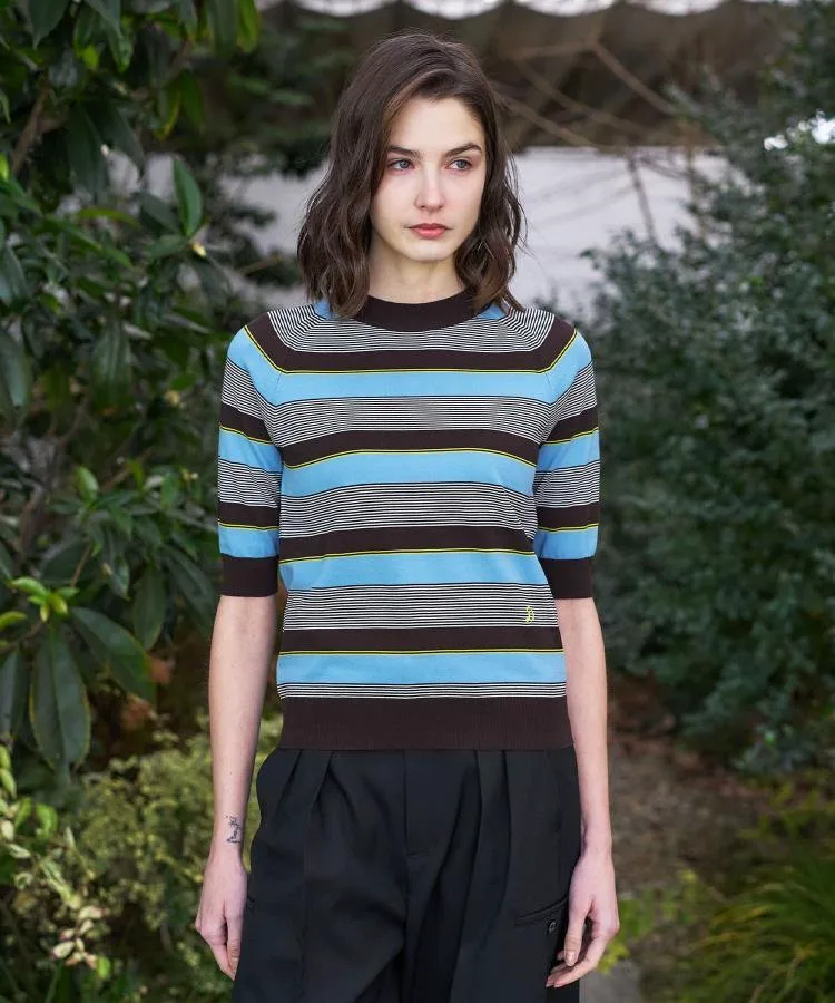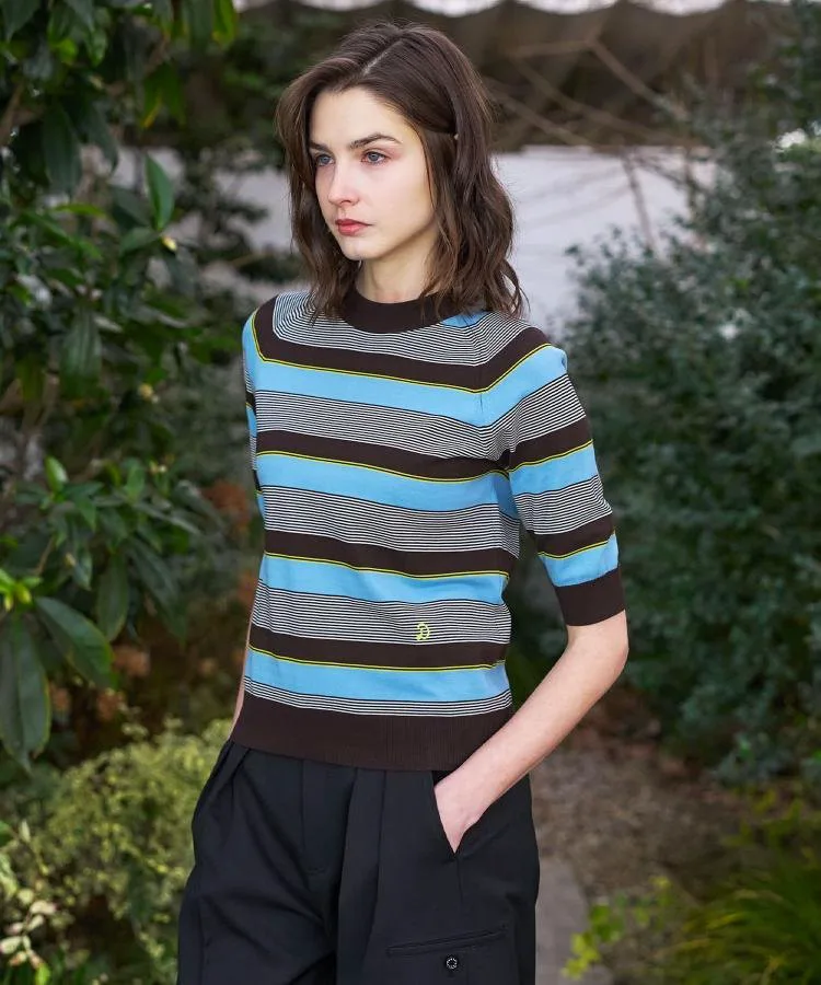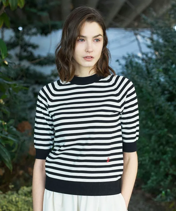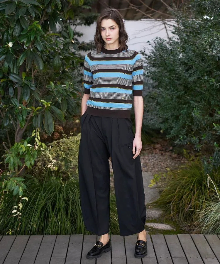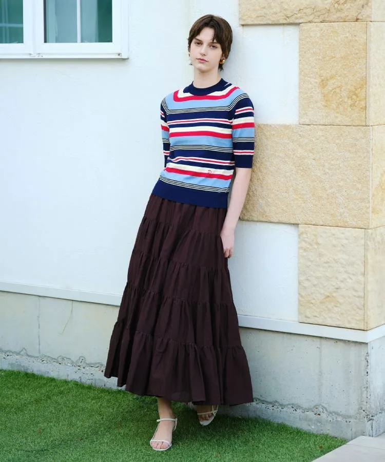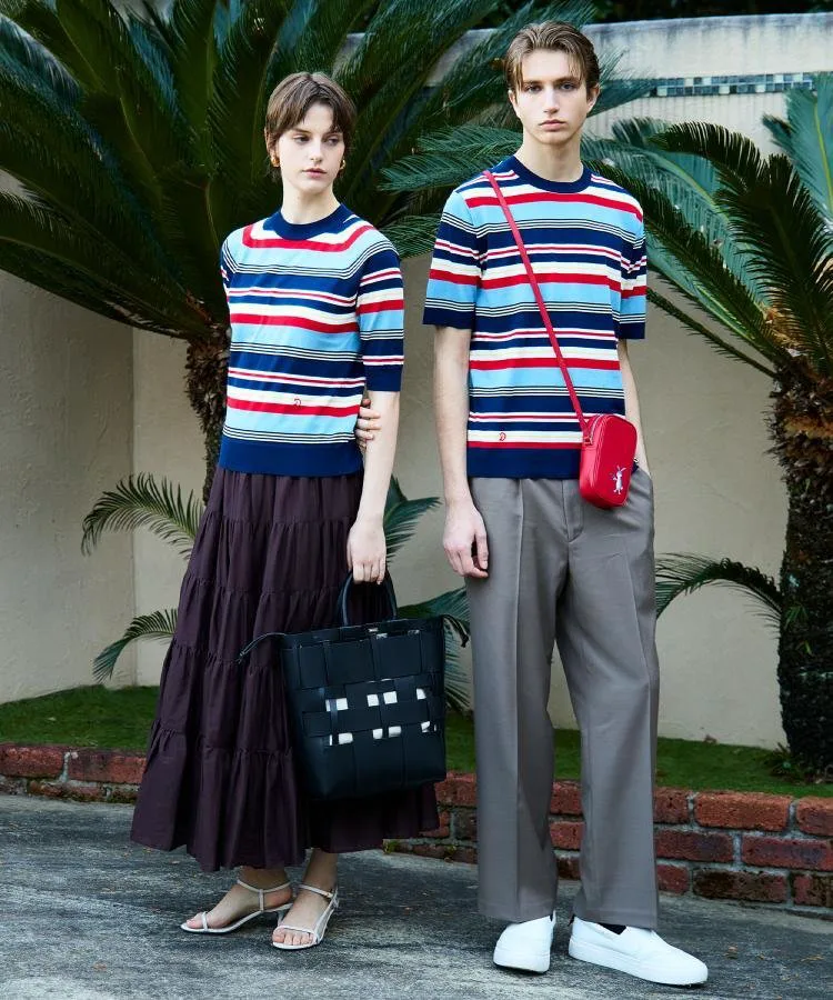 В этом сезоне он представлен в трех цветах: черно-белый полосатый дизайн для повседневного образа, дизайн с многослойной каймой, сочетающий освежающий саксофон с коричневым для темного, летнего настроения, и яркий темно-синий и красный дизайн с многослойной каймой в многоцветной морской цветовой палитре.