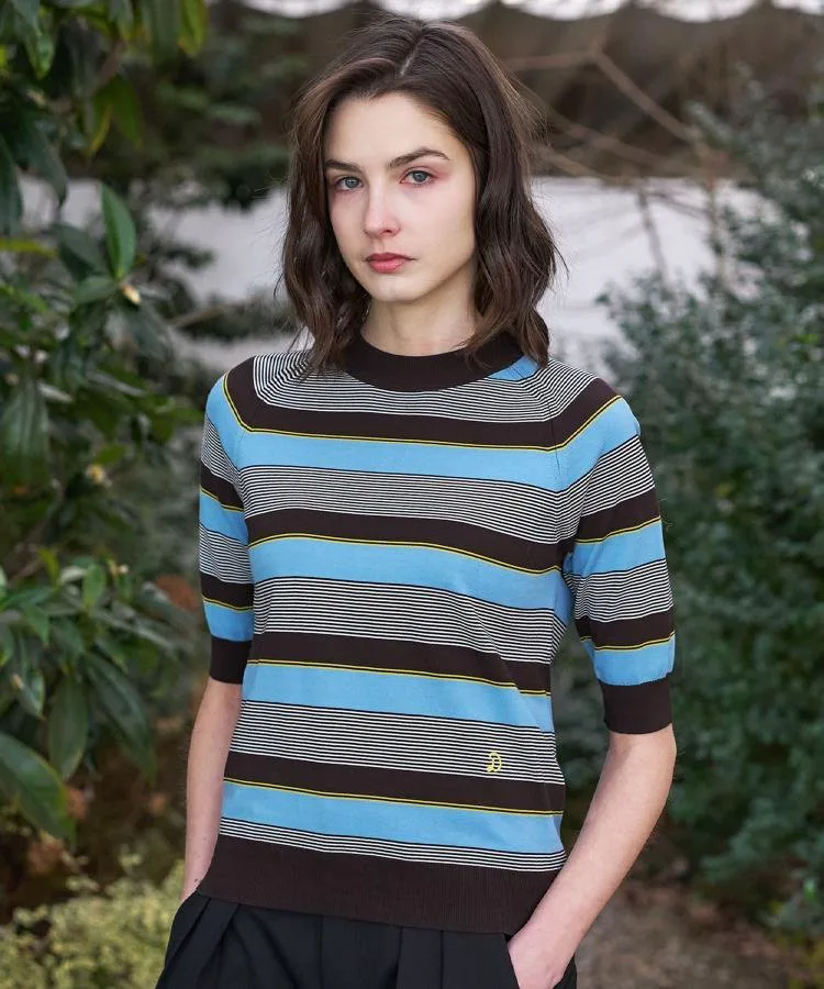 В этом сезоне он представлен в трех цветах: черно-белый полосатый дизайн для повседневного образа, дизайн с многослойной каймой, сочетающий освежающий саксофон с коричневым для темного, летнего настроения, и яркий темно-синий и красный дизайн с многослойной каймой в многоцветной морской цветовой палитре.