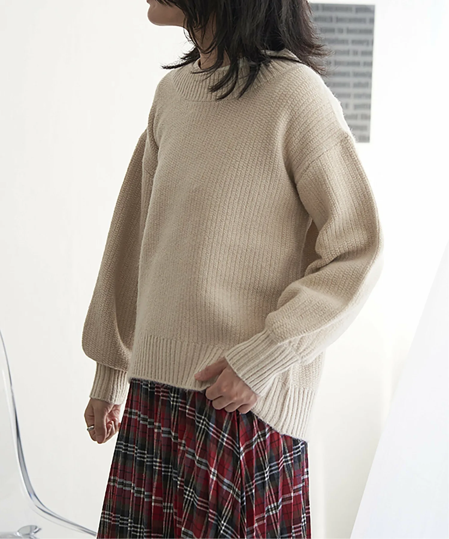 Вязаный пуловер с блестящей блестящей тканью.
