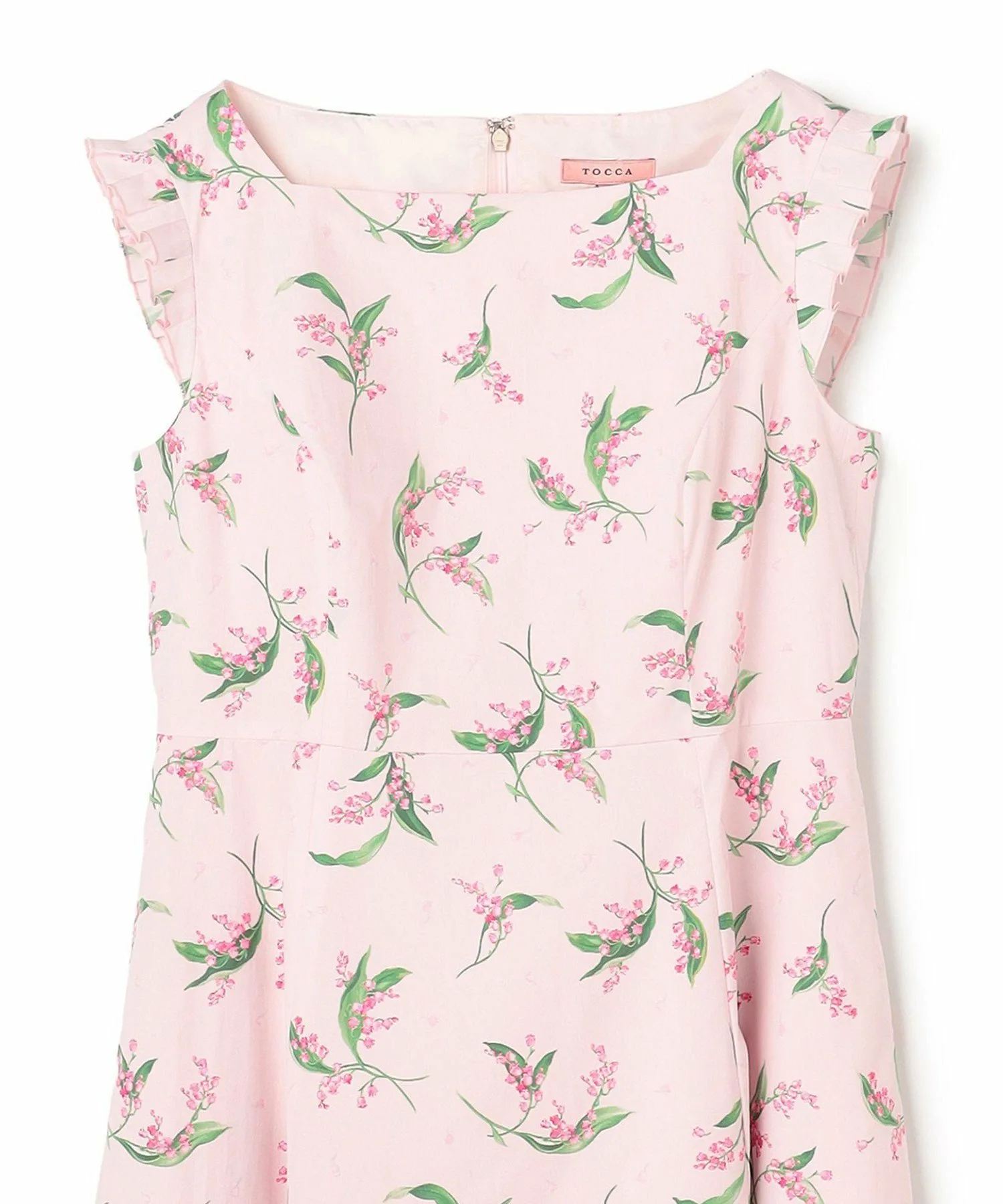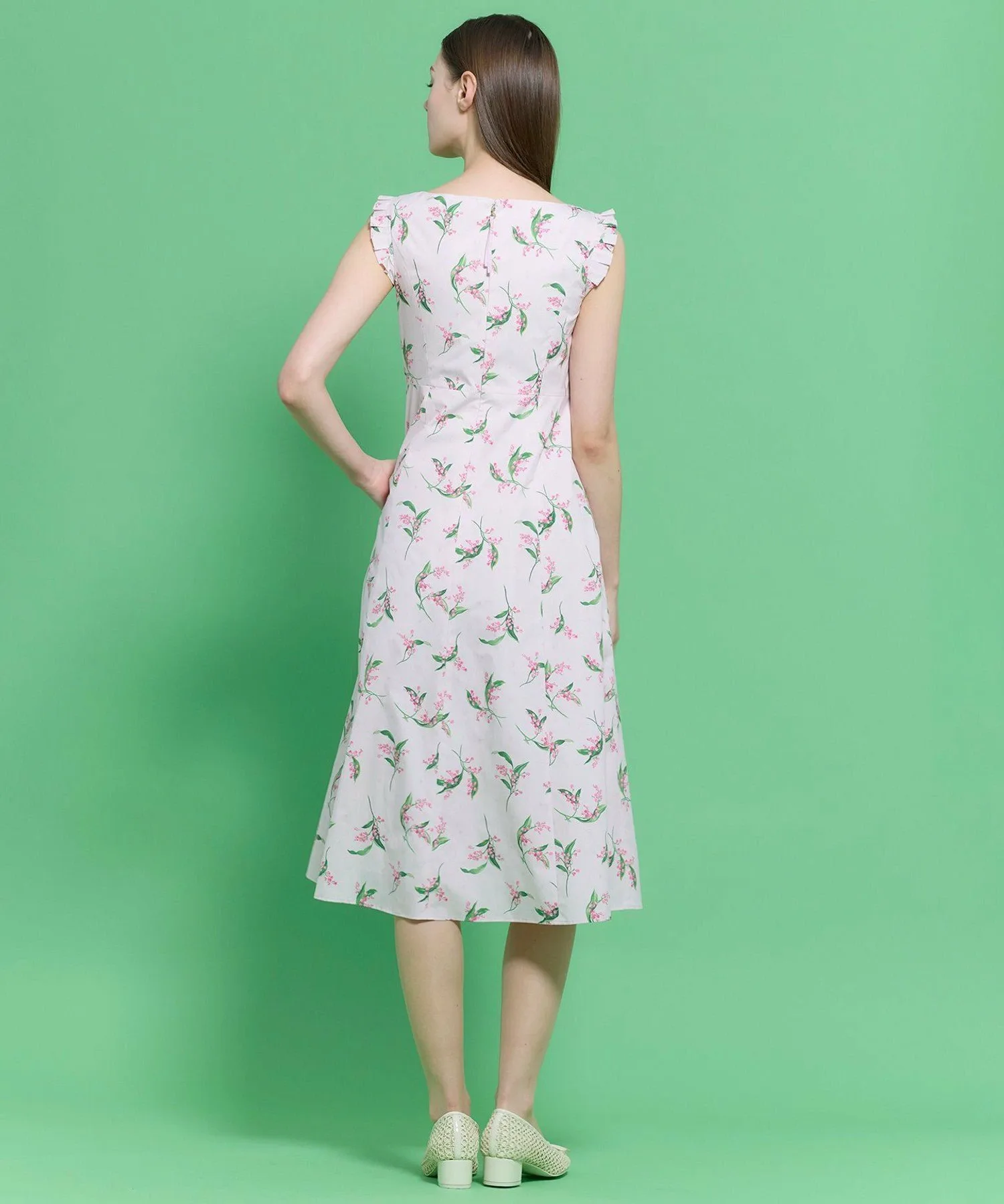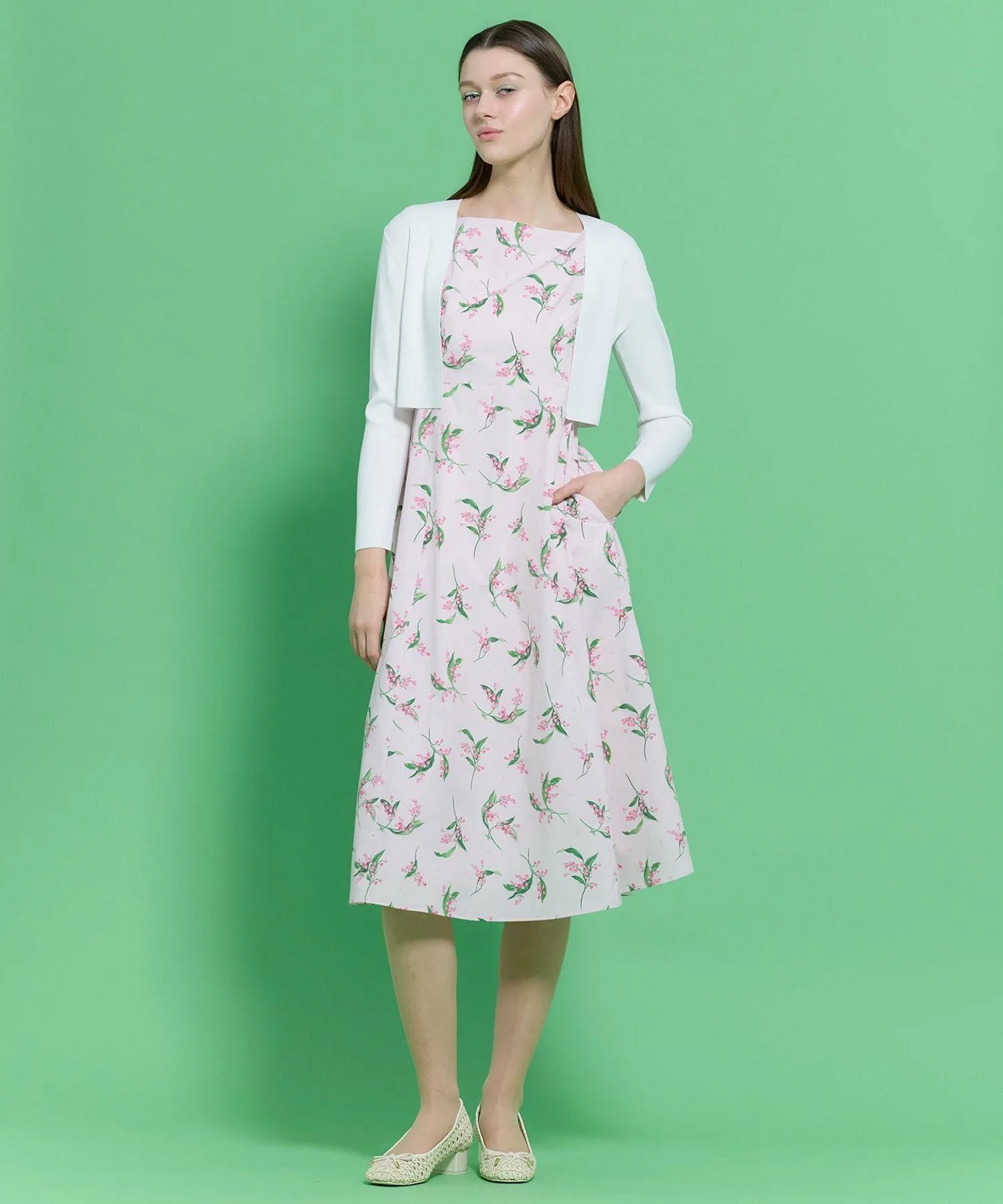 Это платье сшито из высококачественного, плотного материала, что придает ему чистый и элегантный вид. Прекрасный принт с ландышами украшает все платье, подчеркивая его элегантность и женственность. Складки на талии создают четкий силуэт и эффектный вид. Эта универсальная вещь идеально подходит для особых случаев или в сочетании с жакетом или кардиганом для повседневной носки.