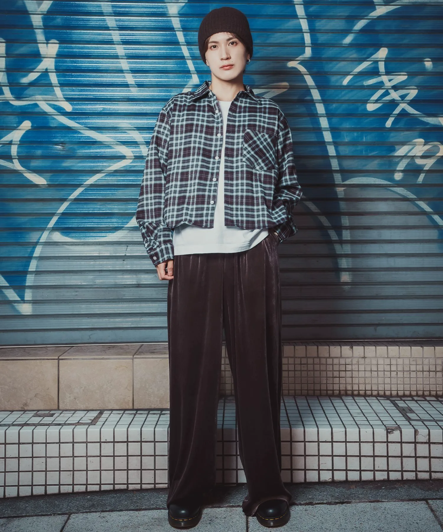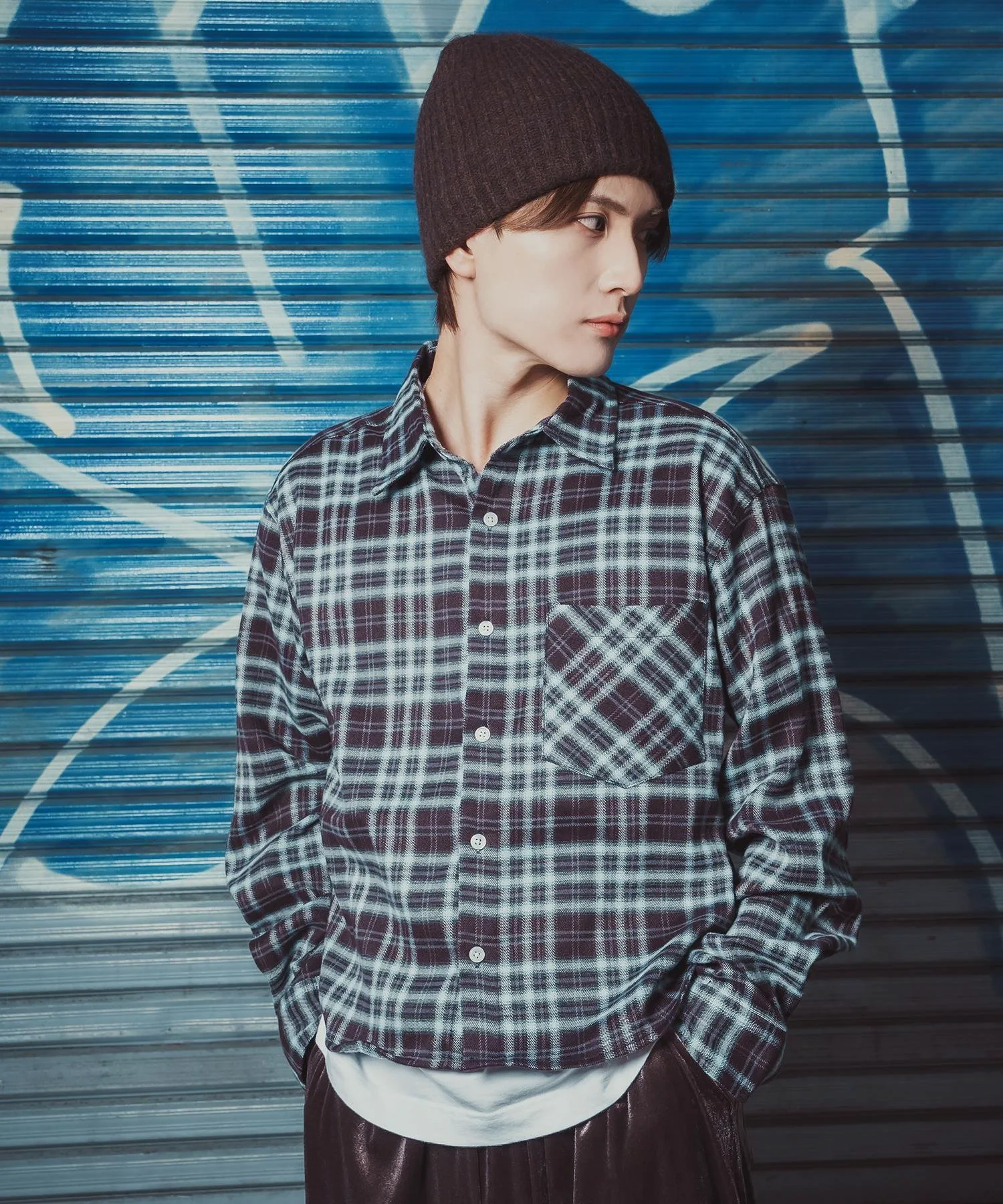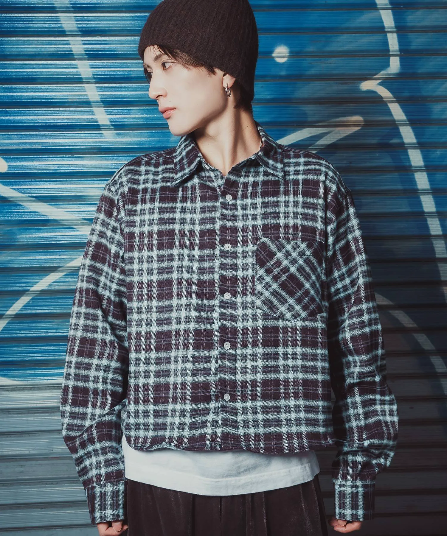 Укороченная клетчатая рубашка из теплого, мягкого материала с начесом.