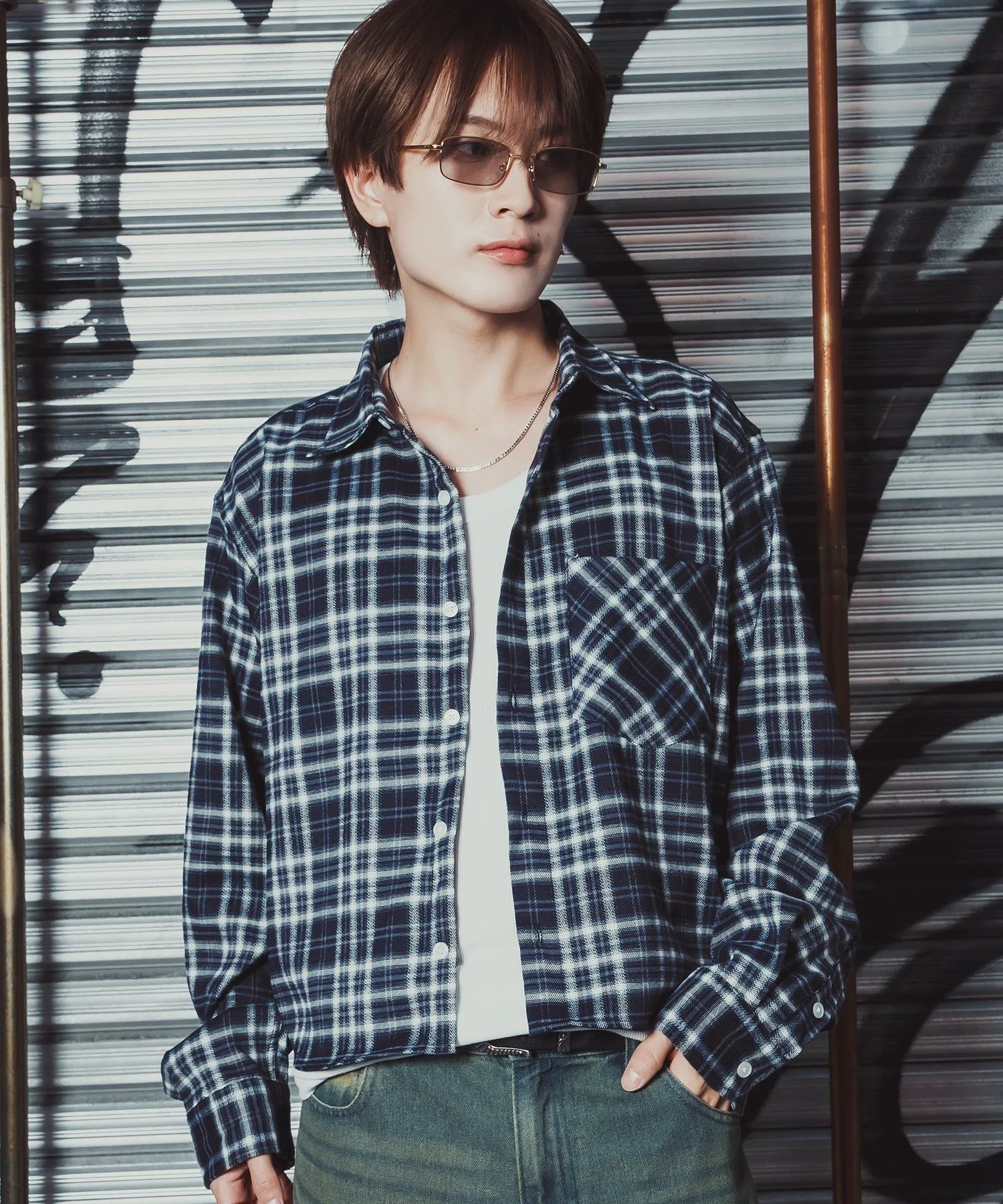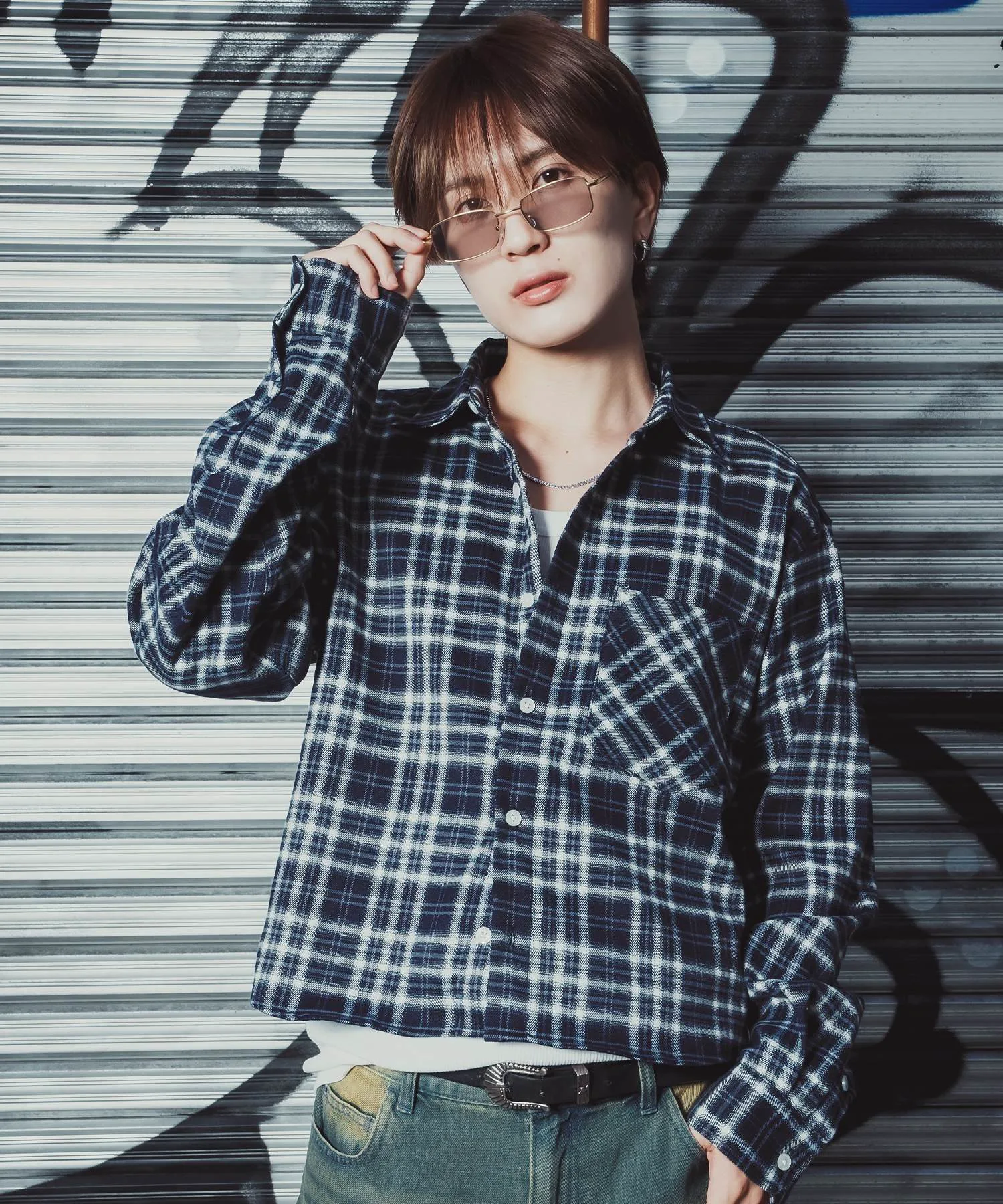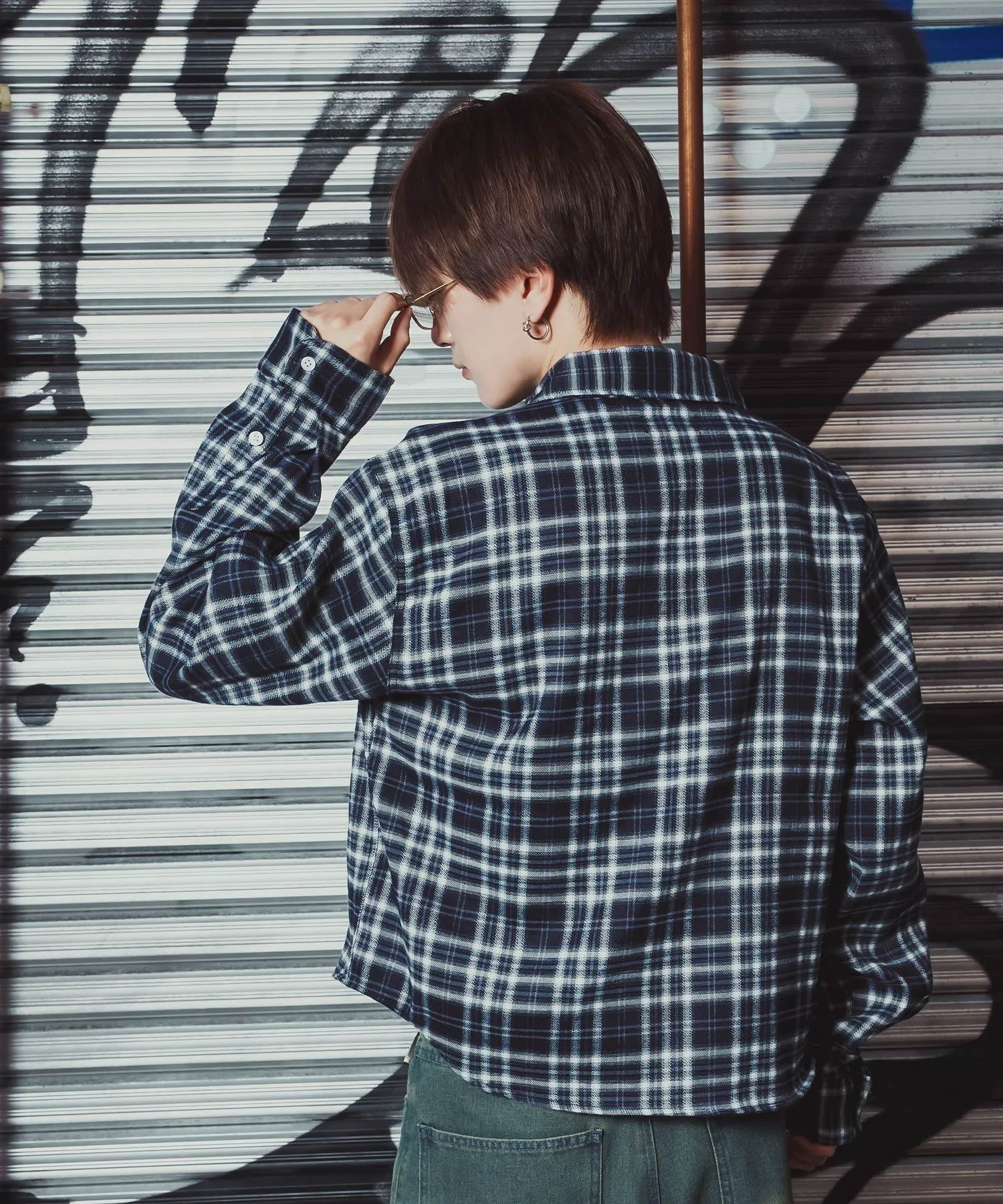 Укороченная клетчатая рубашка из теплого, мягкого материала с начесом.