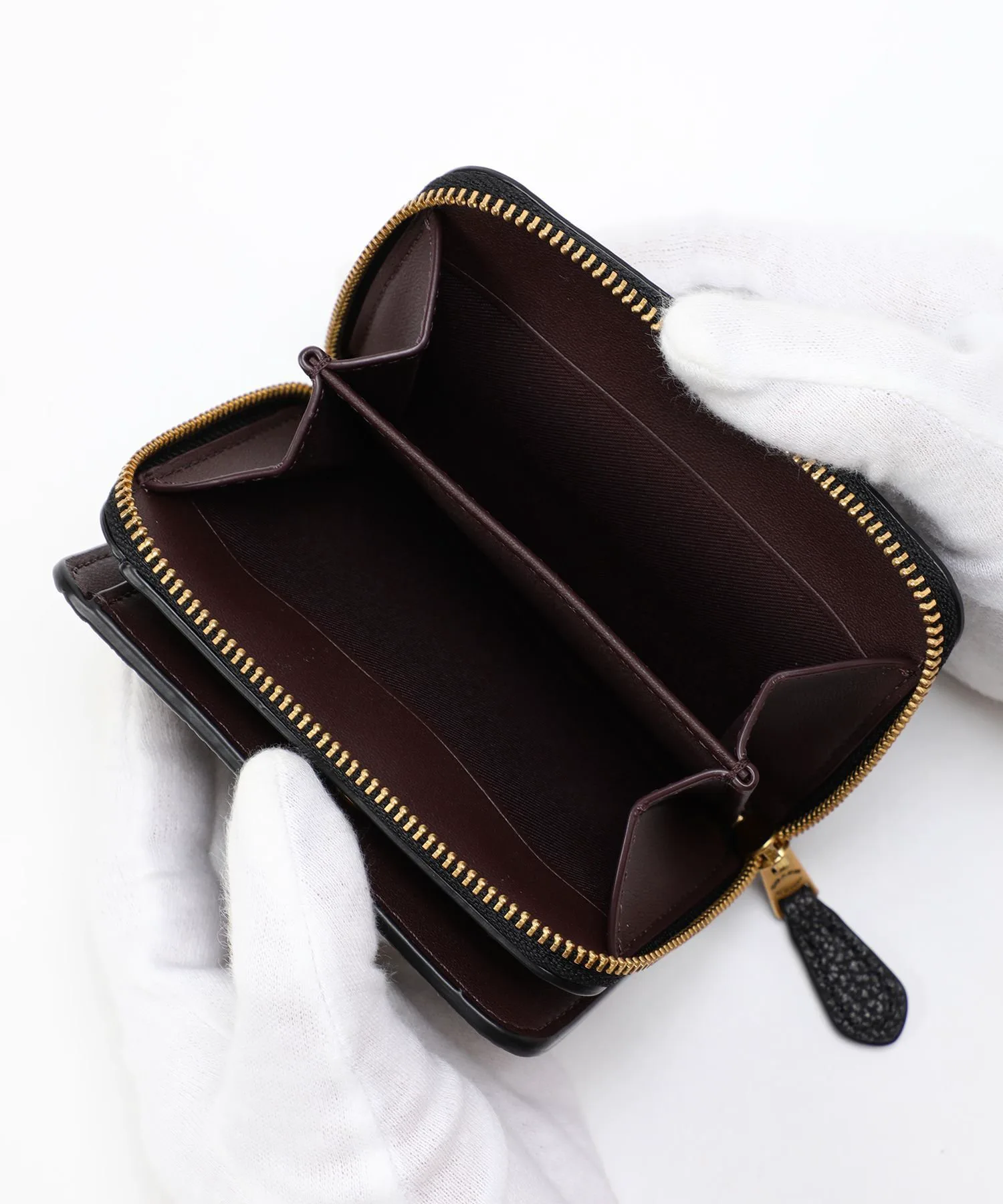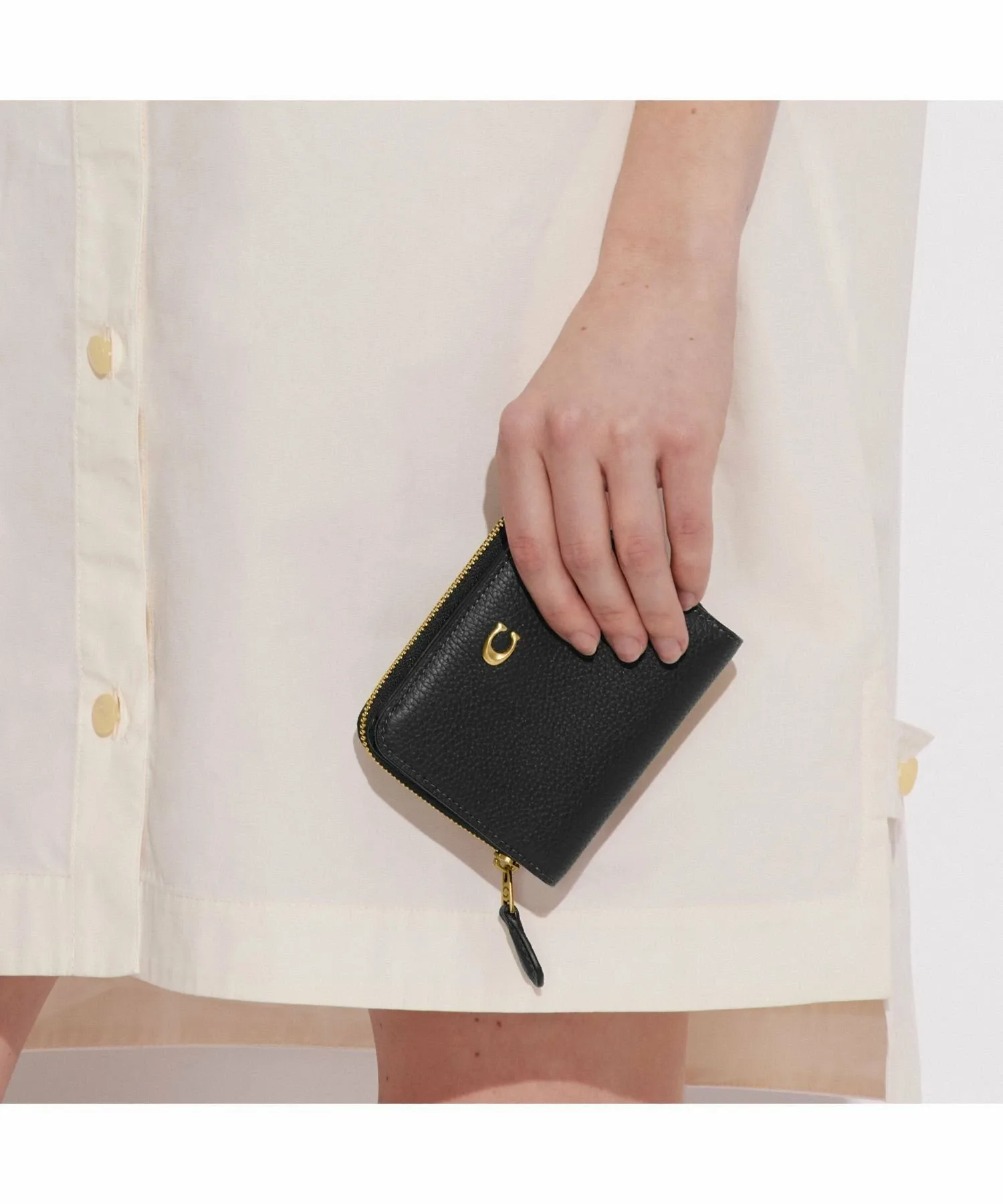 Этот миниатюрный кошелек-портмоне изготовлен из полированной зернистой кожи. Его фирменная фурнитура привлекает внимание. Большой карман для монет с трех сторон имеет удобное отделение для хранения чеков или наушников. Расстегните кнопки, чтобы открыть восемь слотов для карт и отделение для банкнот.