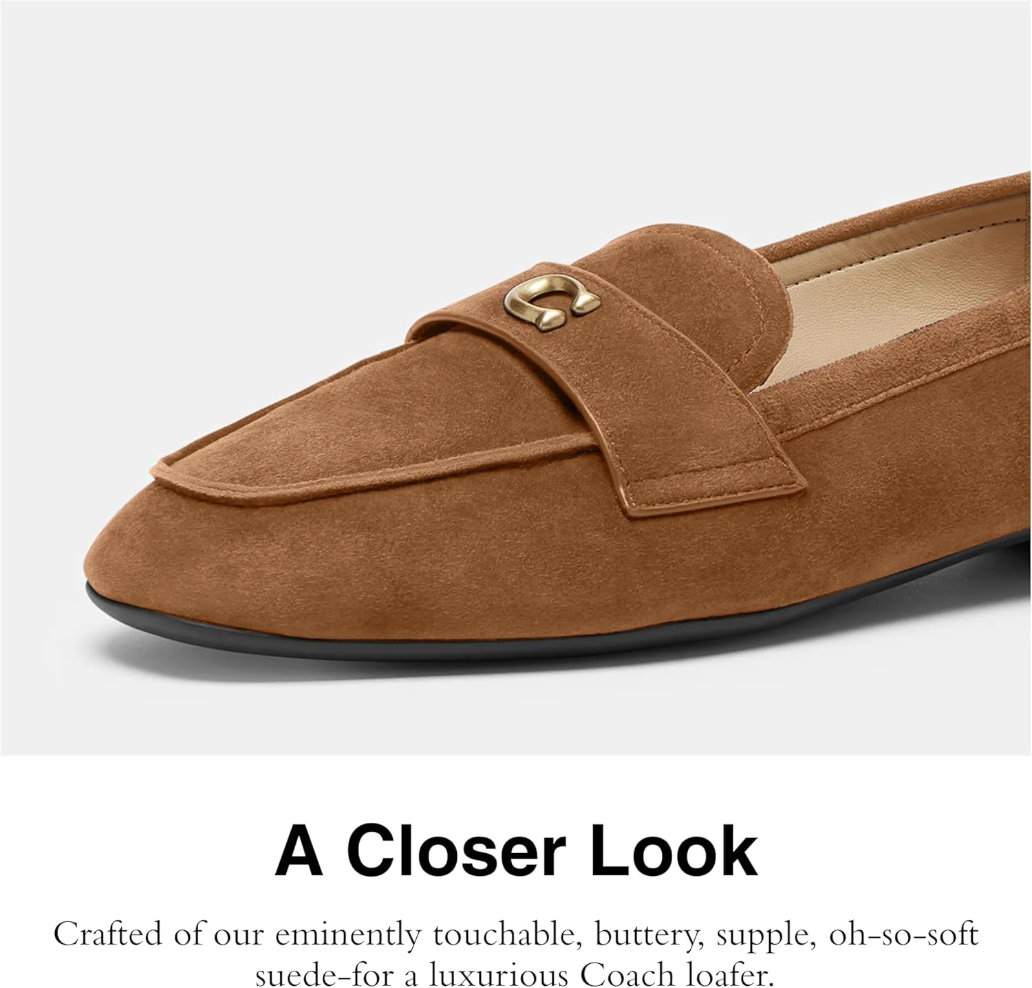 Мягкая замша: Сделаны из потрясающе приятной на ощупь, мягкой, эластичной и такой нежной замши - для роскошных лоферов от Coach.