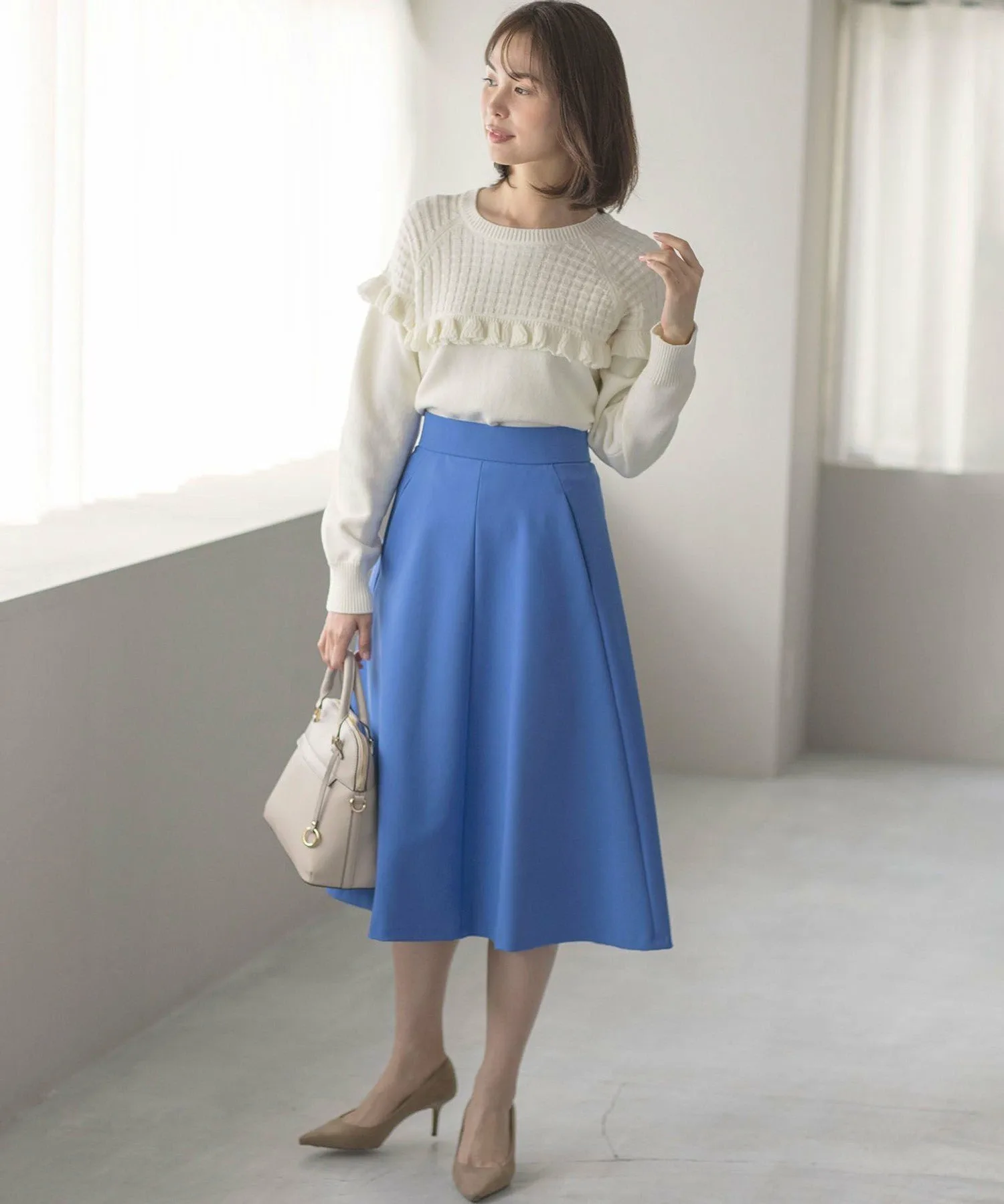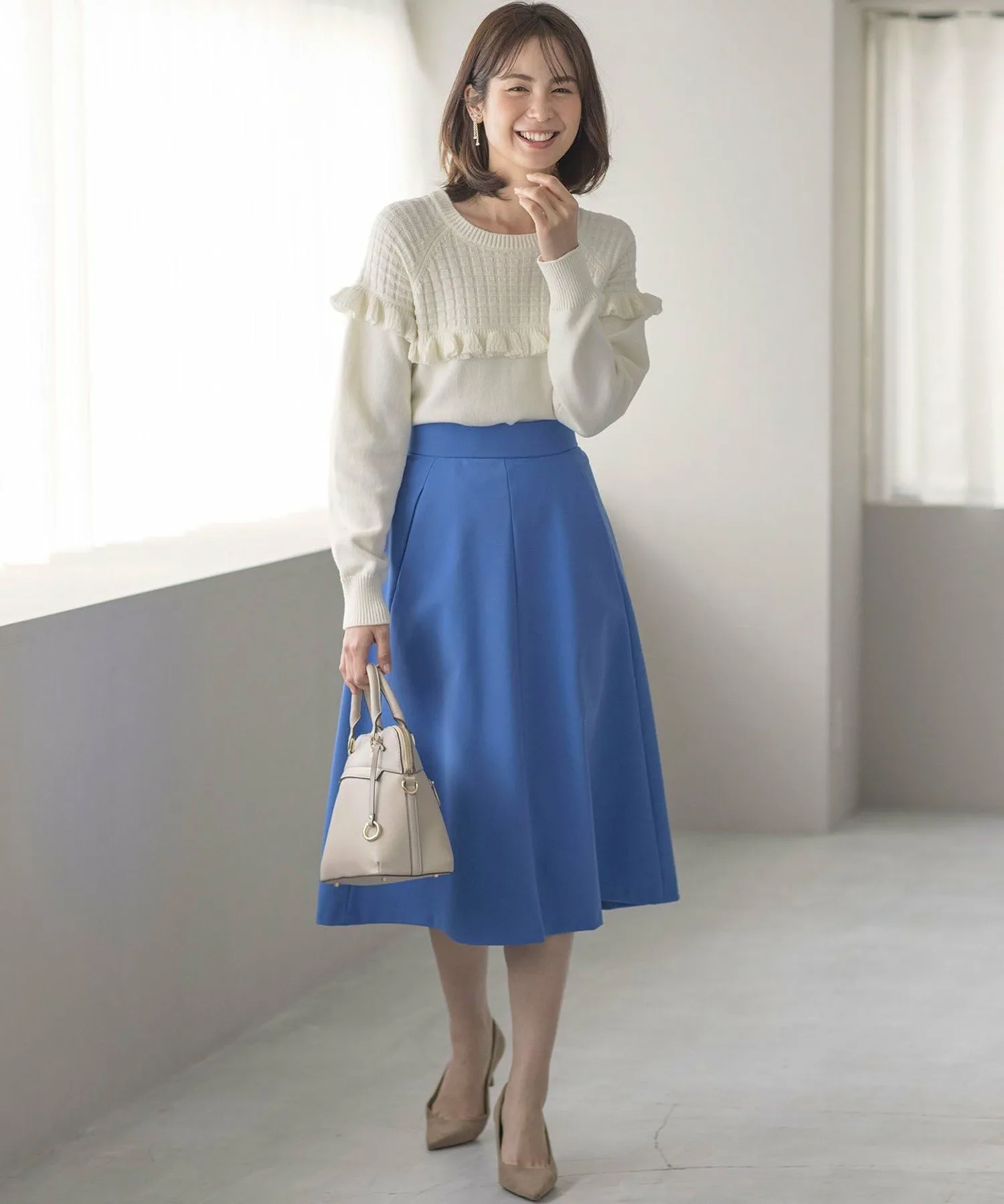 Достаточно элегантный сам по себе, аксессуары не нужны! Трикотаж с оборками добавляет нужное количество очарования.