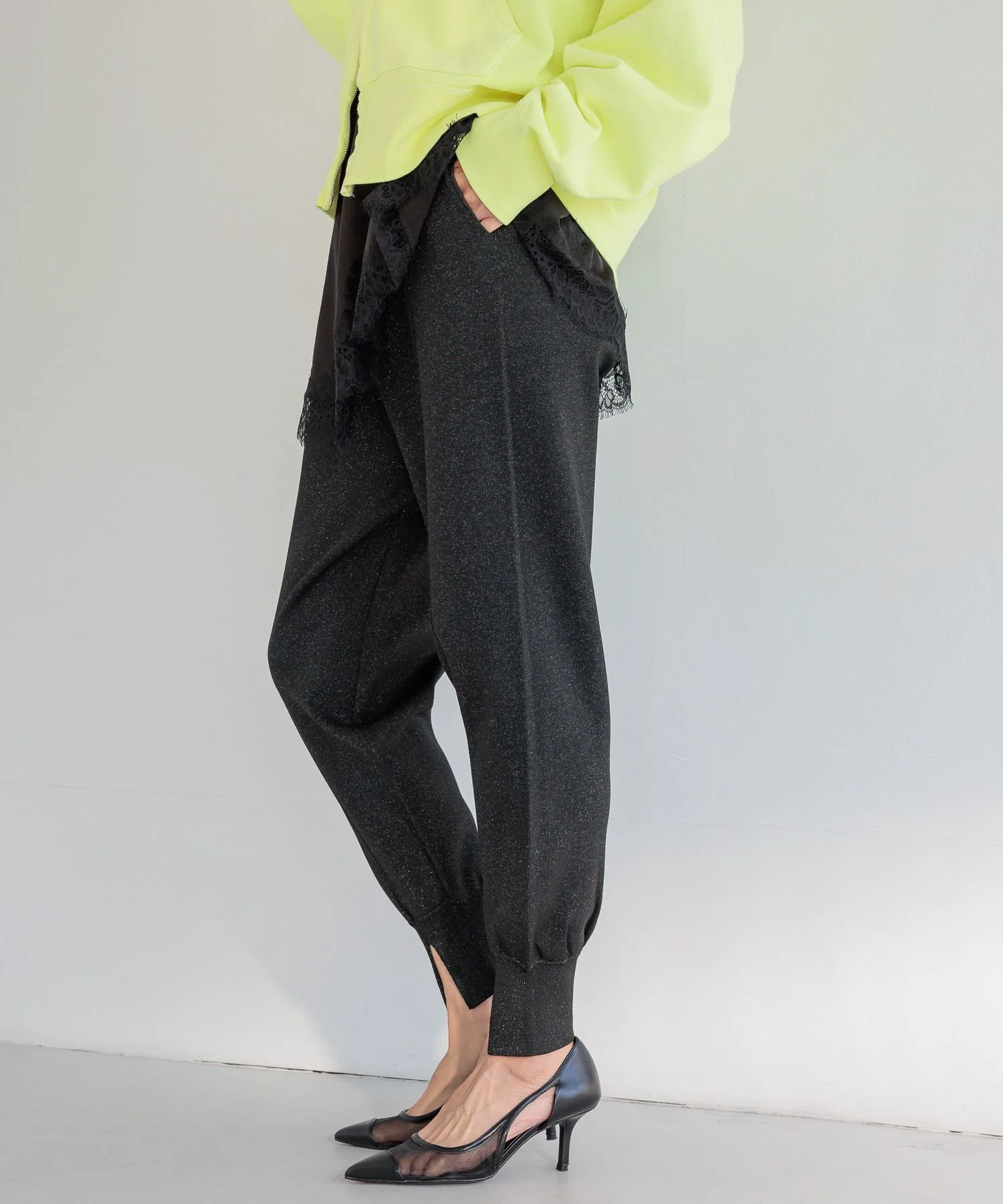 [1] Вязаные спортивные брюки средней плотности, которые не подчеркивают линии тела.