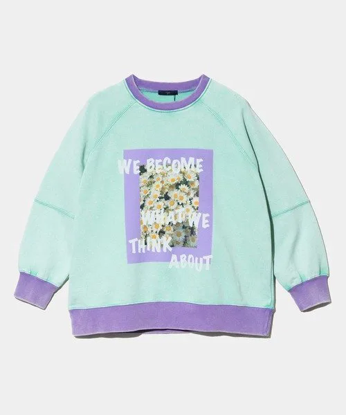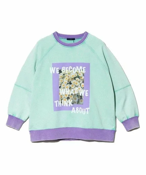Привлекательный цветочный принт и типографический дизайн. Двухцветная ребристая отделка и рукава реглан добавляют ярких красок и создают непринужденный образ.