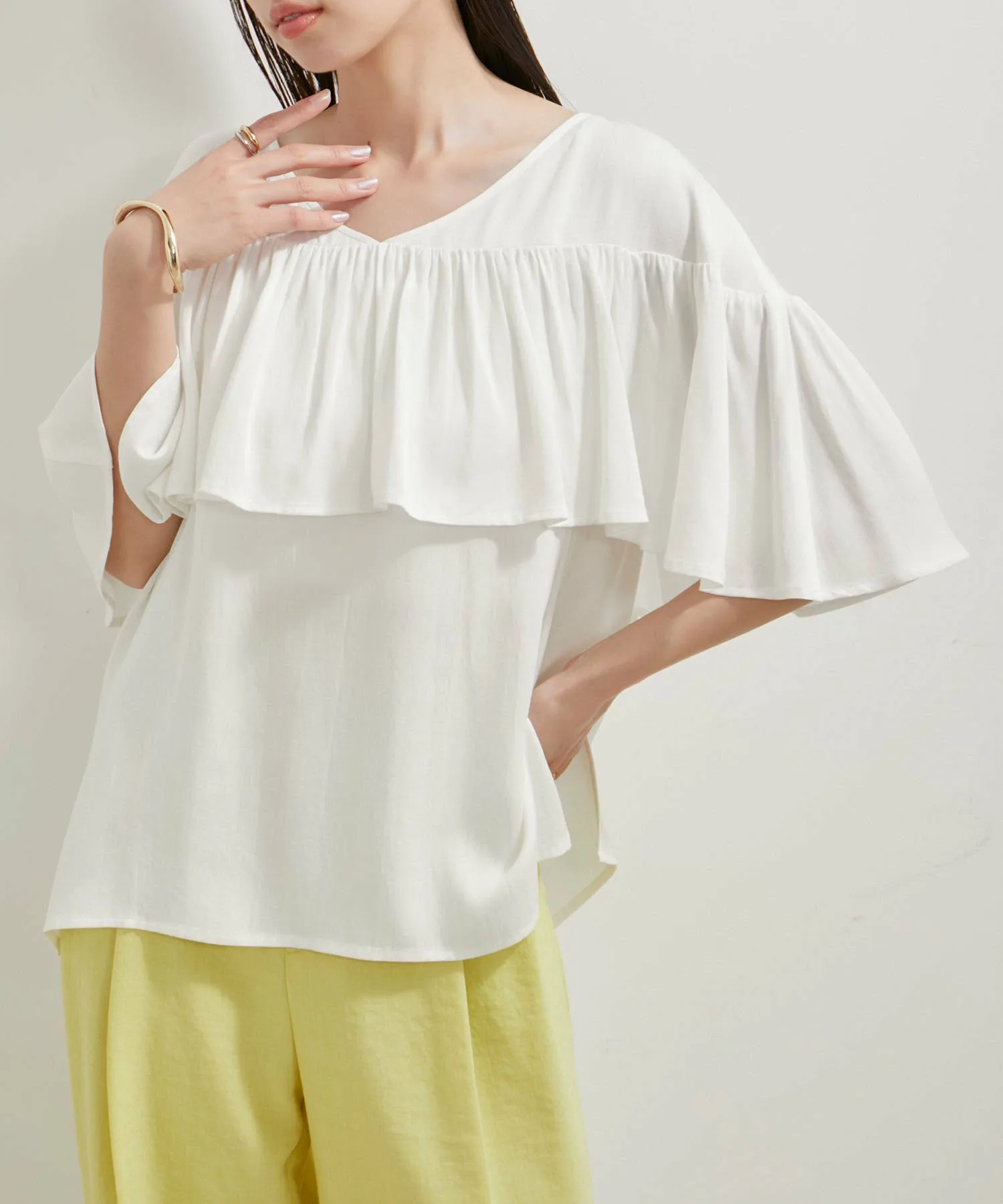 Изменяет свой внешний вид двумя способами: спереди и сзади! Мягкая блузка с оборками в качестве изюминки Весна/Лето 2024