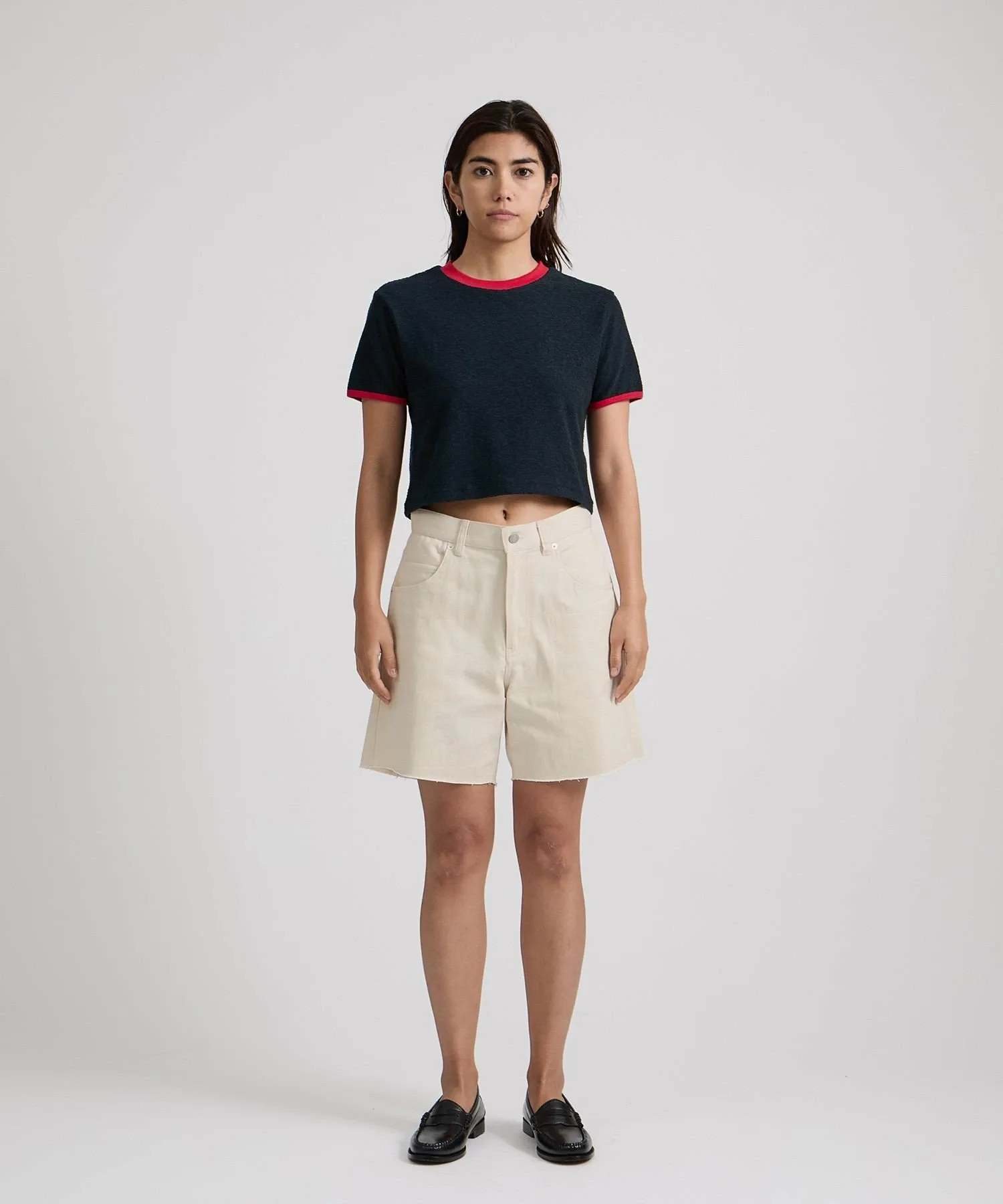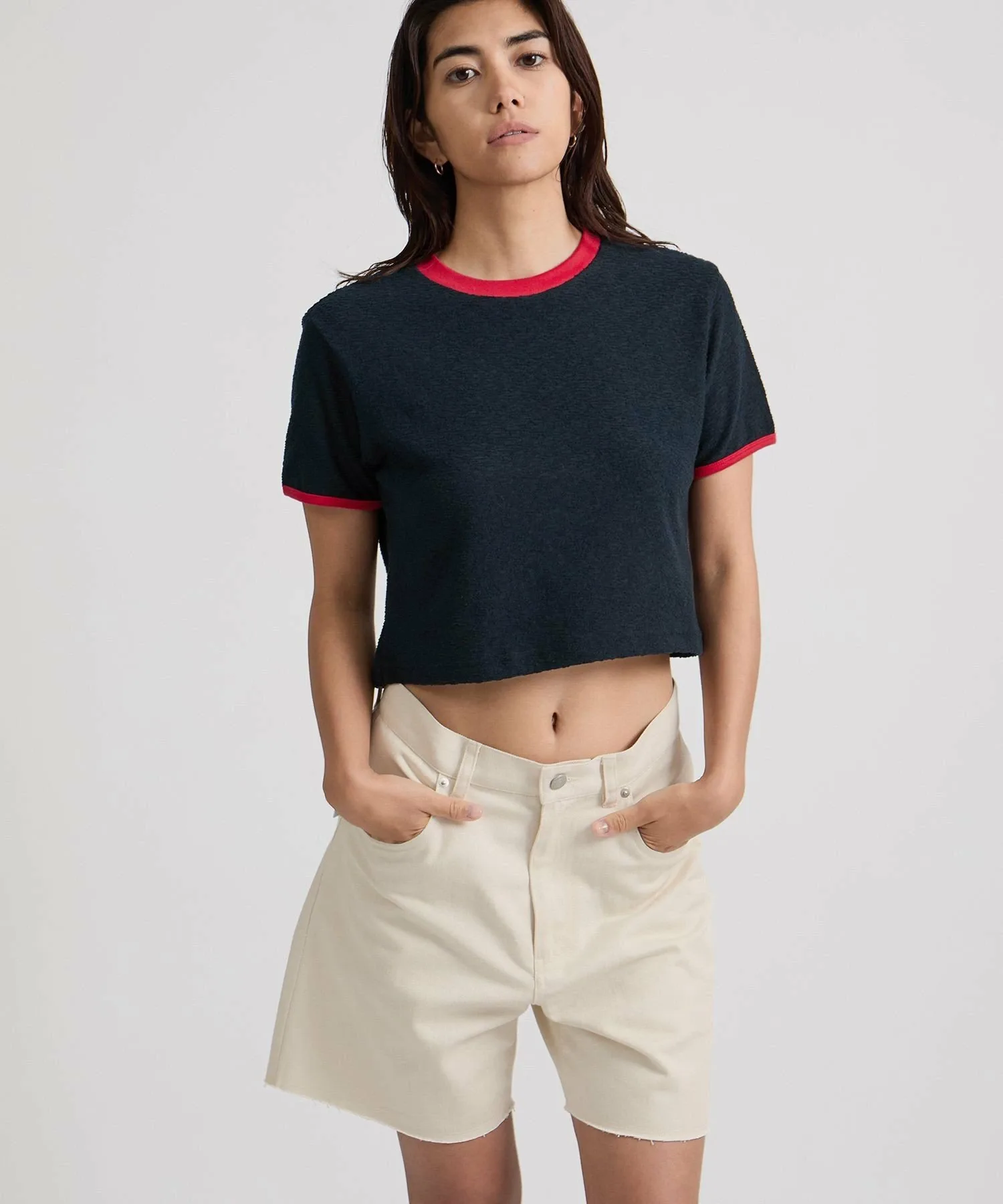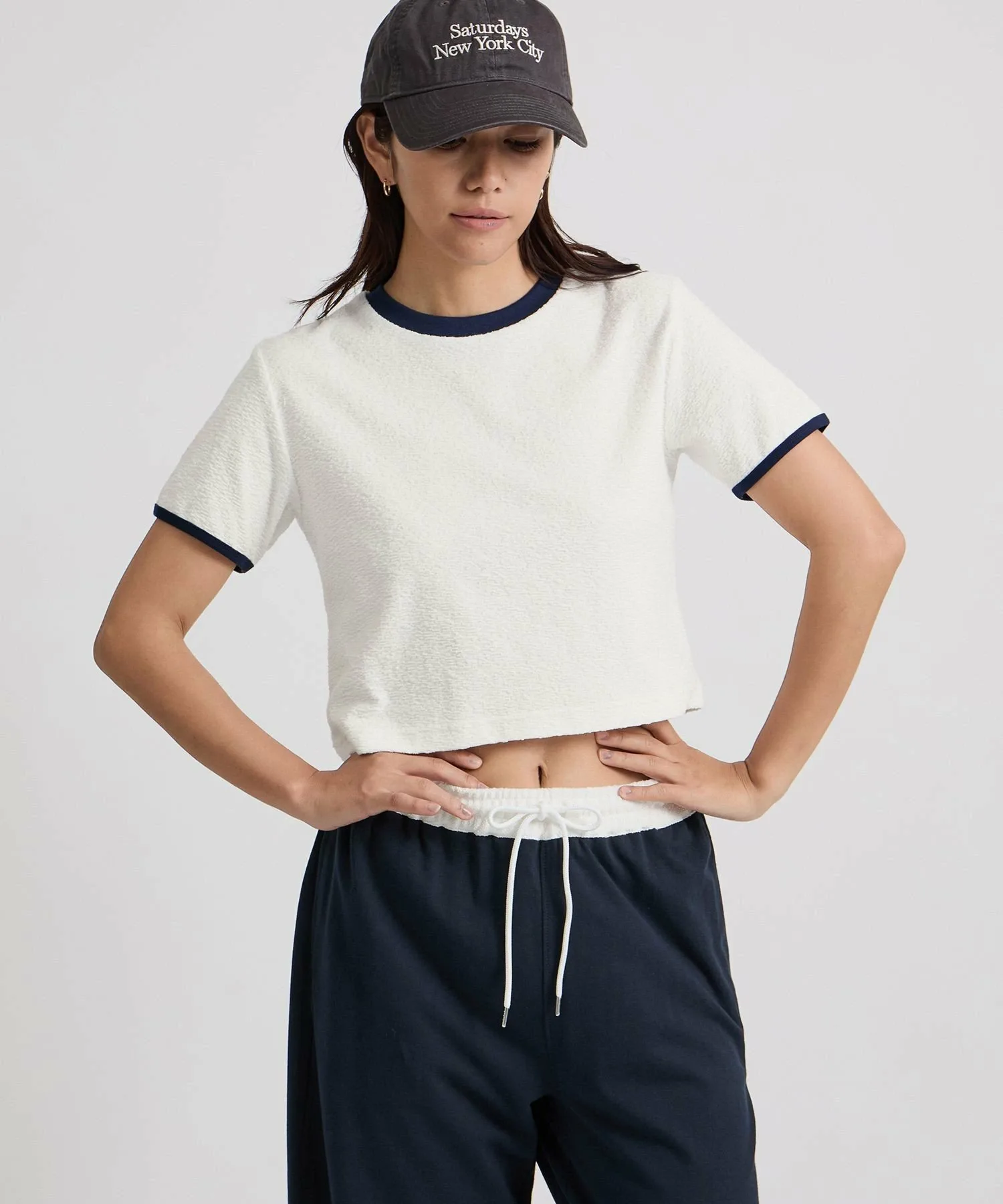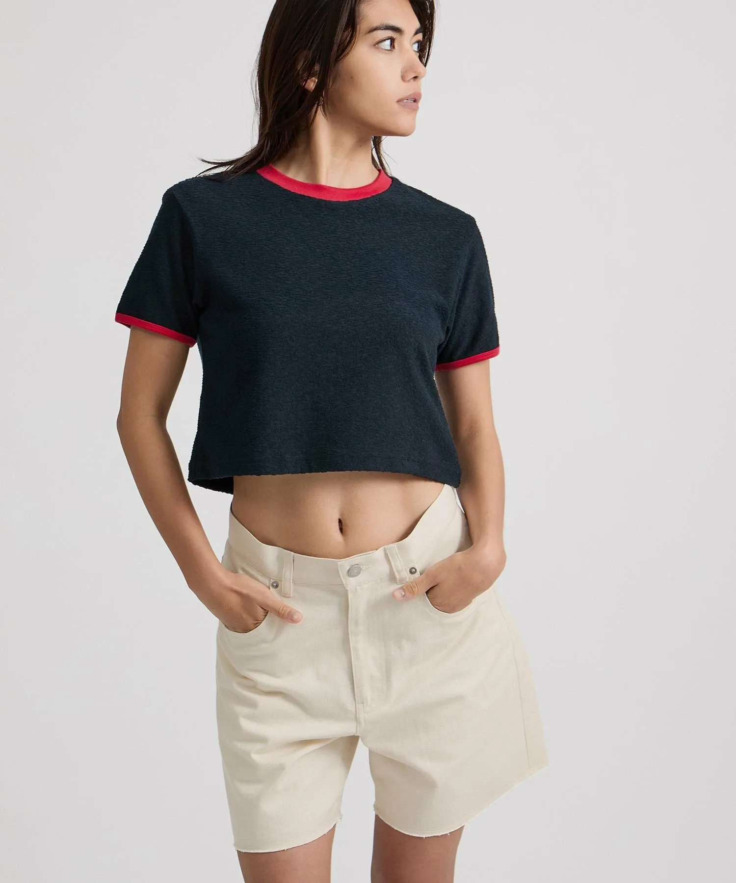 Футболка небольшого размера с контрастной отделкой, ребристым рисунком и разнообразной цветовой гаммой.