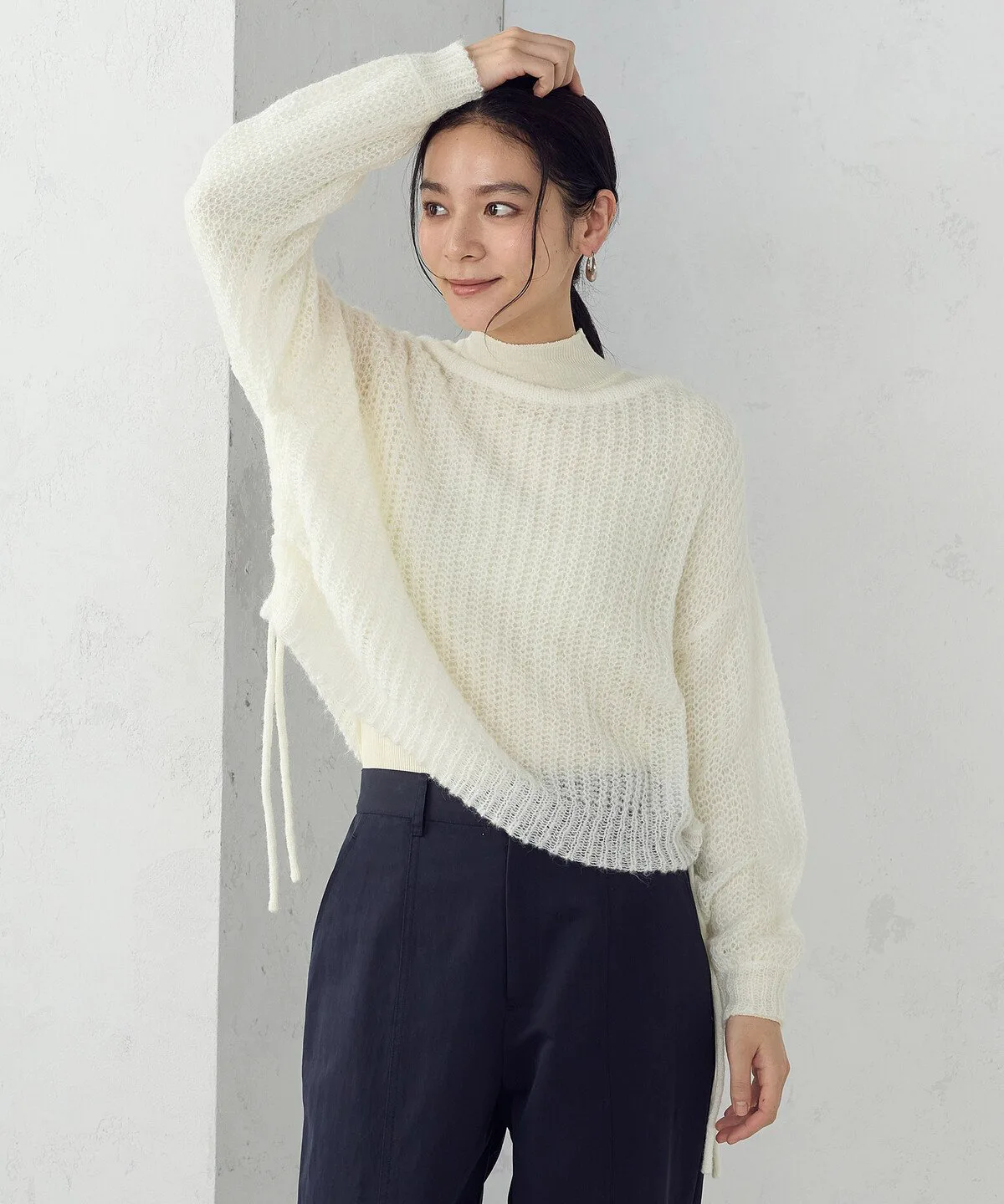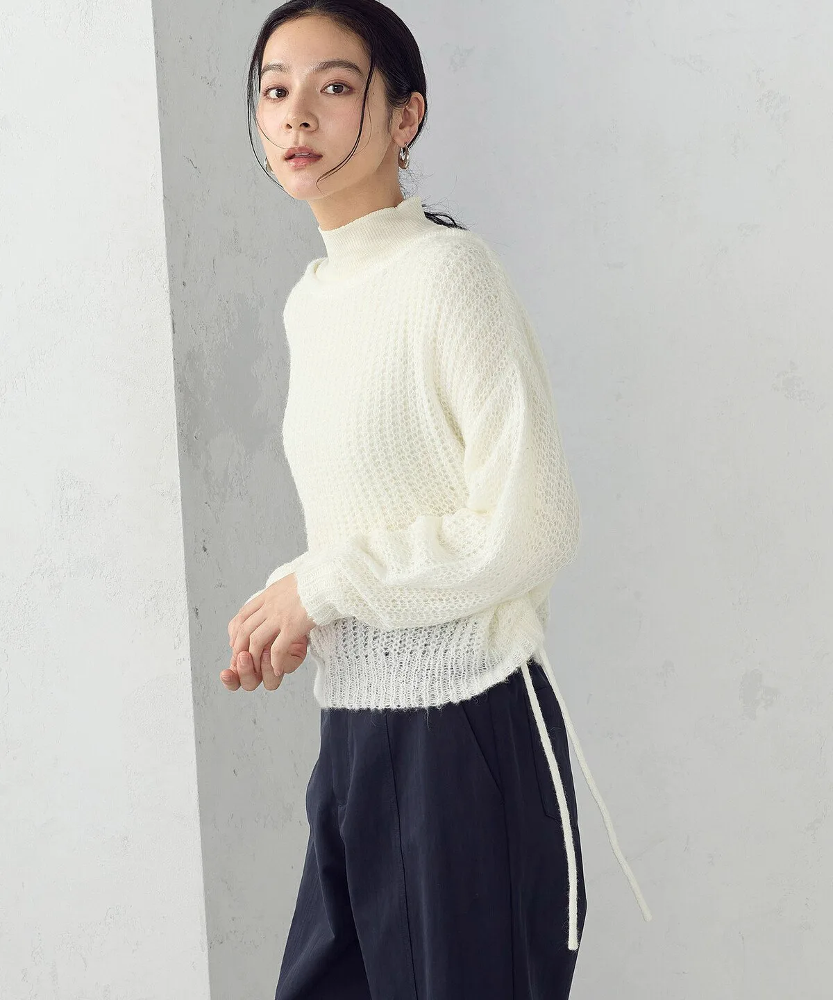 Теплый, пушистый материал отделан легкой сетчатой вязкой.