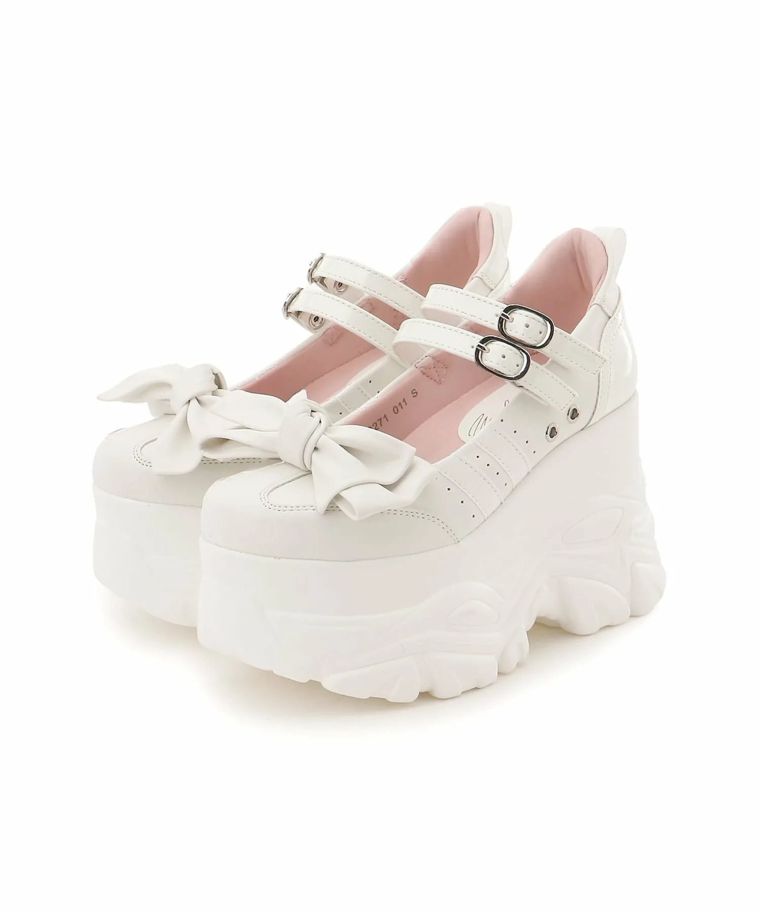 Классический дизайн кроссовок воплощен в этих туфлях на платформе с ремешками, украшенных лентами.