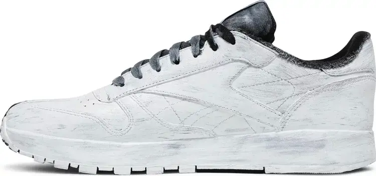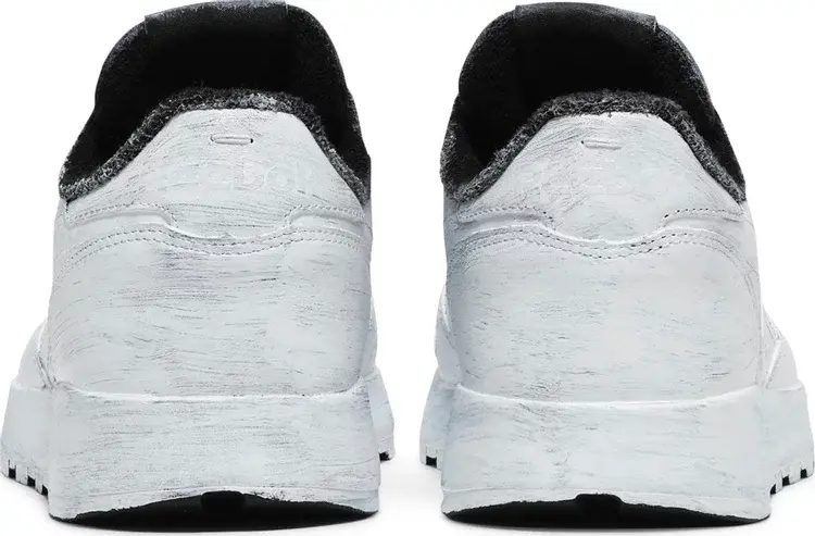 Maison Margiela x Reebok Classic Leather Tabi ‘Whiteout’ представляет собой радикально переработанный взгляд на ретро-силуэт, задуманный французским роскошным модным домом. В верхней части используется кожа наппа премиум-класса, конструкция Maison с разделенным мыском и двойной брендинг Reebok и Margiela на тканой бирке на язычке. Фирменная техника ручной росписи Margiela «Bianchetto» выполнена по всей поверхности кроссовок, неравномерно нанесенная краска предназначена для постепенного стирания со временем и износом.