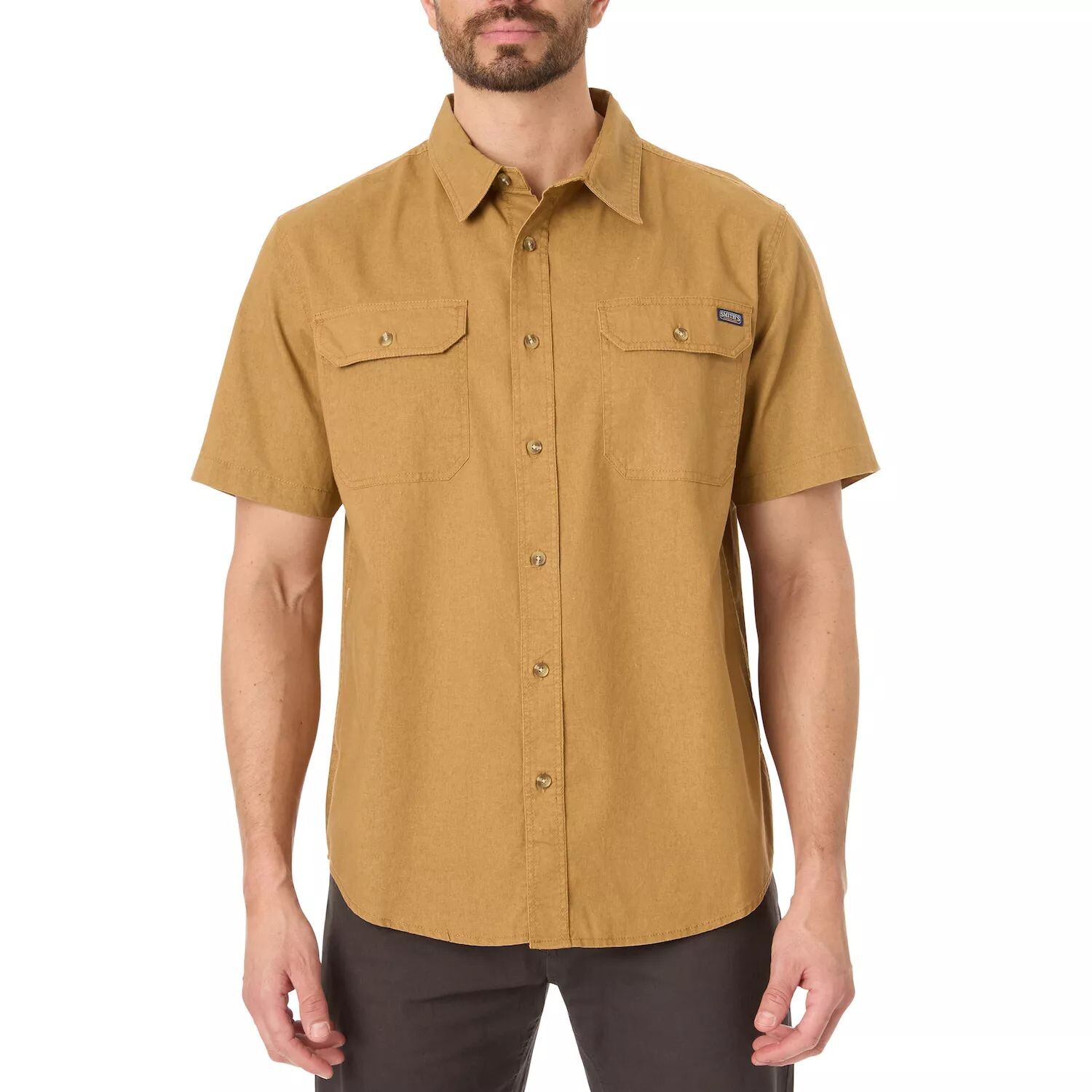 Выполняйте работу с полным комфортом в этой мужской рабочей рубашке Smith's Workwear, выстиранной песком.