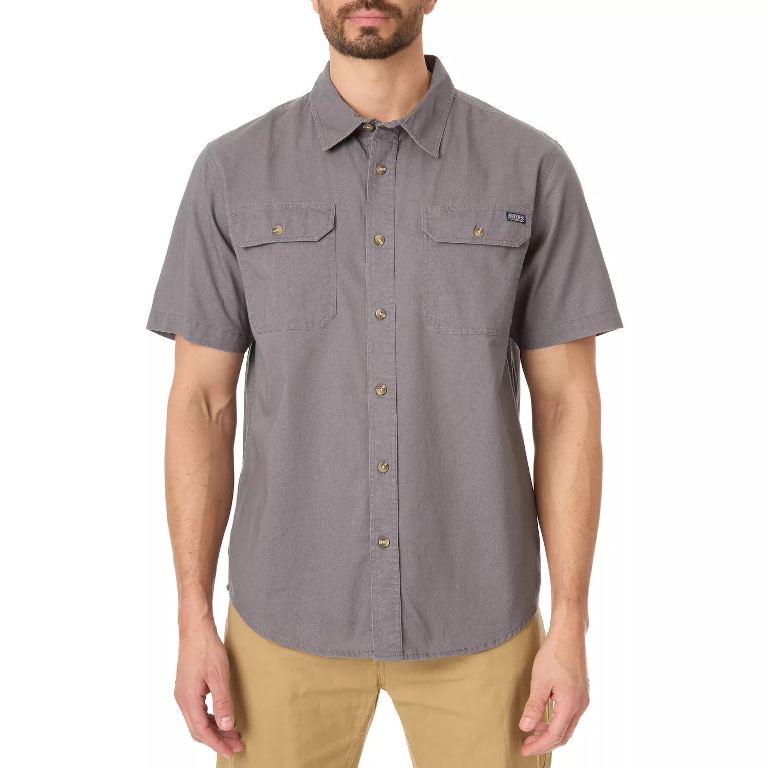 Выполняйте работу с полным комфортом в этой мужской рабочей рубашке Smith's Workwear, выстиранной песком.