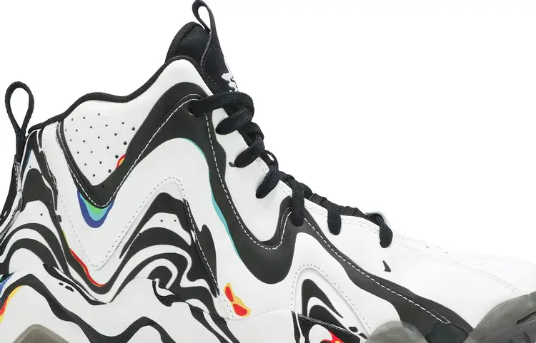 Reebok Kamikaze 2 Mid «Международный день мира» отмечает праздник, санкционированный Организацией Объединенных Наций, темой дизайна в стиле Дали. Обувь с обручами, ставшая известной благодаря Шону Кемпу, имеет верх из белой кожи, покрытый искаженными зигзагообразными линиями, пронизанными яркими всплесками цвета для создания уникального психоделического эффекта. Легкая амортизация обеспечивается полноразмерной промежуточной подошвой из ЭВА, поддерживаемой дымчатой полупрозрачной резиновой подошвой с видимой технологией Hexalite.