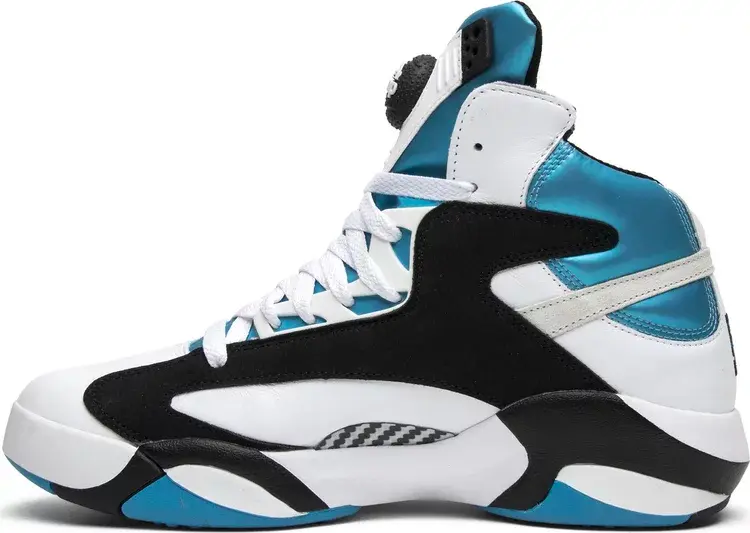 Reebok Shaq Attaq служит данью уважения фирменному дизайну кроссовок, который Шакил О'Нил носил в начале своей карьеры, и появился в цветовой гамме OG Orlando Magic. Обувь изготовлена ​​из сочетания кожи и нубука на верхней части, включая функциональную систему Pump, которая позволяет владельцу регулировать посадку.