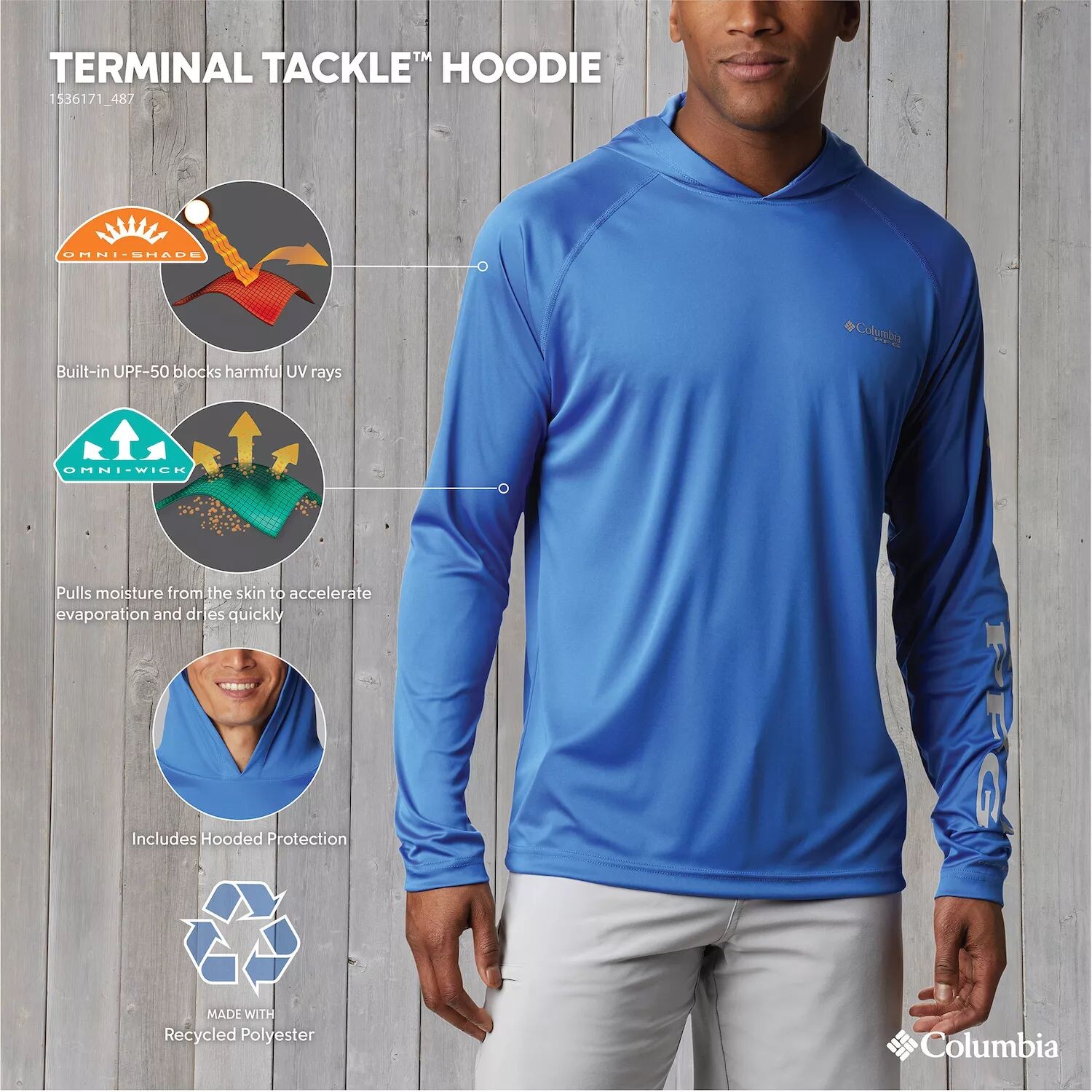 Технология впитывания влаги и защиты от солнца делает эту толстовку Columbia Terminal Tackle Hoodie отличным выбором для спортсменов, занимающихся активным отдыхом.