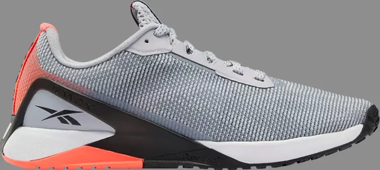 Reebok Nano X1 Grit Grey Orange Flare подчеркивает яркие акценты на универсальных кроссовках, которые бренд называет «официальной обувью для фитнеса». с брендом Nano X1. Счетчик пятки Reebok Speed Chassis обеспечивает дополнительную устойчивость во время приседаний и спринтов. Формованная поддержка распространяется на промежуточную подошву из ЭВА с пеноматериалом Floatride Energy Foam в передней части стопы.