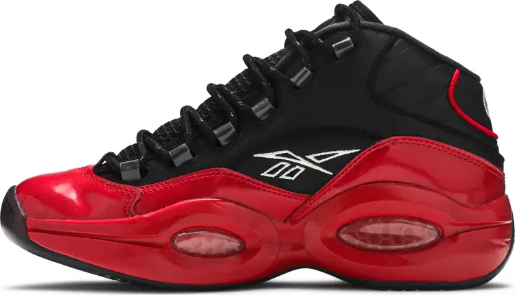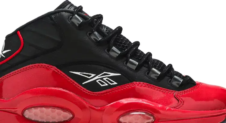 Модель Reebok Question Mid «Street Sleigh» украшает дебютную именную обувь Аллена Айверсона в простой двухцветной цветовой гамме с черным кожаным верхом и контрастной красной лакированной кожей на крыле и подноске. Тот же малиновый оттенок нанесен на промежуточную подошву из EVA, усиленную видимой амортизацией Hexalite в передней части стопы и пятке. Дымчатая резиновая подошва под ногами обеспечивает надежное сцепление с поверхностью, украшенная цифрой AI на футболке «3» на той части, которая охватывает заднюю пятку.