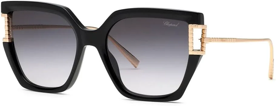 Солнцезащитные очки CHOPARD, SCH378M, черный суперчерный, размер 55/19/135, женские. Полная оправа: черный суперчерный, целлюлозный ацетат. Геометрическая форма; антибликовое покрытие линз: нейлон на биологической основе; титан.