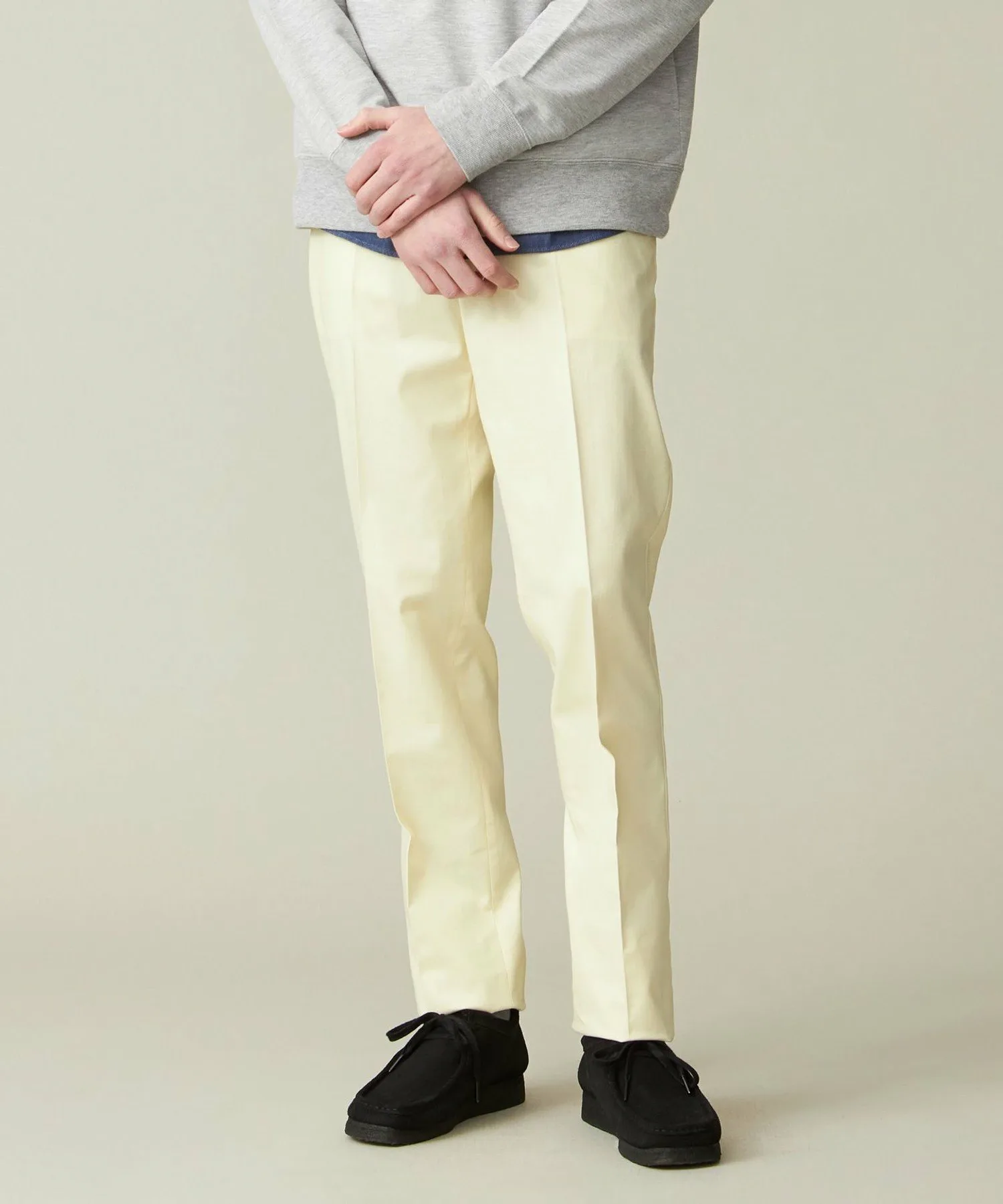 Можно стирать в машинке! Универсальные брюки, которые подойдут как к повседневному стилю, так и к пиджаку! Разнообразие цветов расширяет ваши возможности сочетания! Эти хлопковые повседневные брюки выглядят как классические брюки. Функциональная эластичность Материал: Эта весенне-летняя версия классического эластичного трикотажа J.PRESS имеет четкое саржевое переплетение и умеренную текстуру поверхности. Несмотря на свою тонкость, материал обладает плотной, упругой текстурой. Мы перешли от окрашивания готового изделия к окрашиванию поштучно, когда ткань окрашивается перед раскроем. Эта техника окрашивания поштучно придает этим брюкам более изысканный и элегантный вид. Силуэт: Приталенный крой с четкими линиями и лестным силуэтом, который подходит всем. Особенности: Изготовлены на той же фабрике, где шьются классические брюки. Сзади на талии расположен простой, легкий пояс для комфорта. Сочетание: Эти универсальные брюки хорошо сочетаются с повседневными рубашками, трикотажем и верхней одеждой, а также с классическими пиджаками. Комментарий дизайнера: Эти брюки создают лаконичный и элегантный образ.