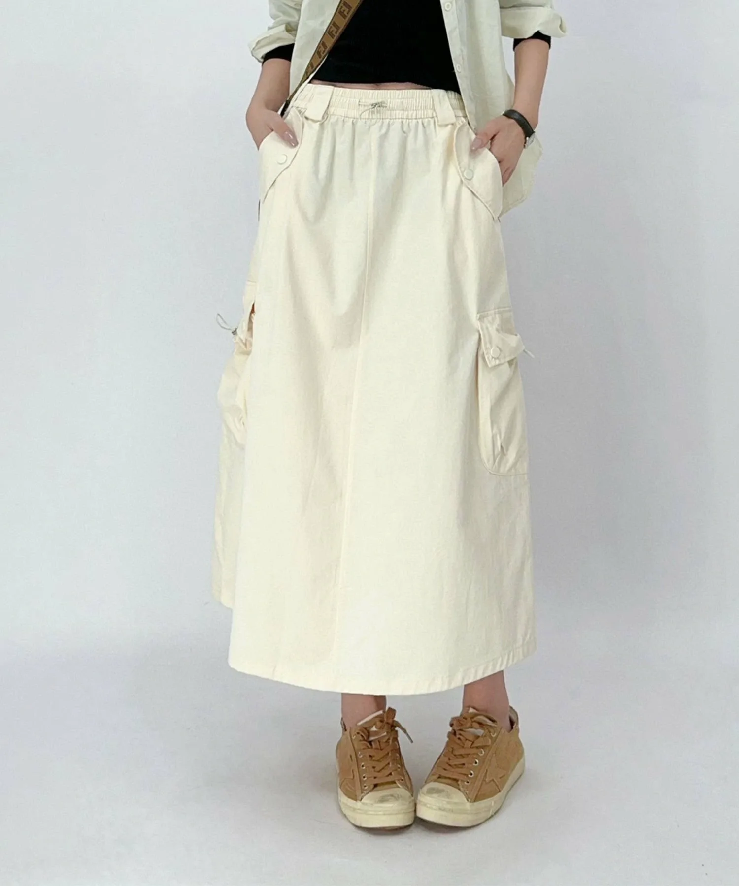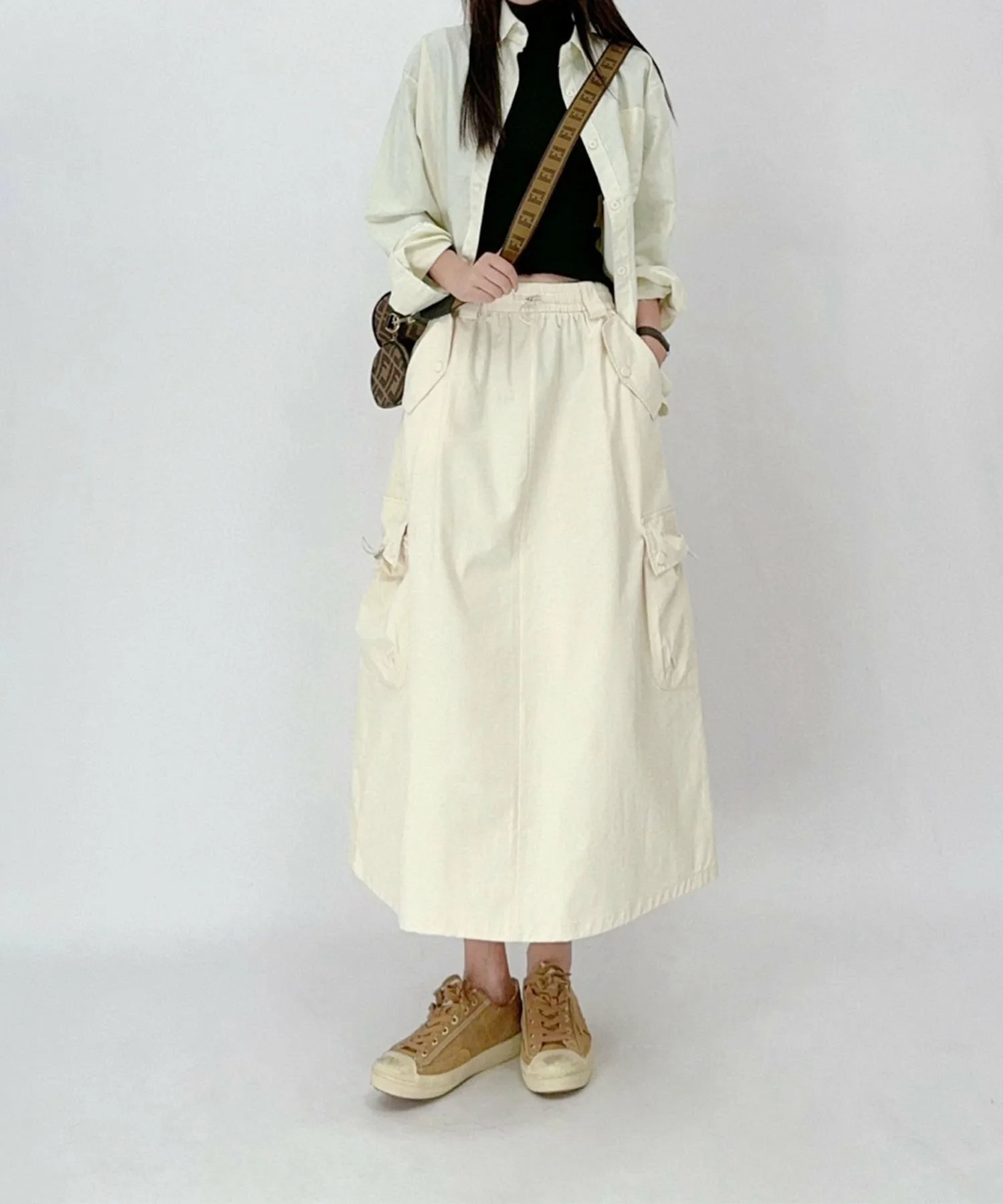 Юбка с накладными карманами, в тренде этого года. Прямой, облегающий силуэт не слишком узкий, поэтому не подчеркивает фигуру и легко сочетается с другими вещами.