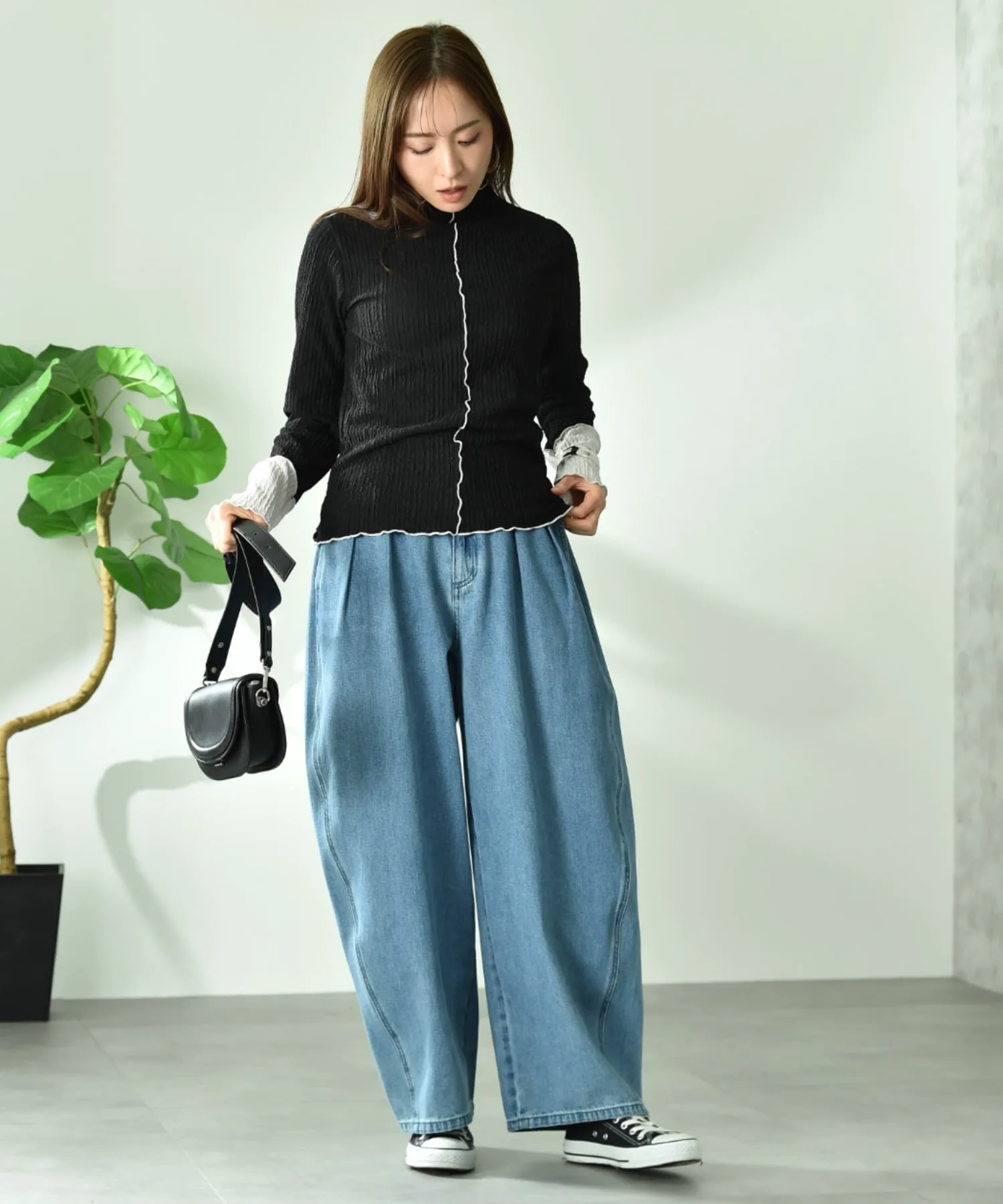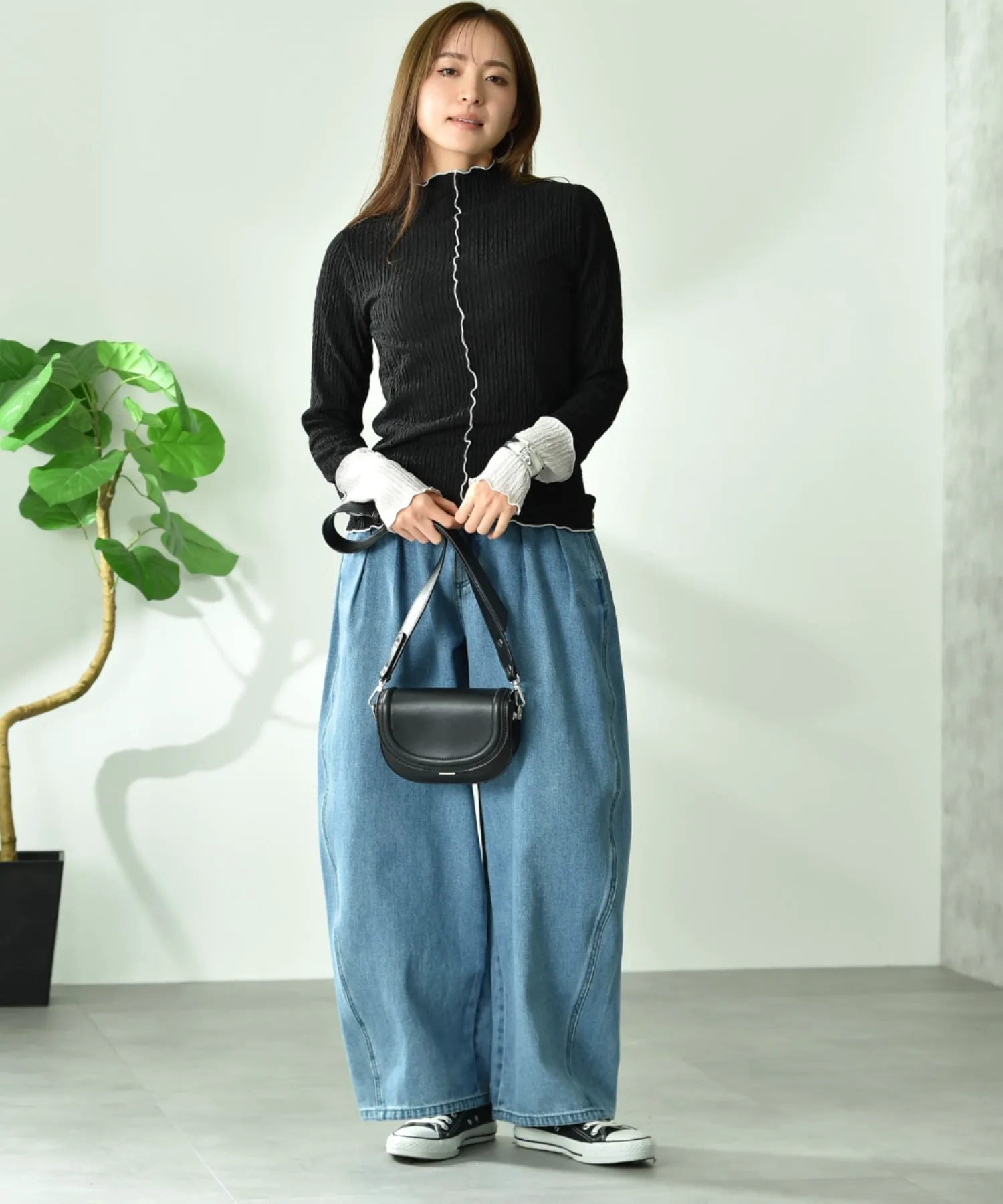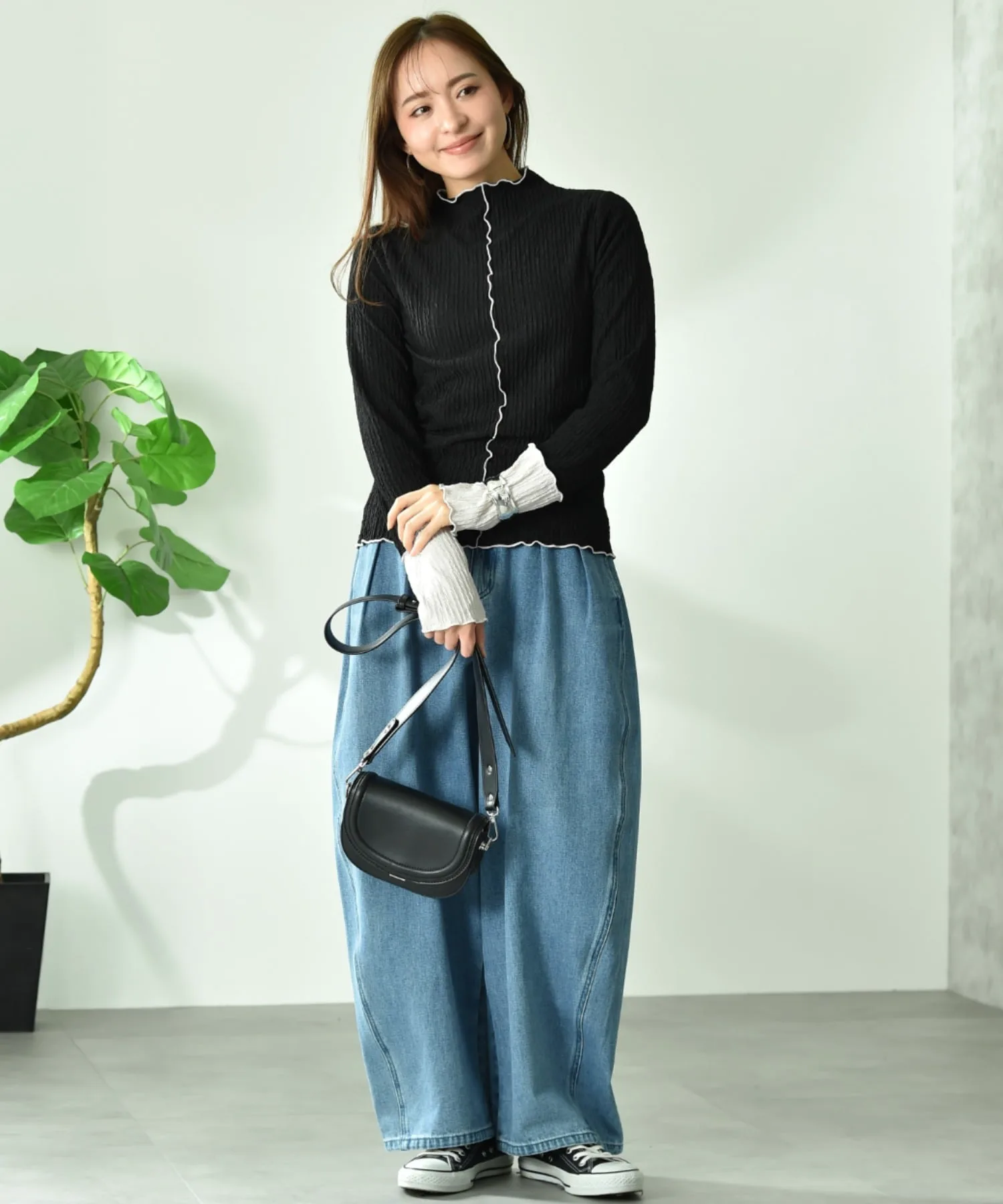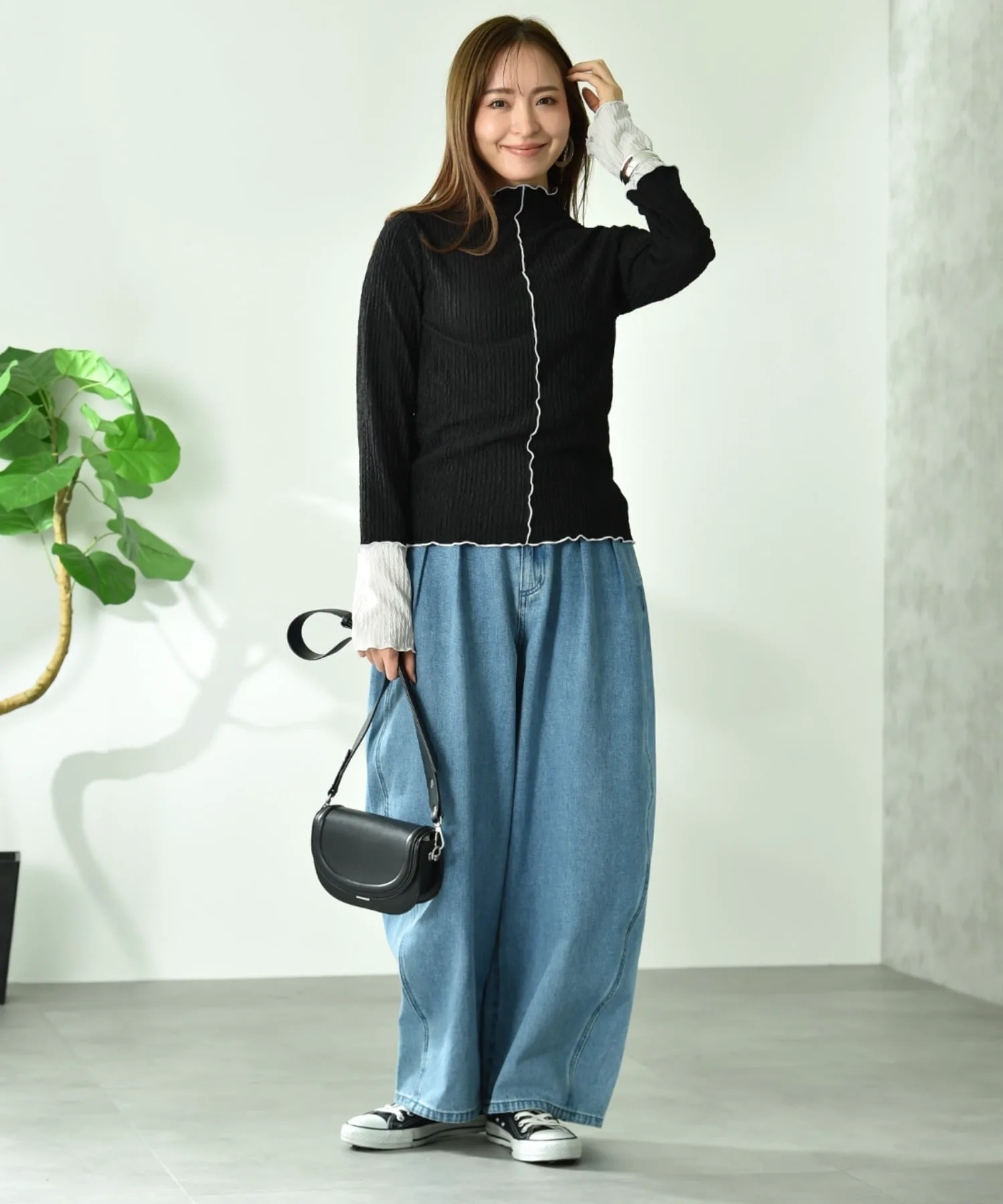 Всегда оставайтесь собой и создавайте свой собственный стиль. Для женщин, которые живут со стилем, не подстраивающимся под время или эпоху. Сочетание модных базовых вещей и непринужденного повседневного стиля. Мы предлагаем такой изысканный повседневный образ. Рост модели: 162 см, размер: слоновая кость, черный, угольно-серый/F